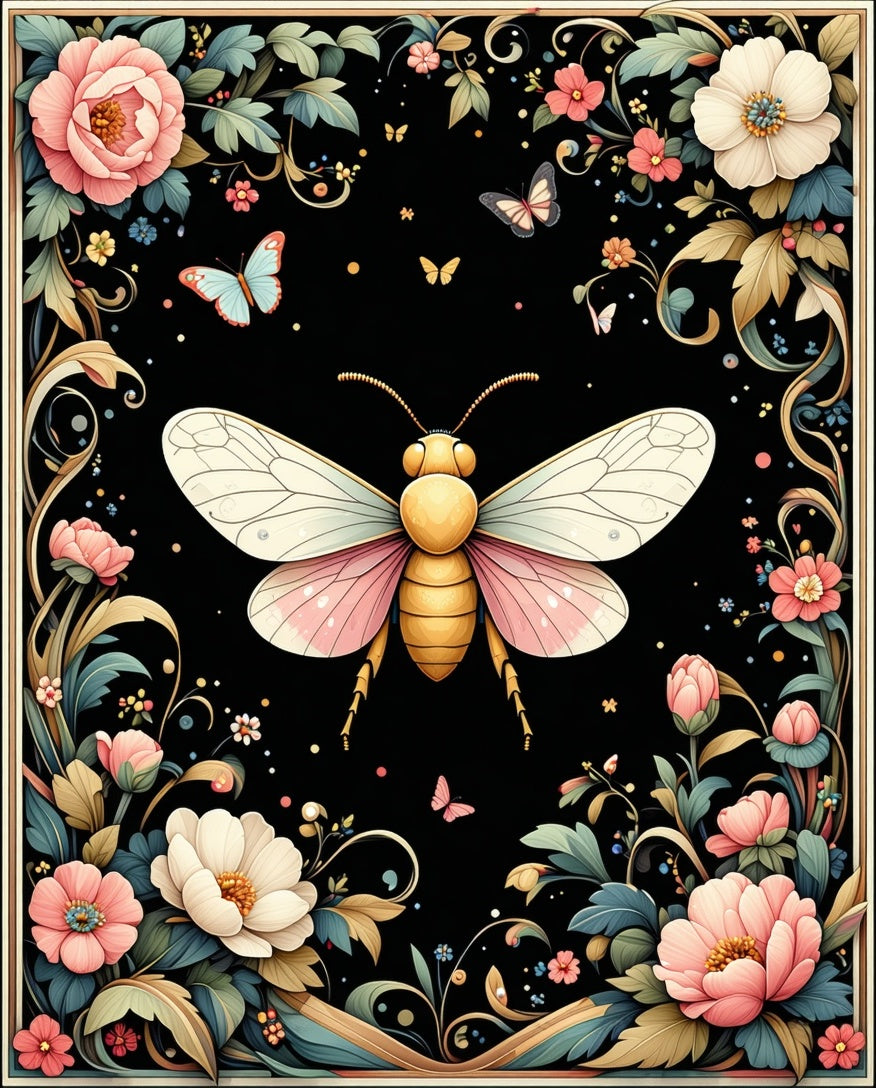 Enchanted Night Garden Featuring Whimsical Bugs and Floral(Black)
