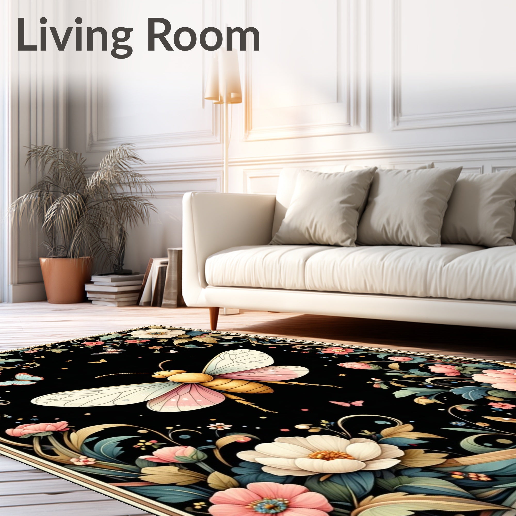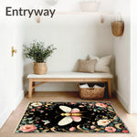 Flatwoven High Traffic Area Rug, Enchanted Night Garden Featuring Whimsical Bugs and Floral, Non Slip, Stain Resistant, Washable Area Rugs for Living Room, Bedroom (Black) Overview: