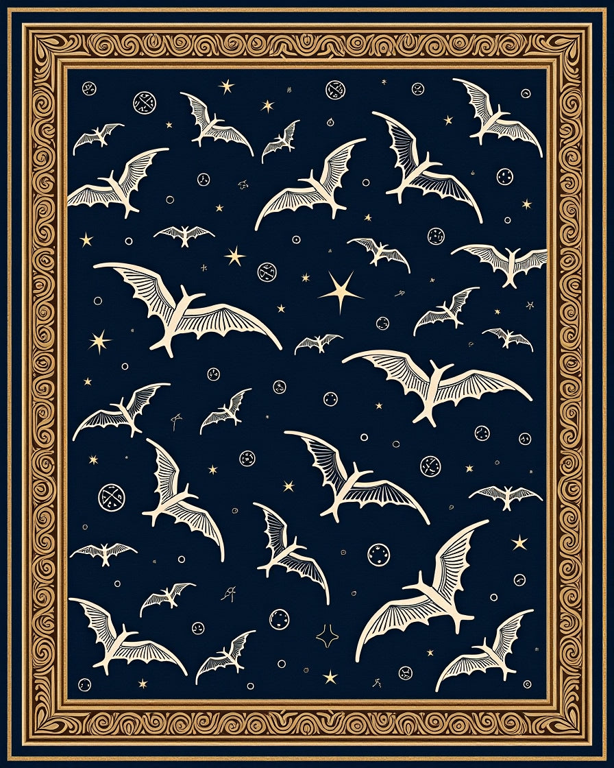 Enchanted Night Sky Astronomy with Flying Bat Silhouettes(Blue)
