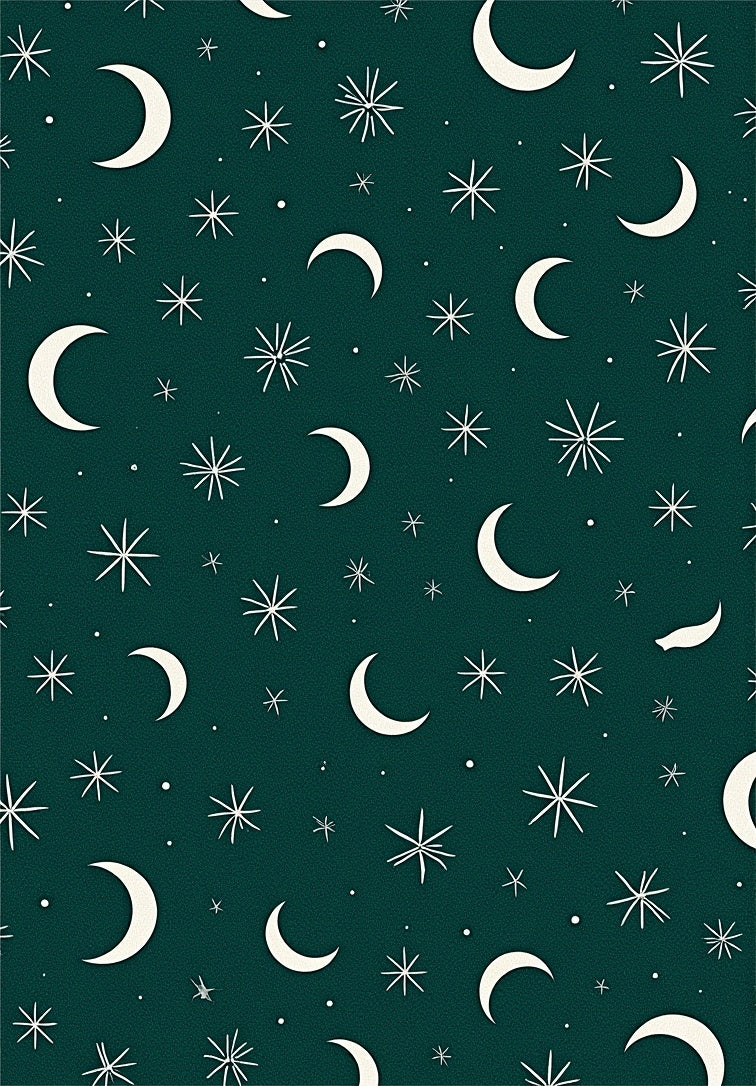 Enchanted Night Sky featuring Moons and Twinkling Stars(Green)