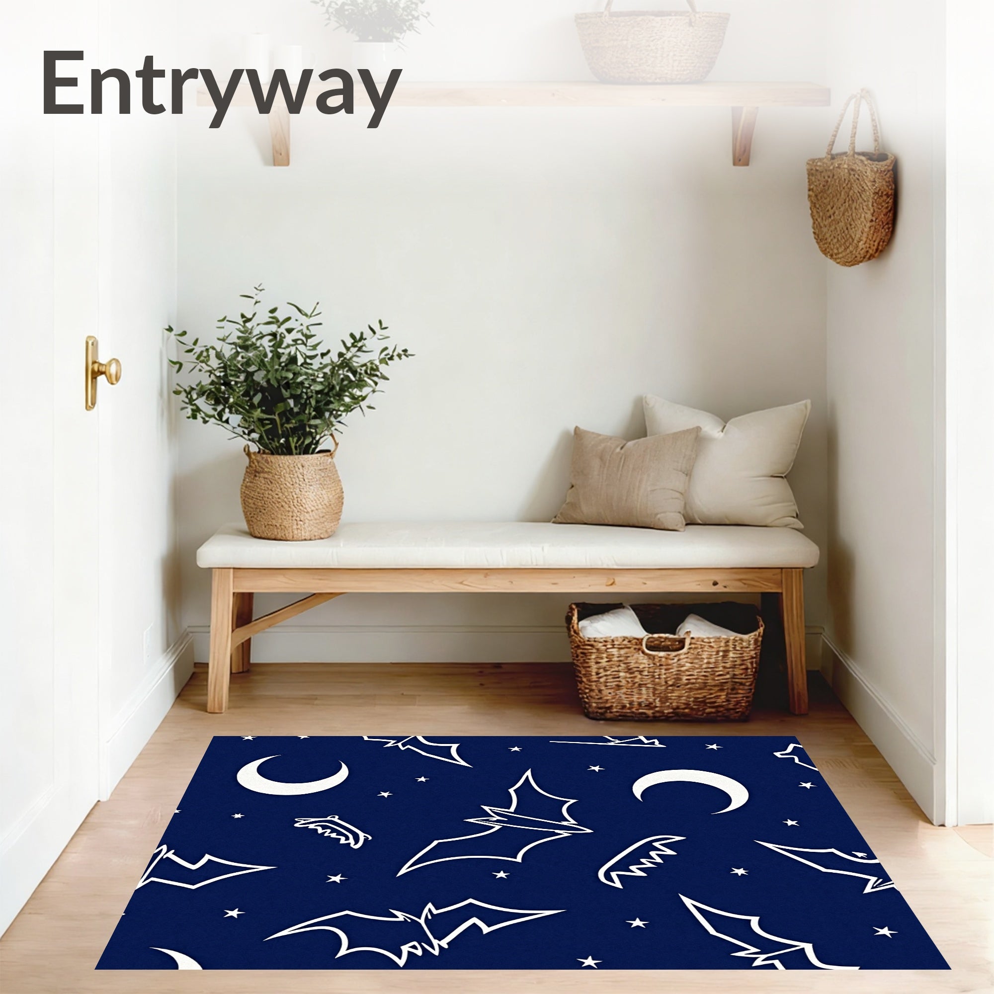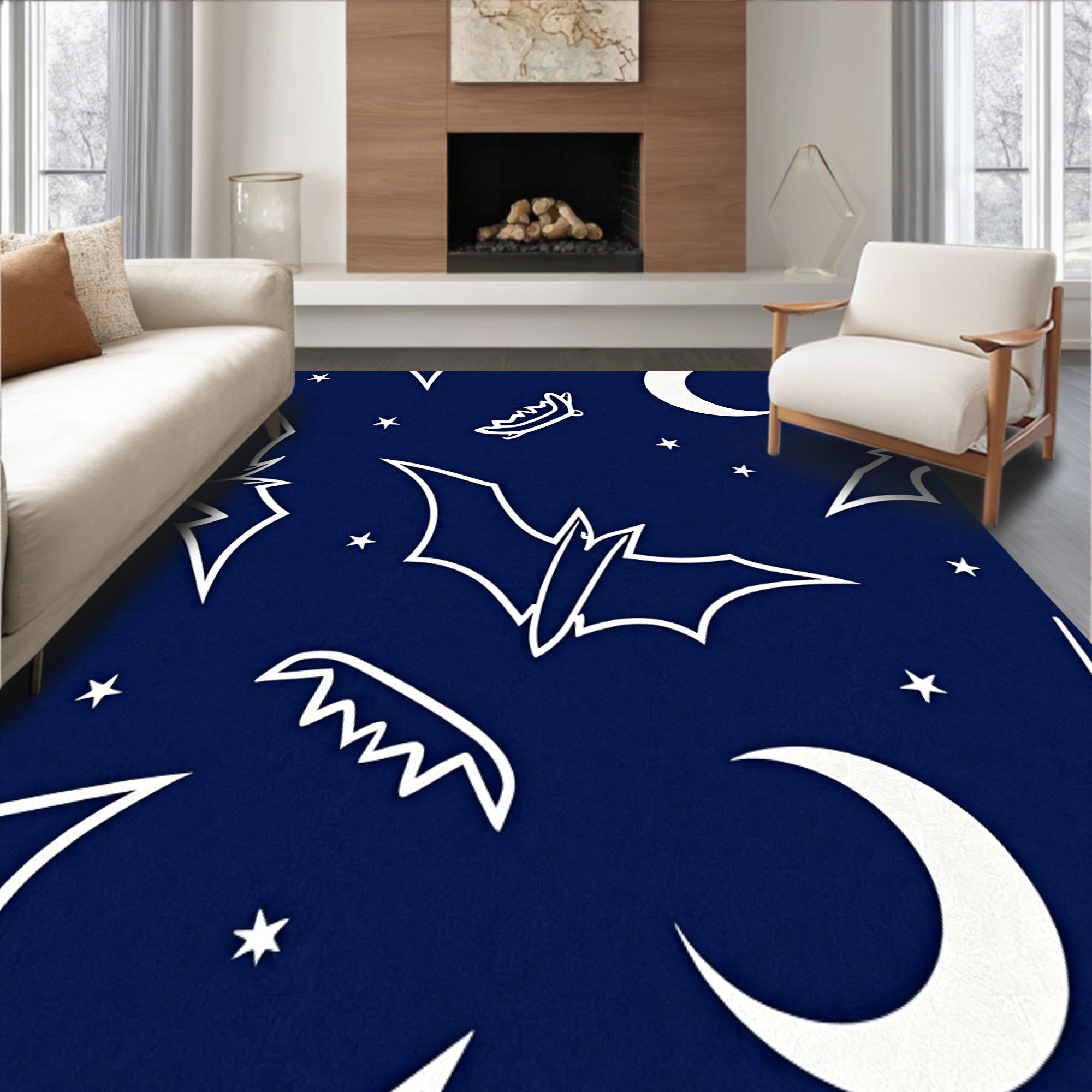 Ultra Soft Area Rug, Non Slip, Stain Resistant, Washable Area Rugs for Living Room, Bedroom, Enchanted Nightfall Bat Doorstep Greeting Entry(Blue) Overview: