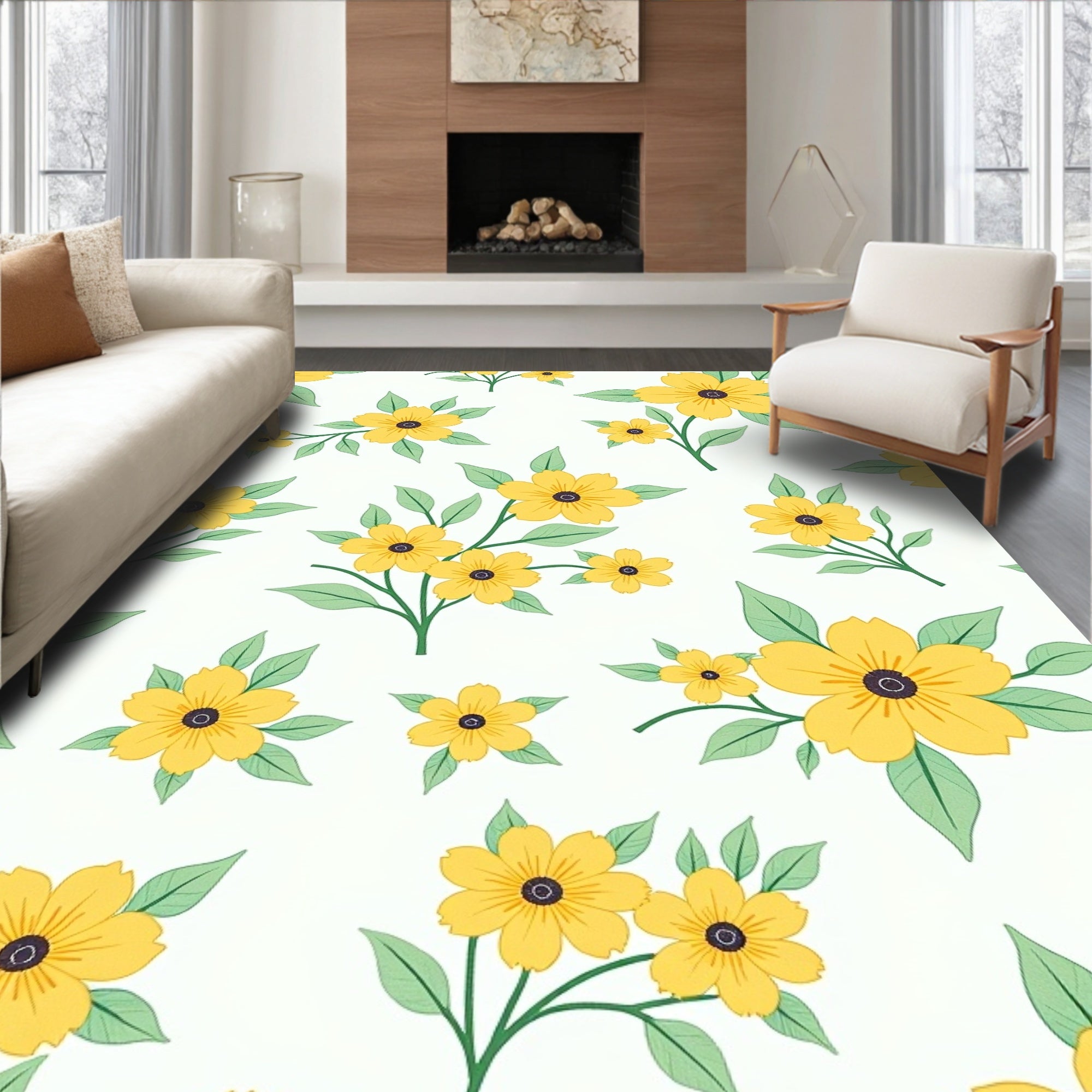 Flatwoven High Traffic Area Rug, Enchanted Pastoral Dreamscape Whimsical Bloom Collection, Non Slip, Stain Resistant, Washable Area Rugs for Living Room, Bedroom (Yellow) Overview:
