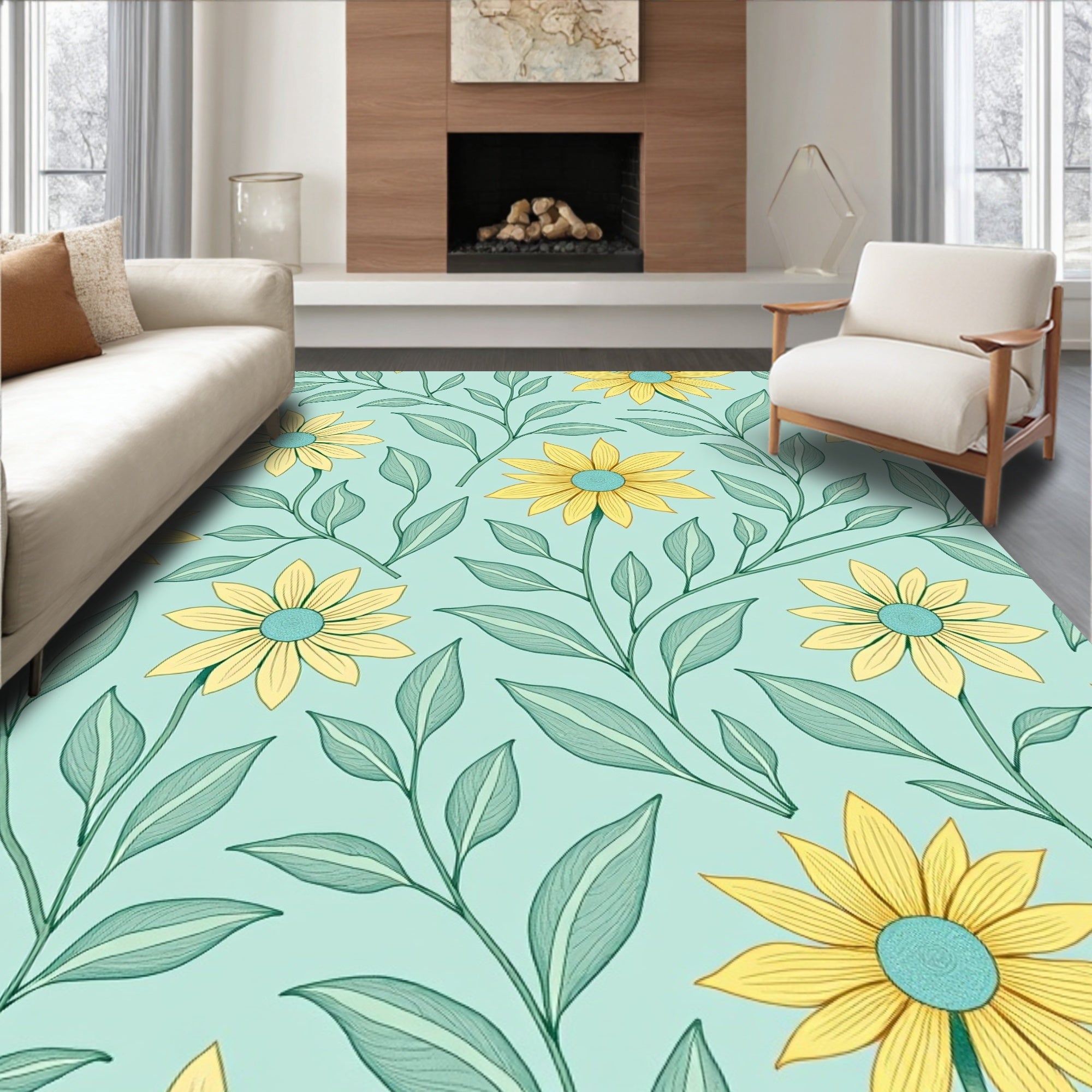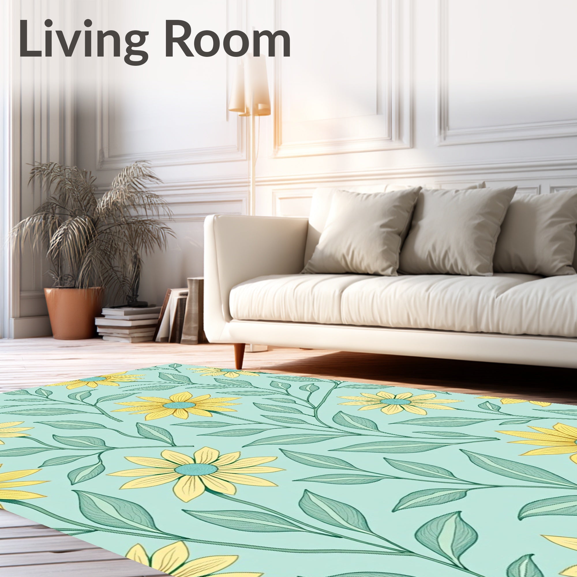 Flatwoven High Traffic Area Rug, Enchanted Petal Symphony With Timeless Natural Inspiration, Non Slip, Stain Resistant, Washable Area Rugs for Living Room, Bedroom (Blue) Overview: