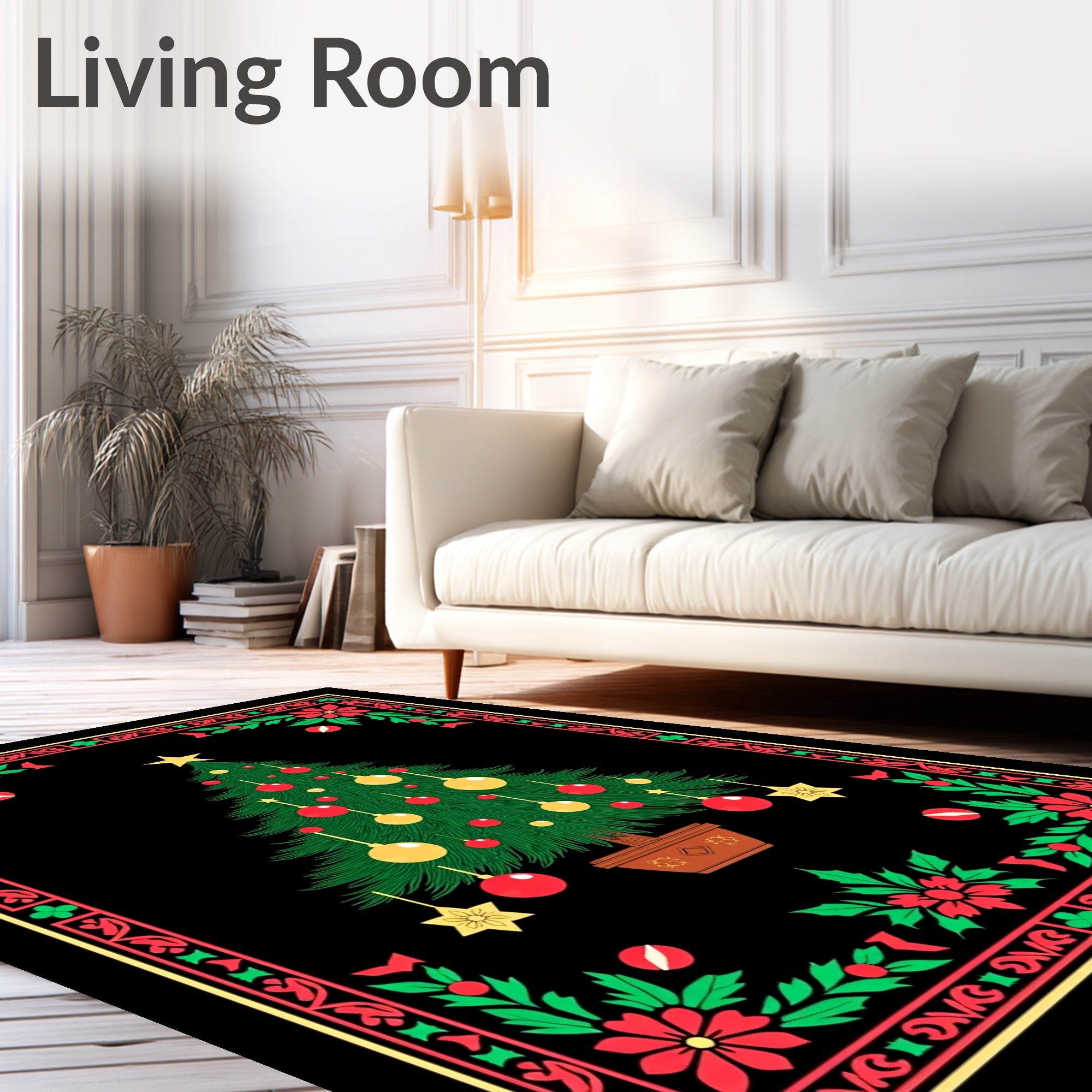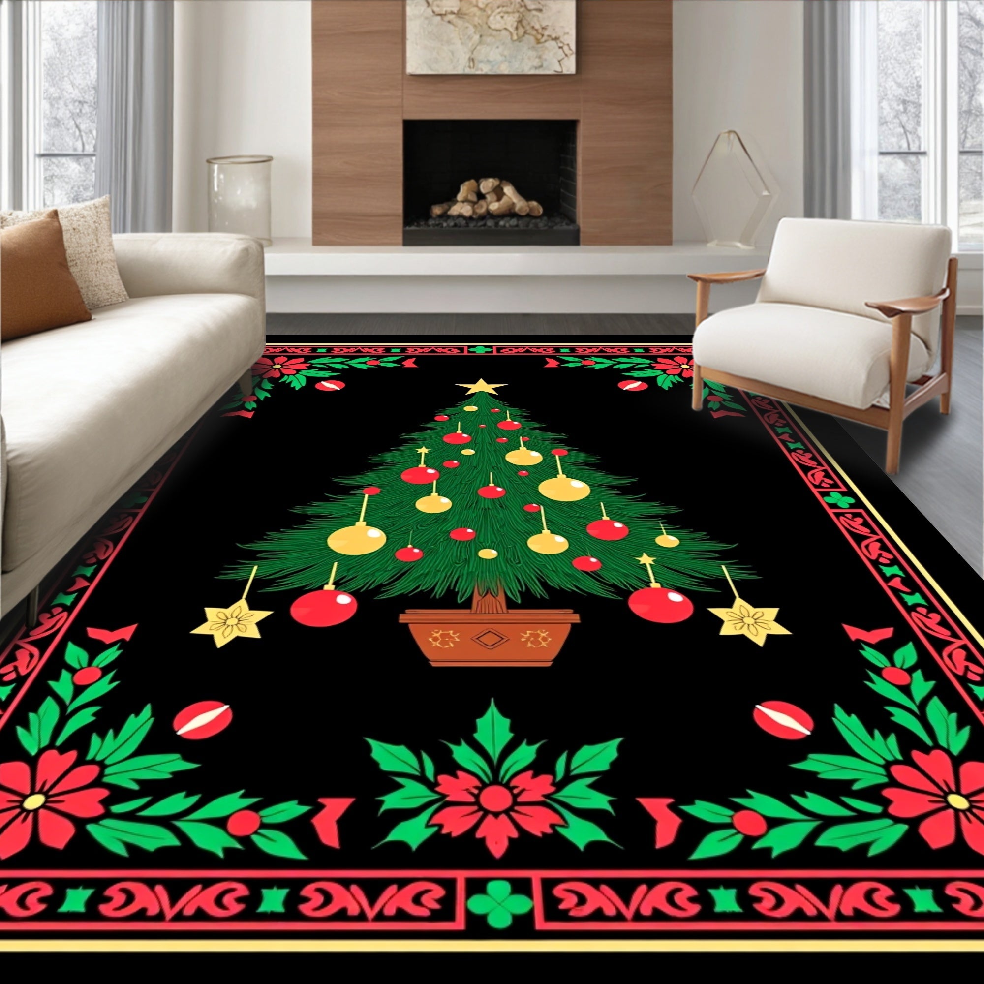 Flatwoven High Traffic Area Rug, Enchanted Pine Decorative With Elegant Ornament Display, Non Slip, Stain Resistant, Washable Area Rugs for Living Room, Bedroom (Green) Overview: