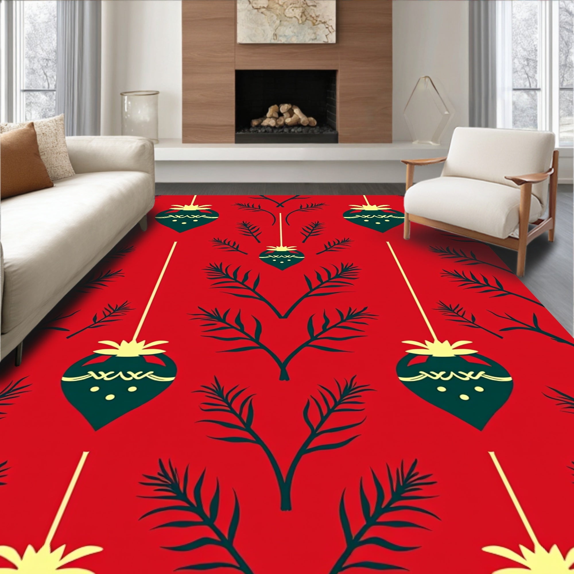 Flatwoven High Traffic Area Rug, Enchanted Pinecone Botanical Seasonal Artisan Treasure, Non Slip, Stain Resistant, Washable Area Rugs for Living Room, Bedroom (Red) Overview: