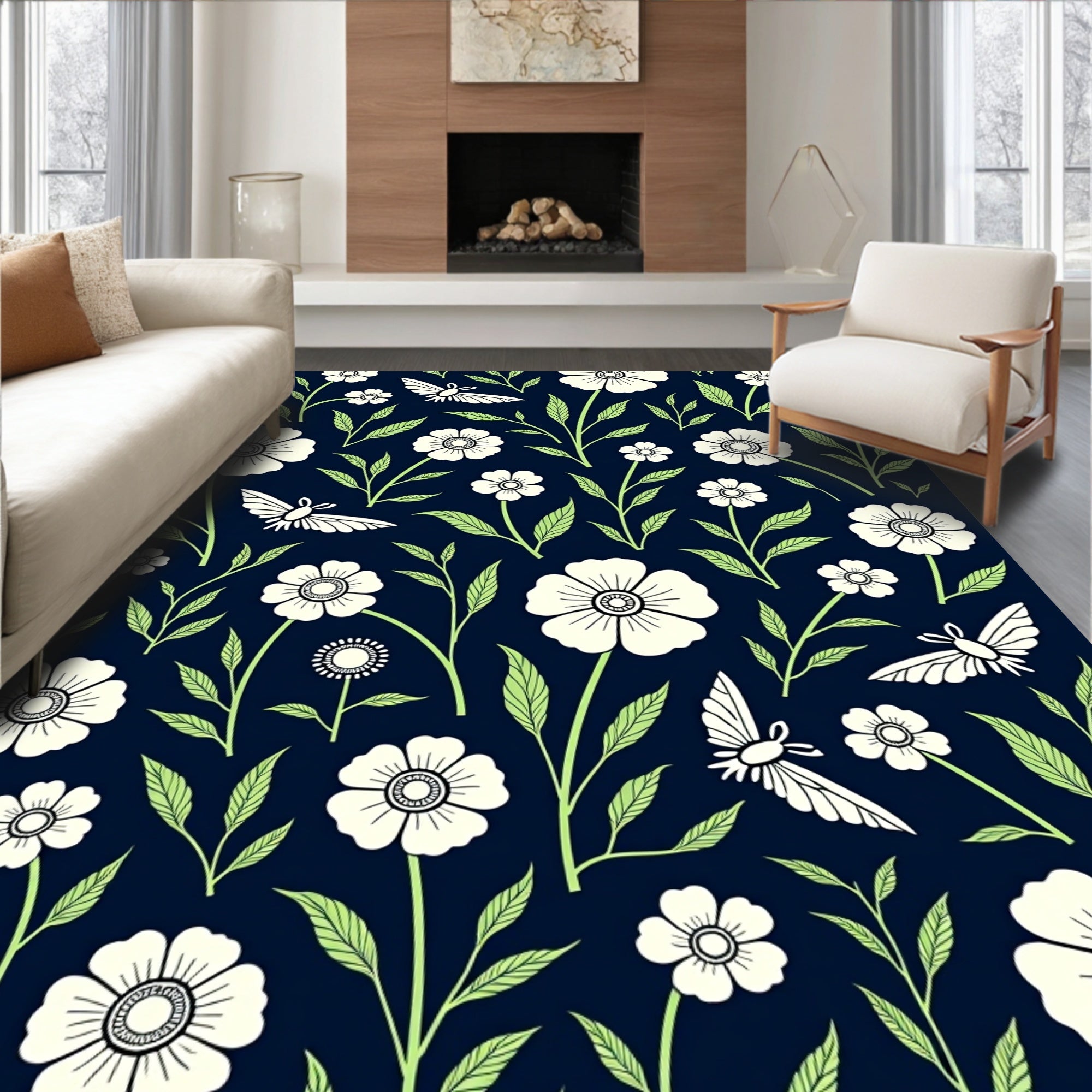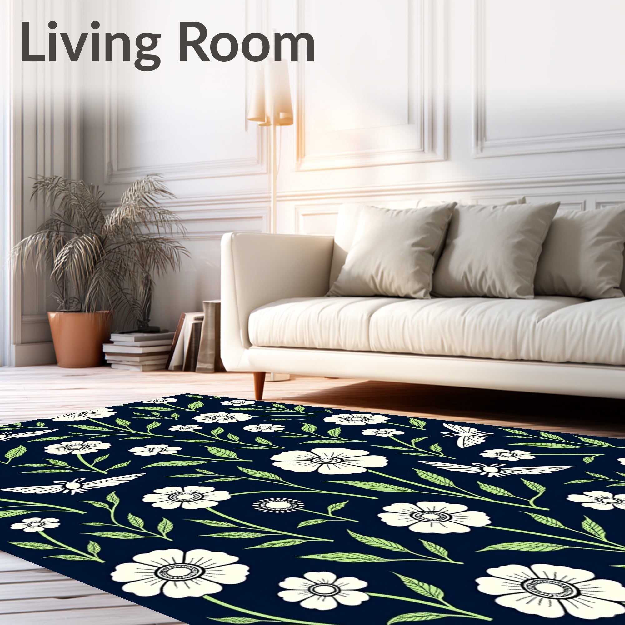 Flatwoven High Traffic Area Rug, Enchanted Poppy Moth Mushroom Celestial Night Sky Decorative, Non Slip, Stain Resistant, Washable Area Rugs for Living Room, Bedroom (Blue) Overview: