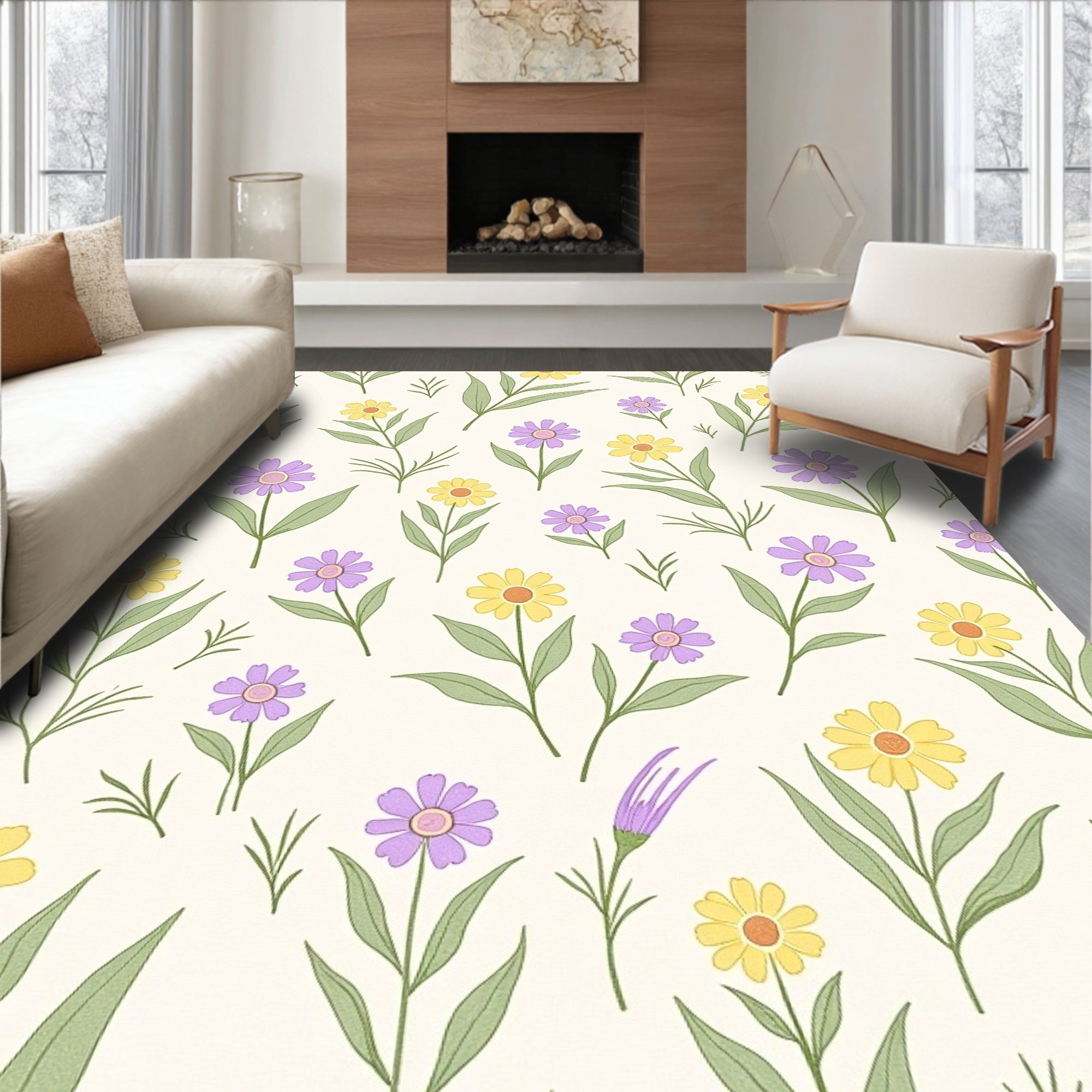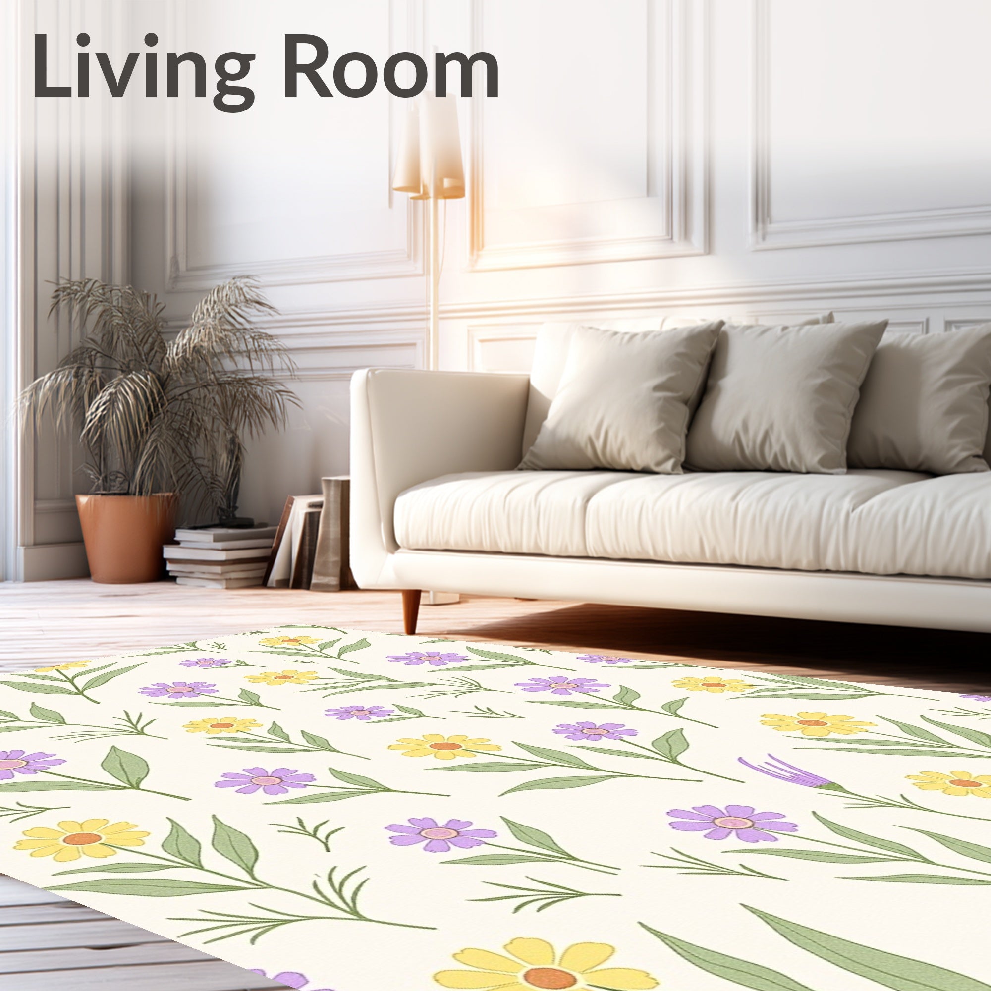 Flatwoven High Traffic Area Rug, Enchanted Prairie Blossom Arrangement Natural Wilderness Display, Non Slip, Stain Resistant, Washable Area Rugs for Living Room, Bedroom (Yellow) Overview: