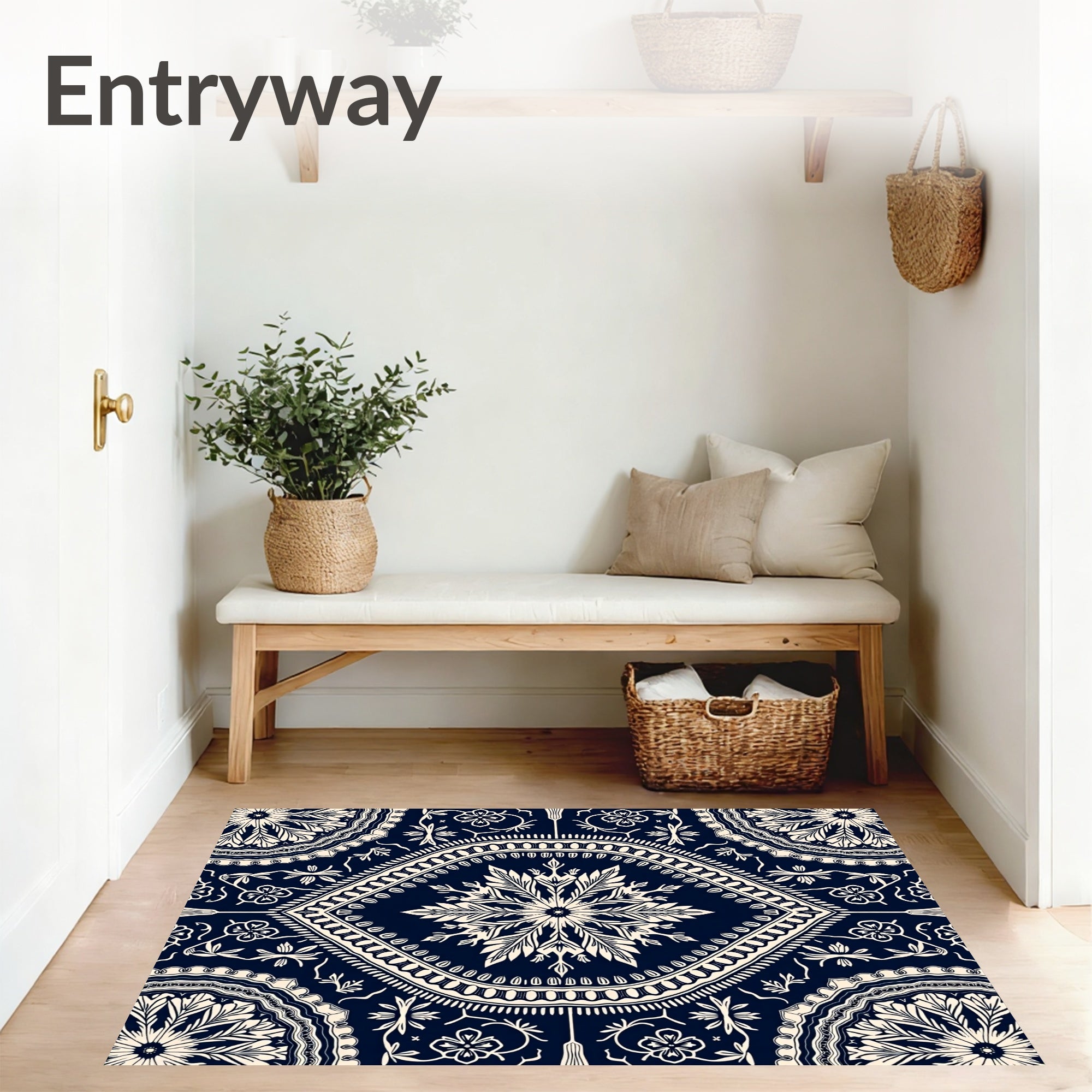 Flatwoven High Traffic Area Rug, Enchanted Snowfall Decorative Winter Holiday Celebration, Non Slip, Stain Resistant, Washable Area Rugs for Living Room, Bedroom (Navy) Overview: