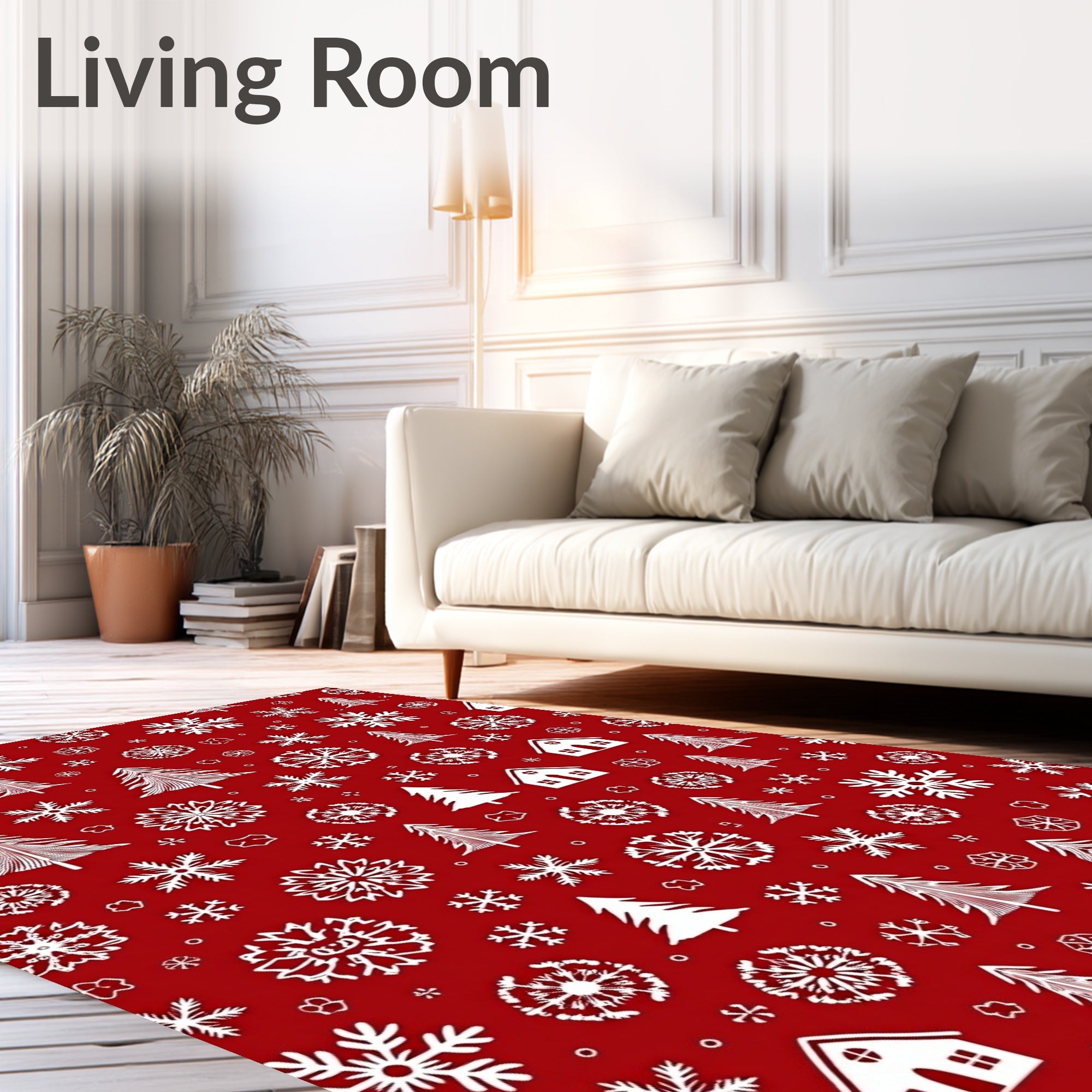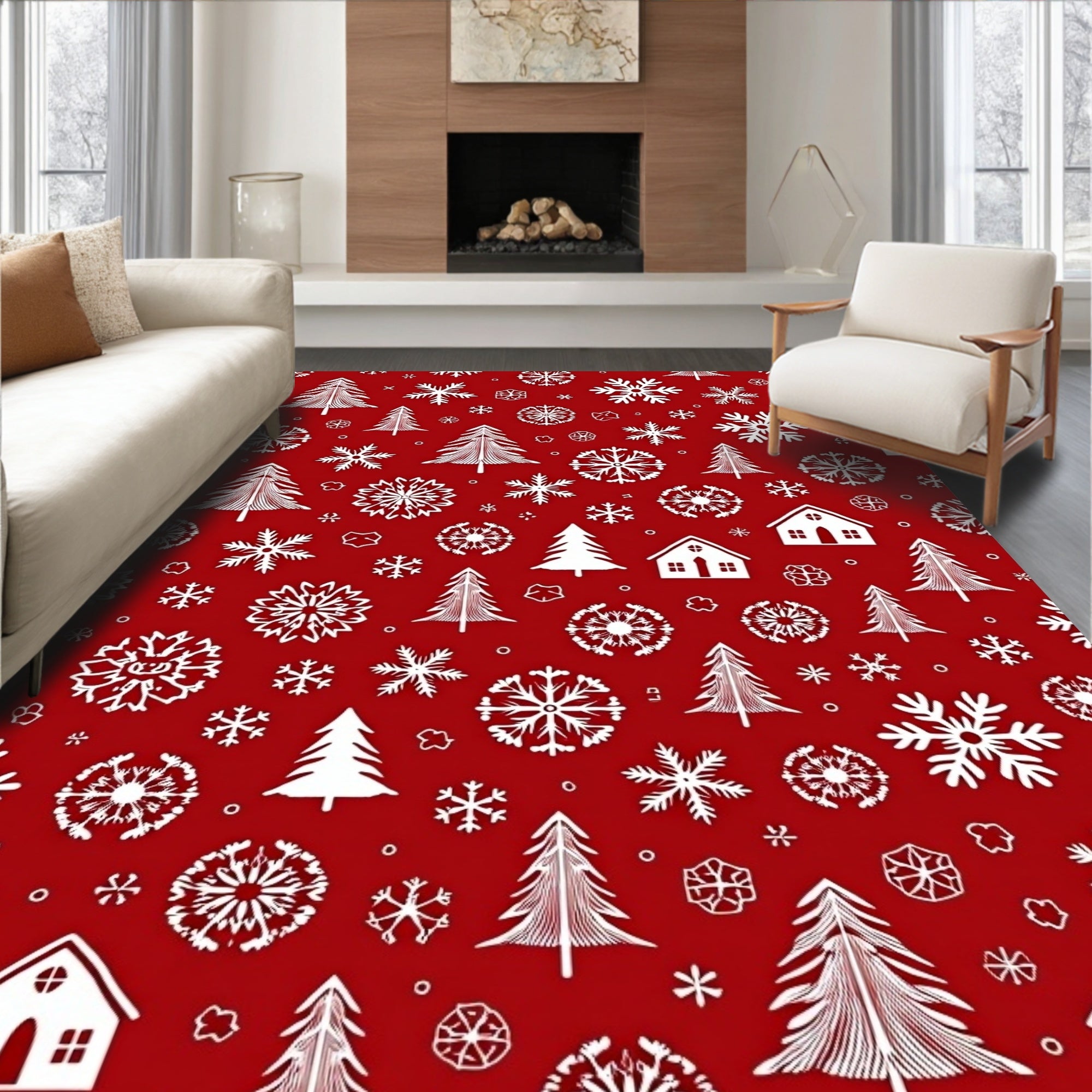 Flatwoven High Traffic Area Rug, Enchanted Snowfall Wonderland Decorative Pathway Accent, Non Slip, Stain Resistant, Washable Area Rugs for Living Room, Bedroom (Red) Overview: