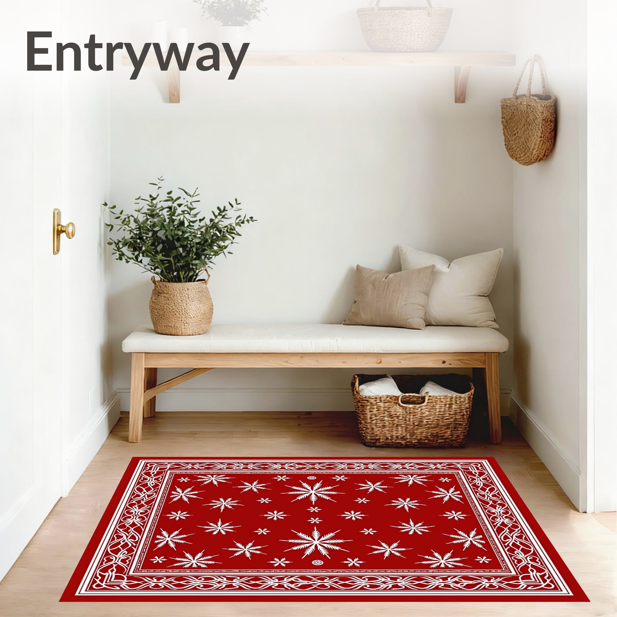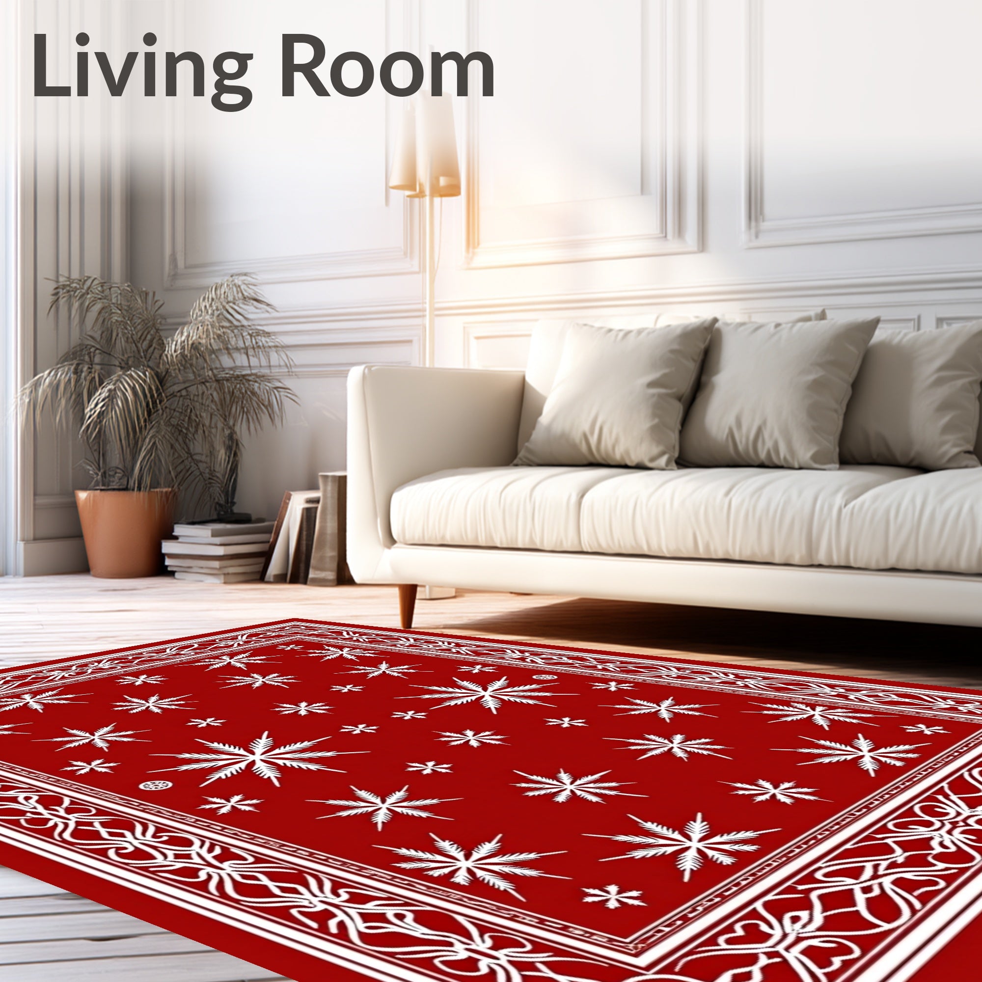 Ultra Soft Area Rug, Non Slip, Stain Resistant, Washable Area Rugs for Living Room, Bedroom, Enchanted Snowy Evening Crystal Decoration(Red) Overview: