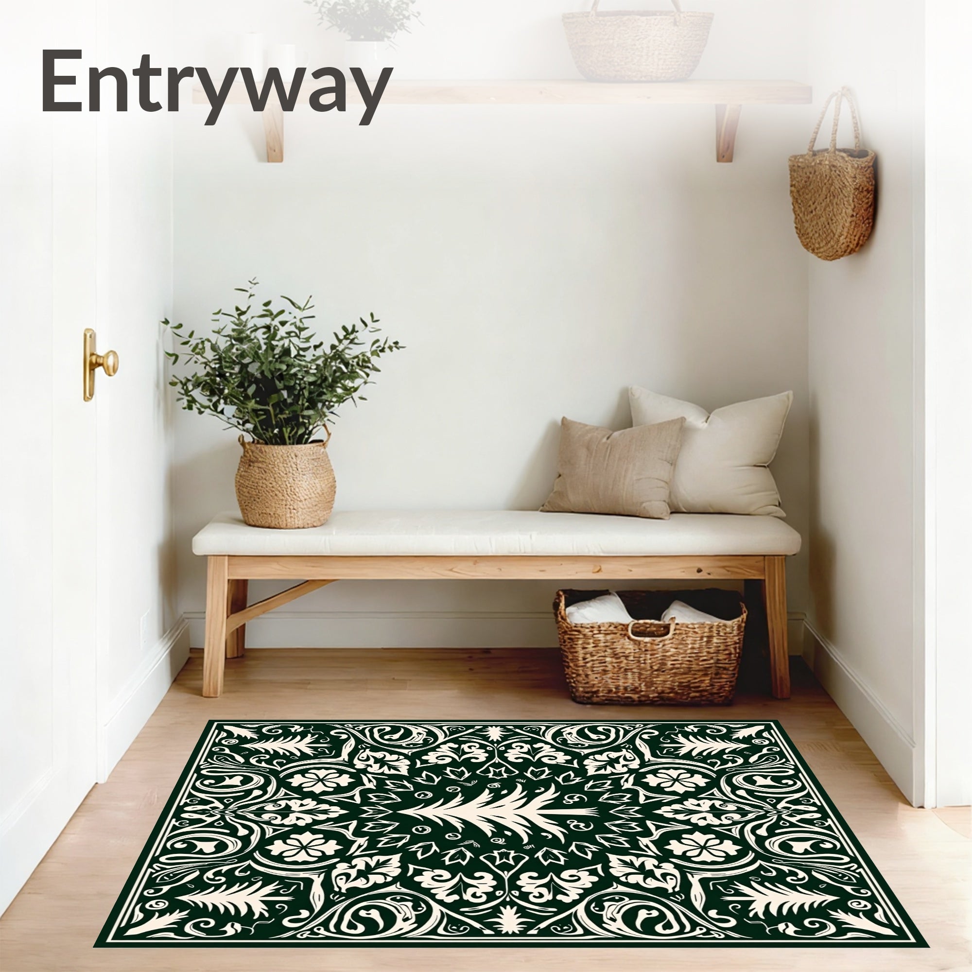 Ultra Soft Area Rug, Non Slip, Stain Resistant, Washable Area Rugs for Living Room, Bedroom, Enchanted Spruce Half Round Entrance Floor Covering(Green) Overview:
