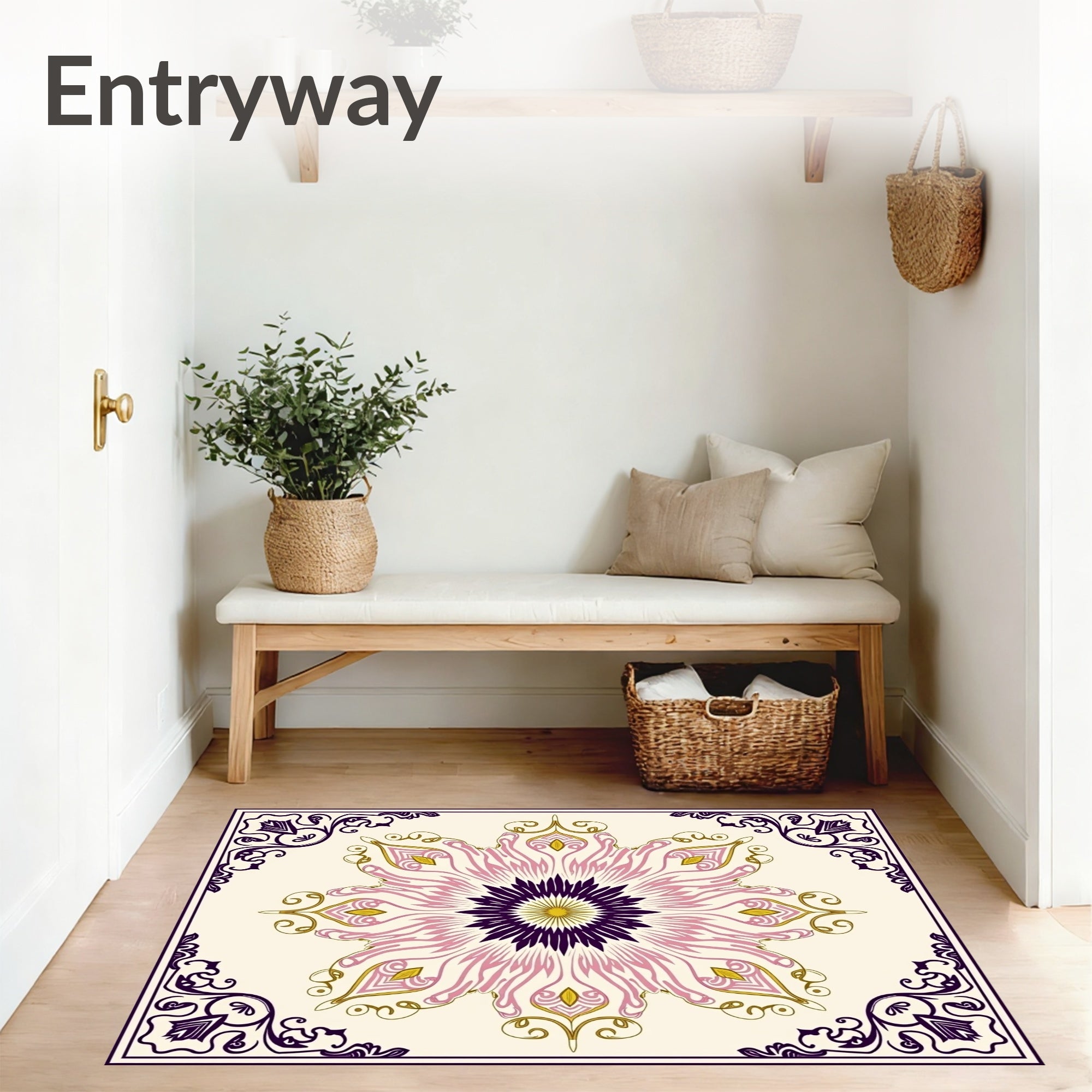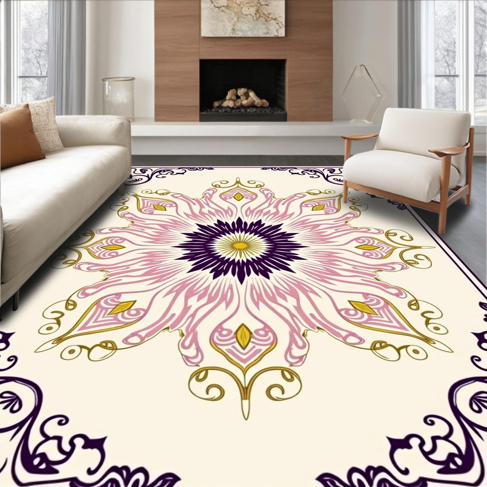Flatwoven High Traffic Area Rug, Enchanted Starburst Medallion with Whimsical Floral Accents, Non Slip, Stain Resistant, Washable Area Rugs for Living Room, Bedroom (Pink) Overview: