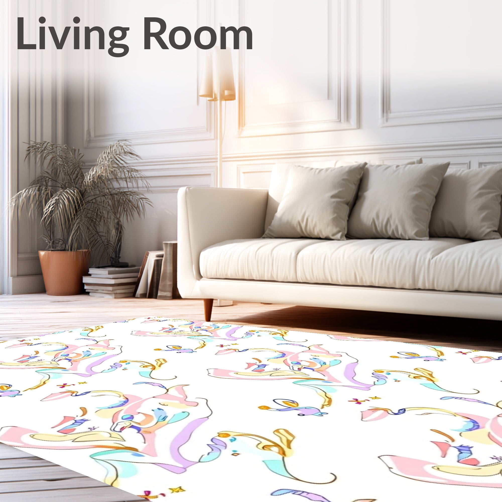 Flatwoven High Traffic Area Rug, Enchanted Unicorn Mane Flowing Waves with Magical Sparkle Motifs, Non Slip, Stain Resistant, Washable Area Rugs for Living Room, Bedroom (Pink) Overview: