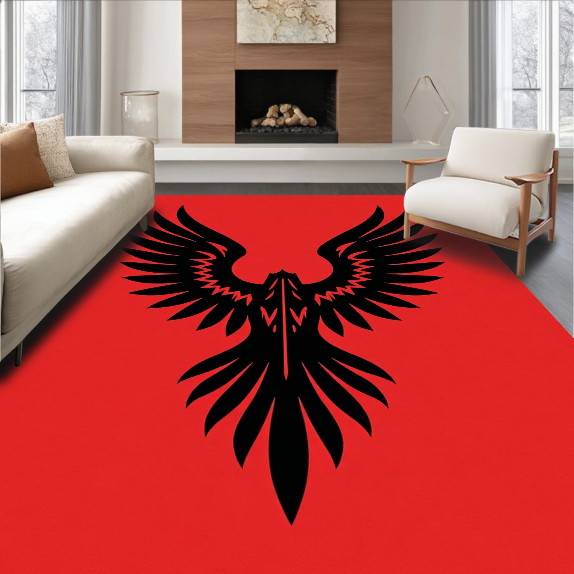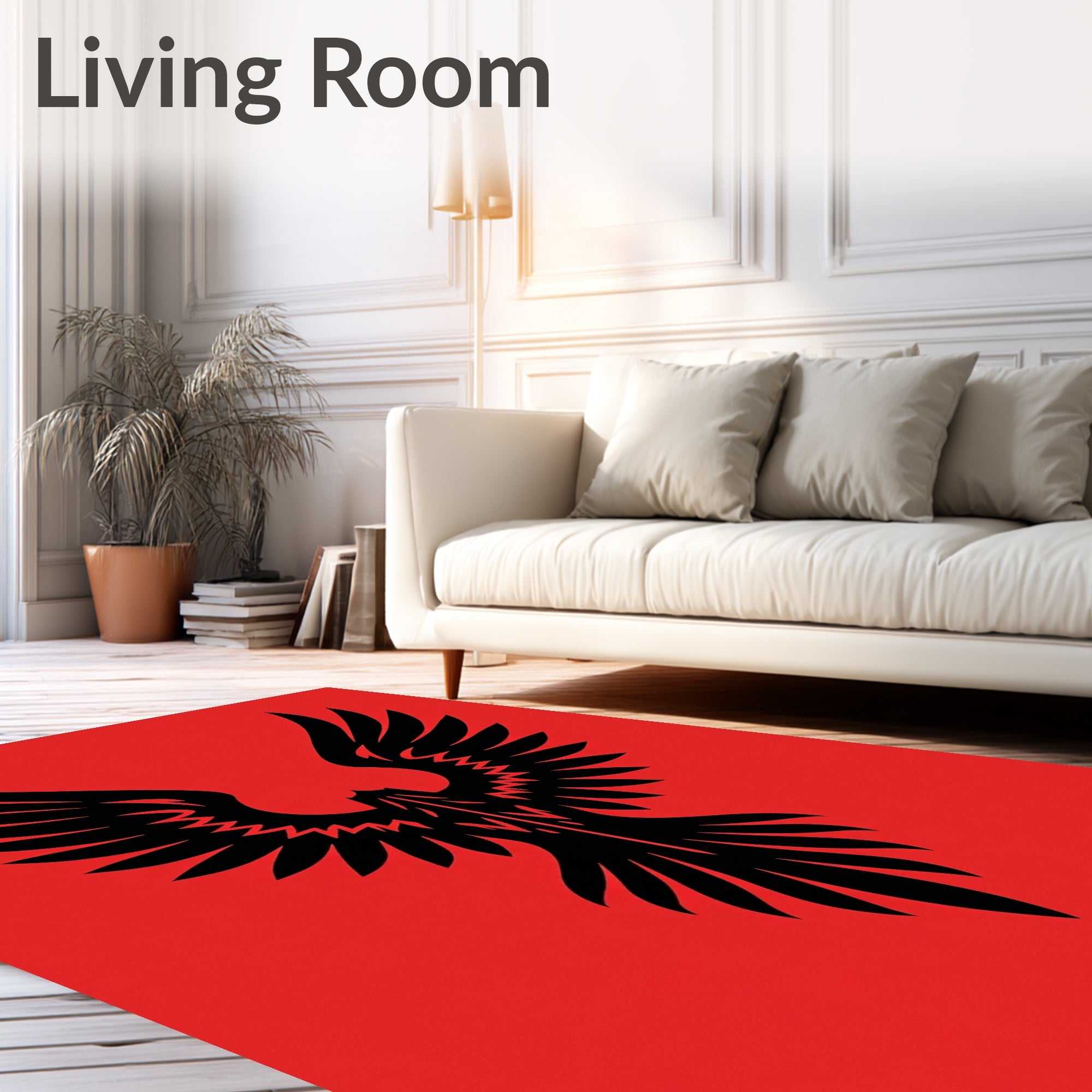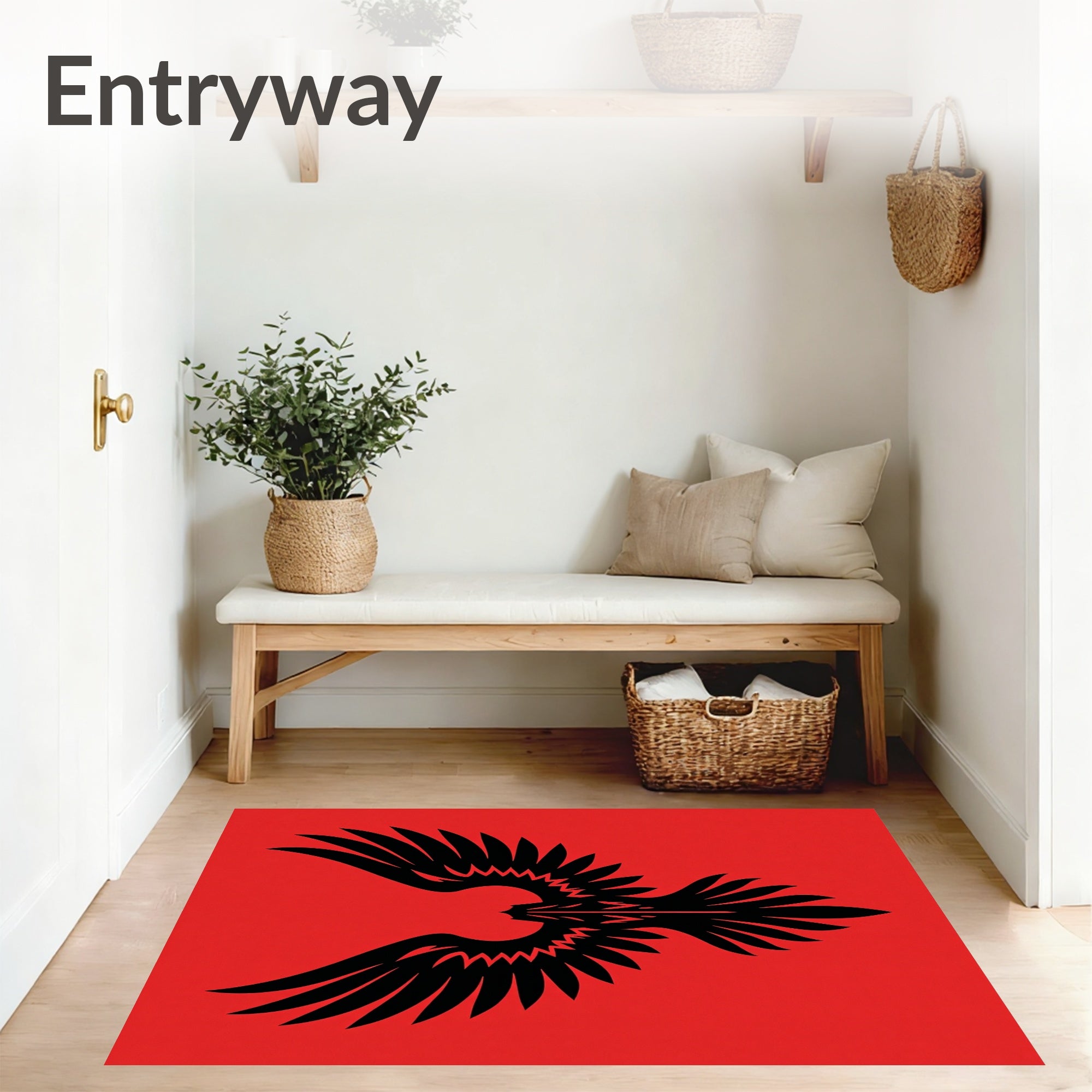 Flatwoven High Traffic Area Rug, Enchanted Winged Shadow Mystical Night Harvest Festival Accent, Non Slip, Stain Resistant, Washable Area Rugs for Living Room, Bedroom (Red) Overview: