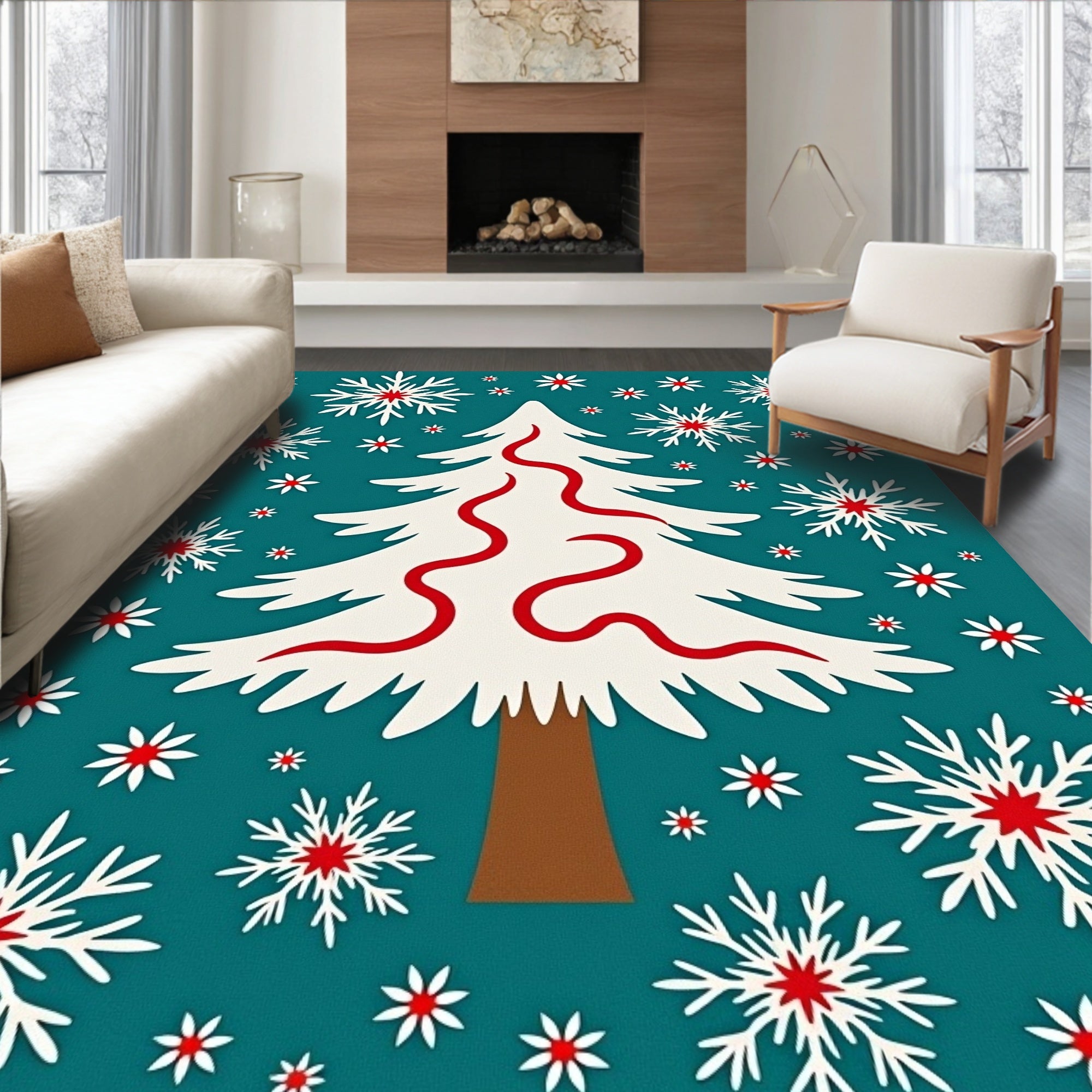 Ultra Soft Area Rug, Non Slip, Stain Resistant, Washable Area Rugs for Living Room, Bedroom, Enchanted Winter Fir Decoration Accent Magical Snow(Teal) Overview: