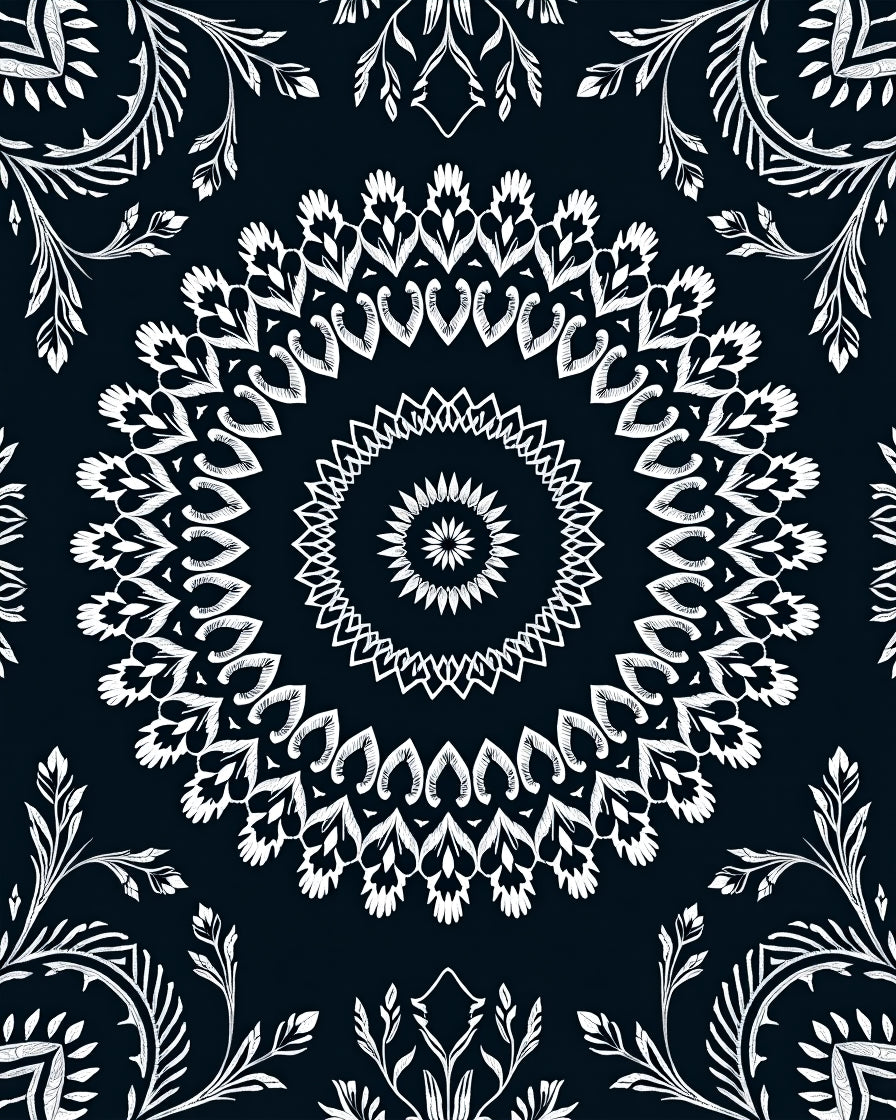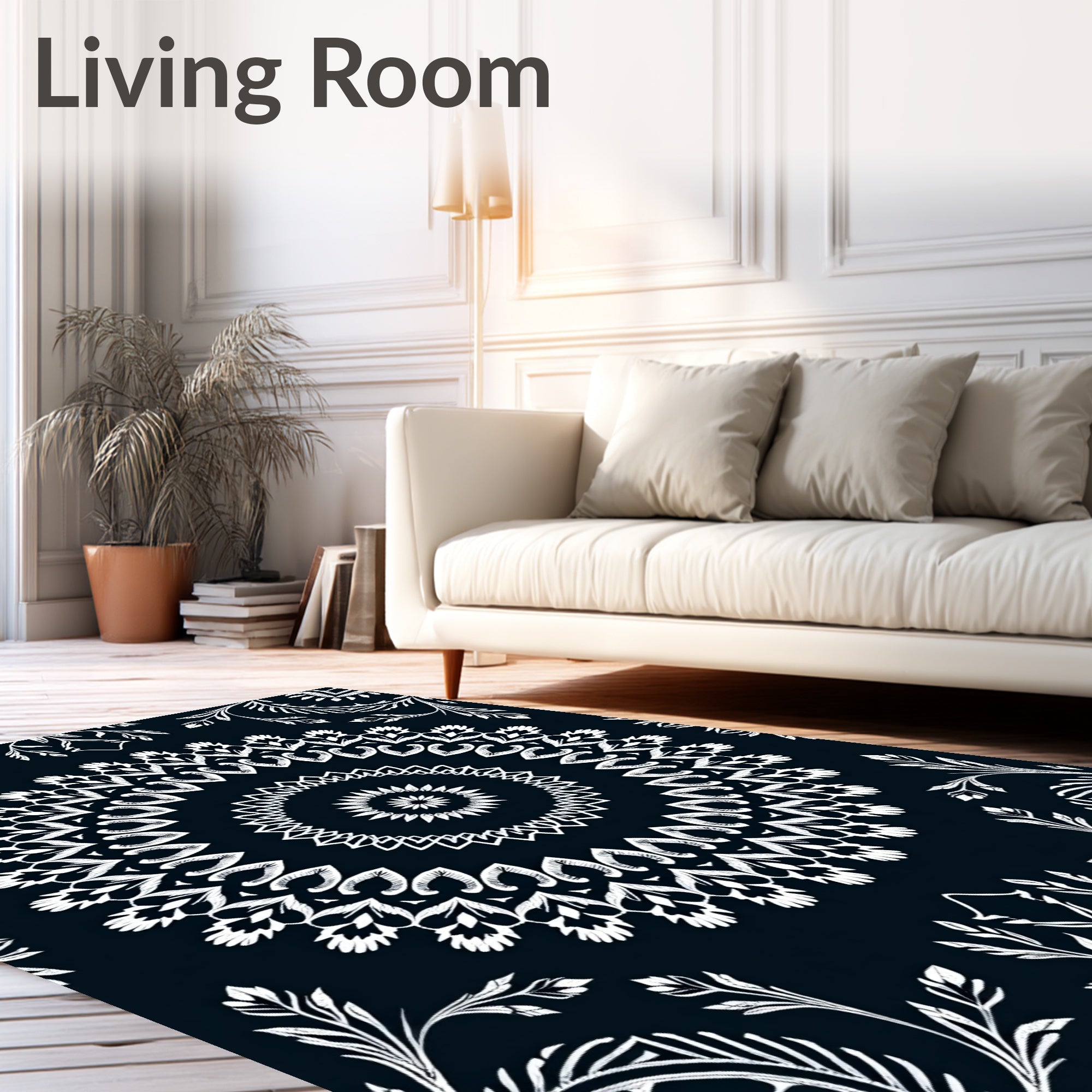 Ultra Soft Area Rug, Non Slip, Stain Resistant, Washable Area Rugs for Living Room, Bedroom, Enchanted Winter Foliage Circular Adornment(Black) Overview: