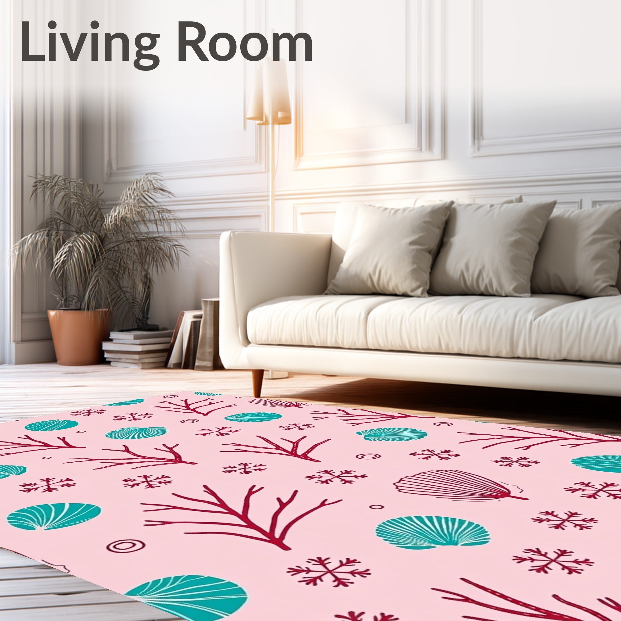 Ultra Soft Area Rug, Non Slip, Stain Resistant, Washable Area Rugs for Living Room, Bedroom, Enchanted Winter Ocean Treasure Motif Decorative Arrangement(Pink) Overview: