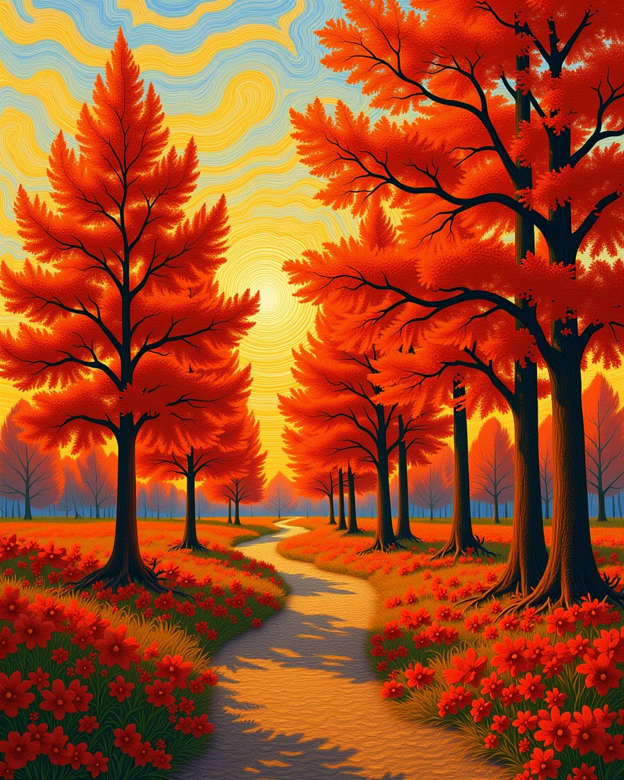 Enchanted Woodland Sunset Path Tapestry(Orange)