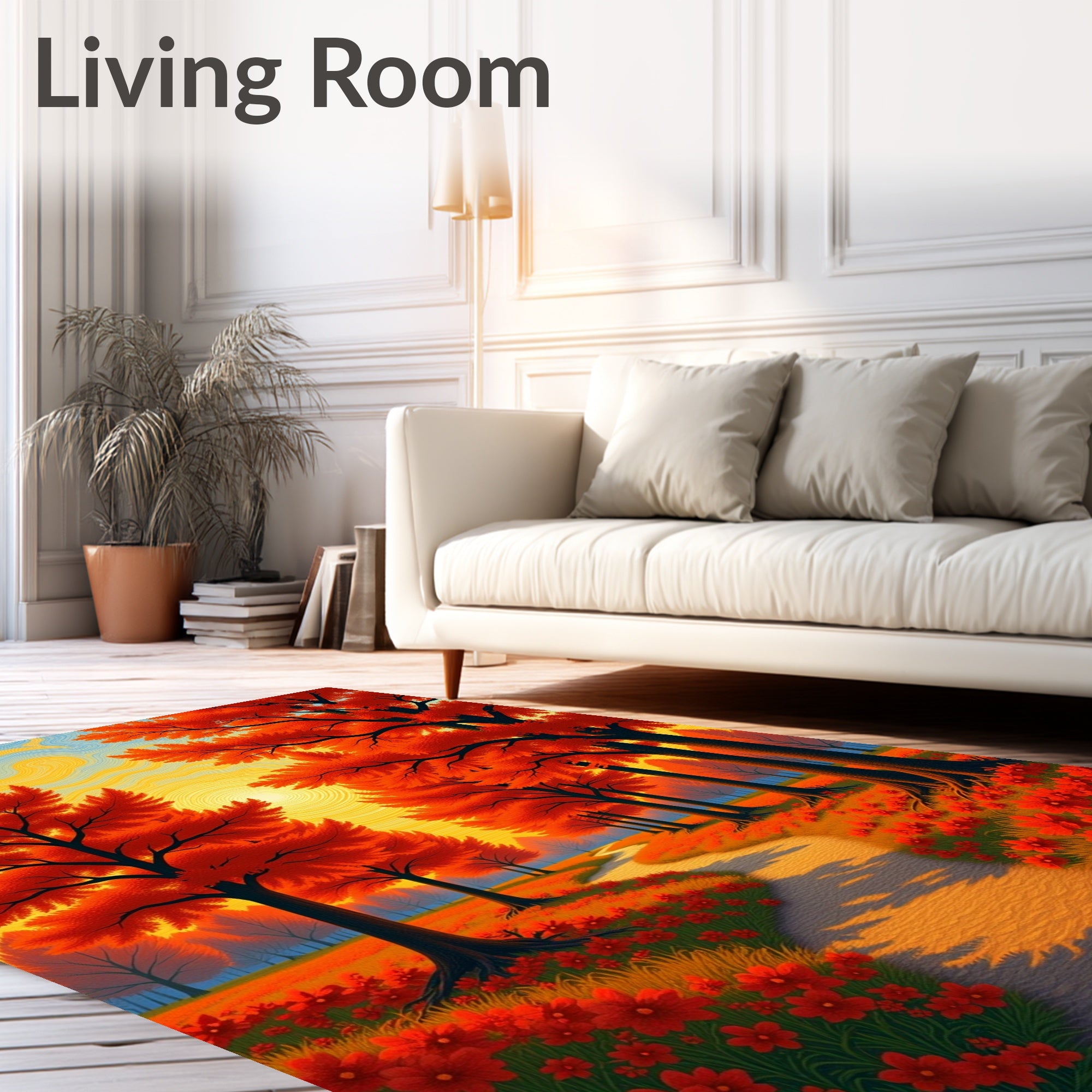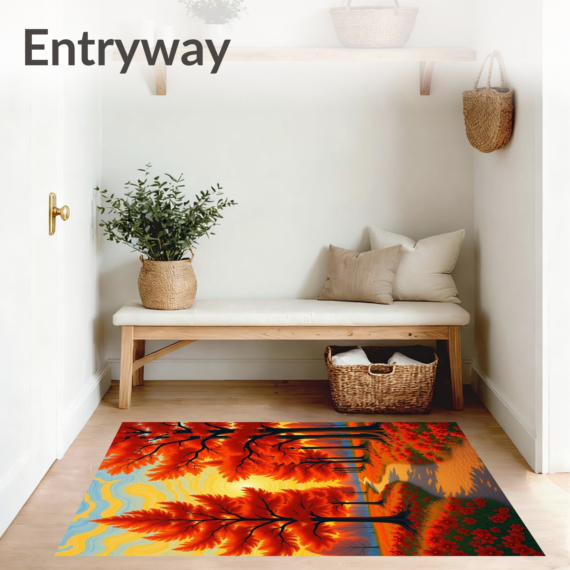 Flatwoven High Traffic Area Rug, Enchanted Woodland Sunset Path Tapestry, Non Slip, Stain Resistant, Washable Area Rugs for Living Room, Bedroom (Orange) Overview: