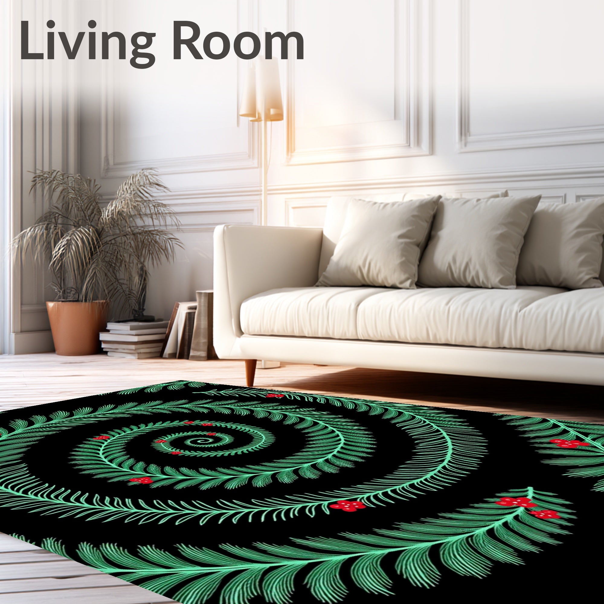 Flatwoven High Traffic Area Rug, Enchanted Wreath Spiral Decorative Embellishment, Non Slip, Stain Resistant, Washable Area Rugs for Living Room, Bedroom (Green) Overview:
