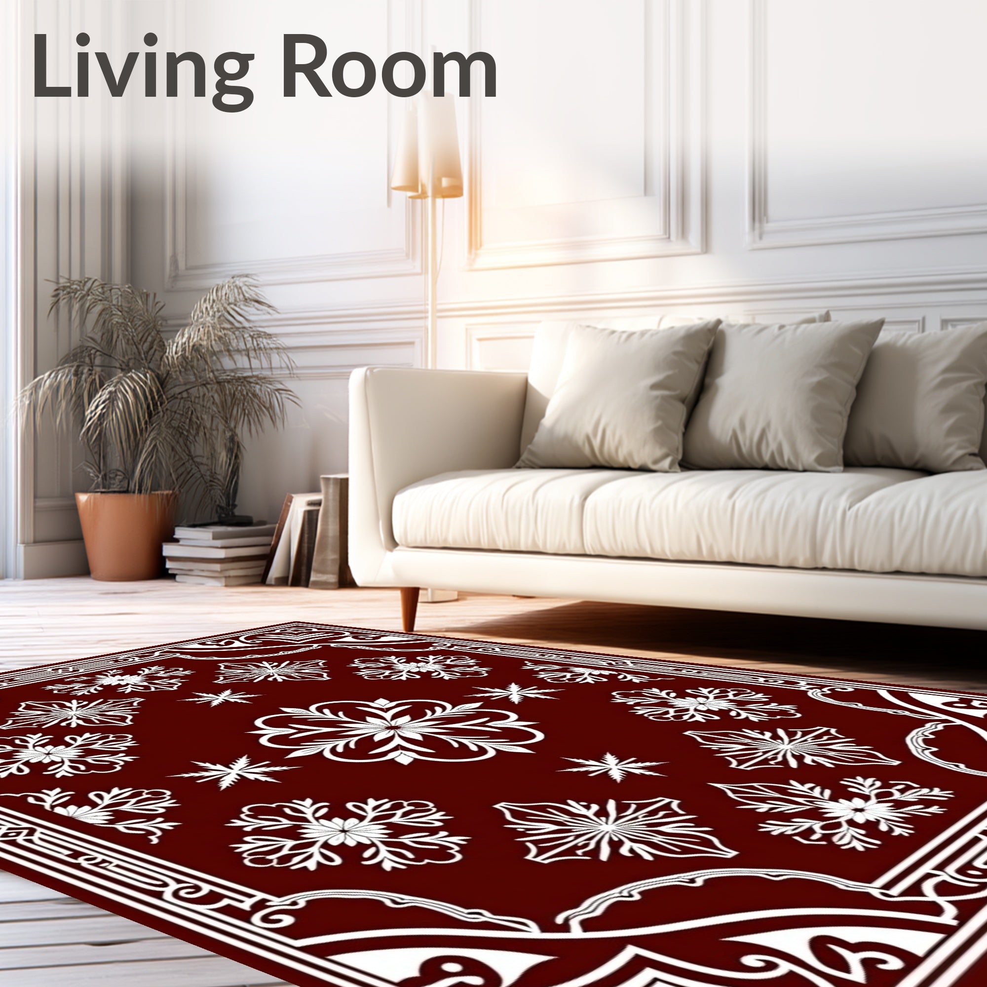 Ultra Soft Area Rug, Non Slip, Stain Resistant, Washable Area Rugs for Living Room, Bedroom, Enchanted Yuletide Path Showcasing Elegant Snowflake Arrangement(Brown) Overview: