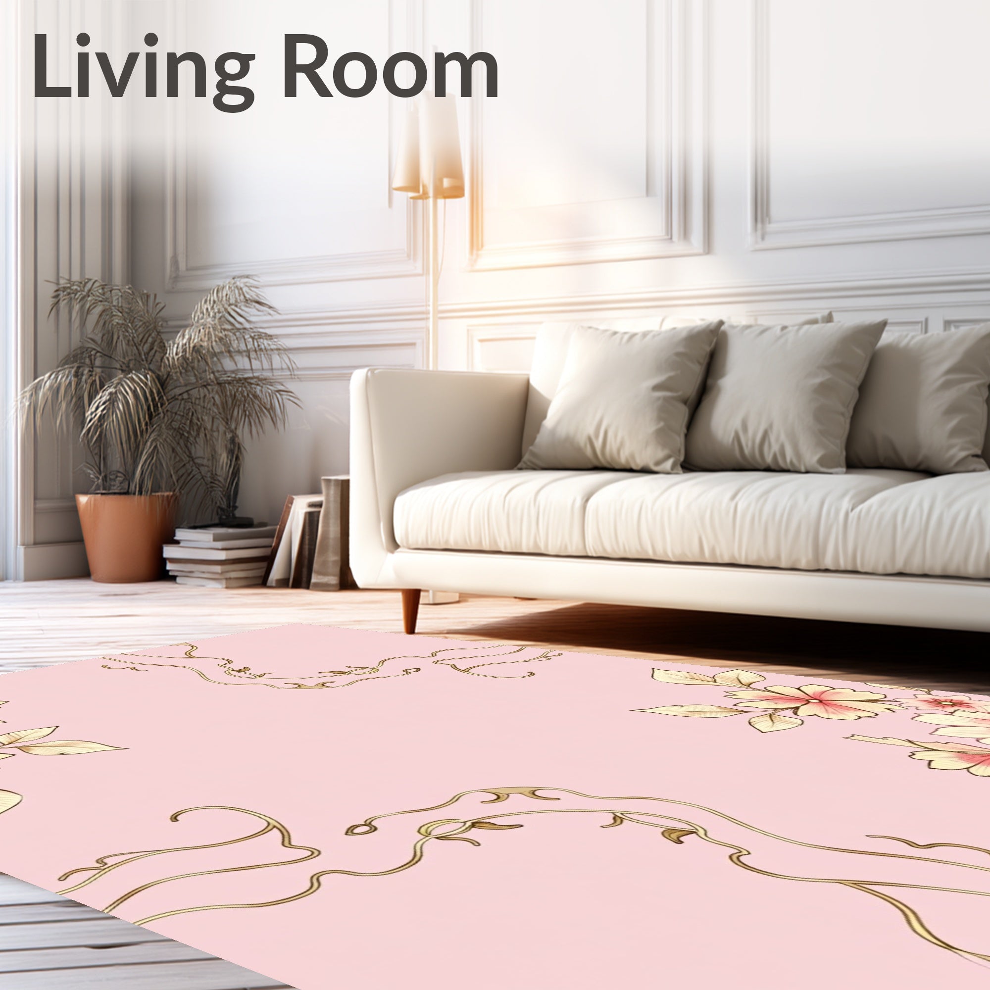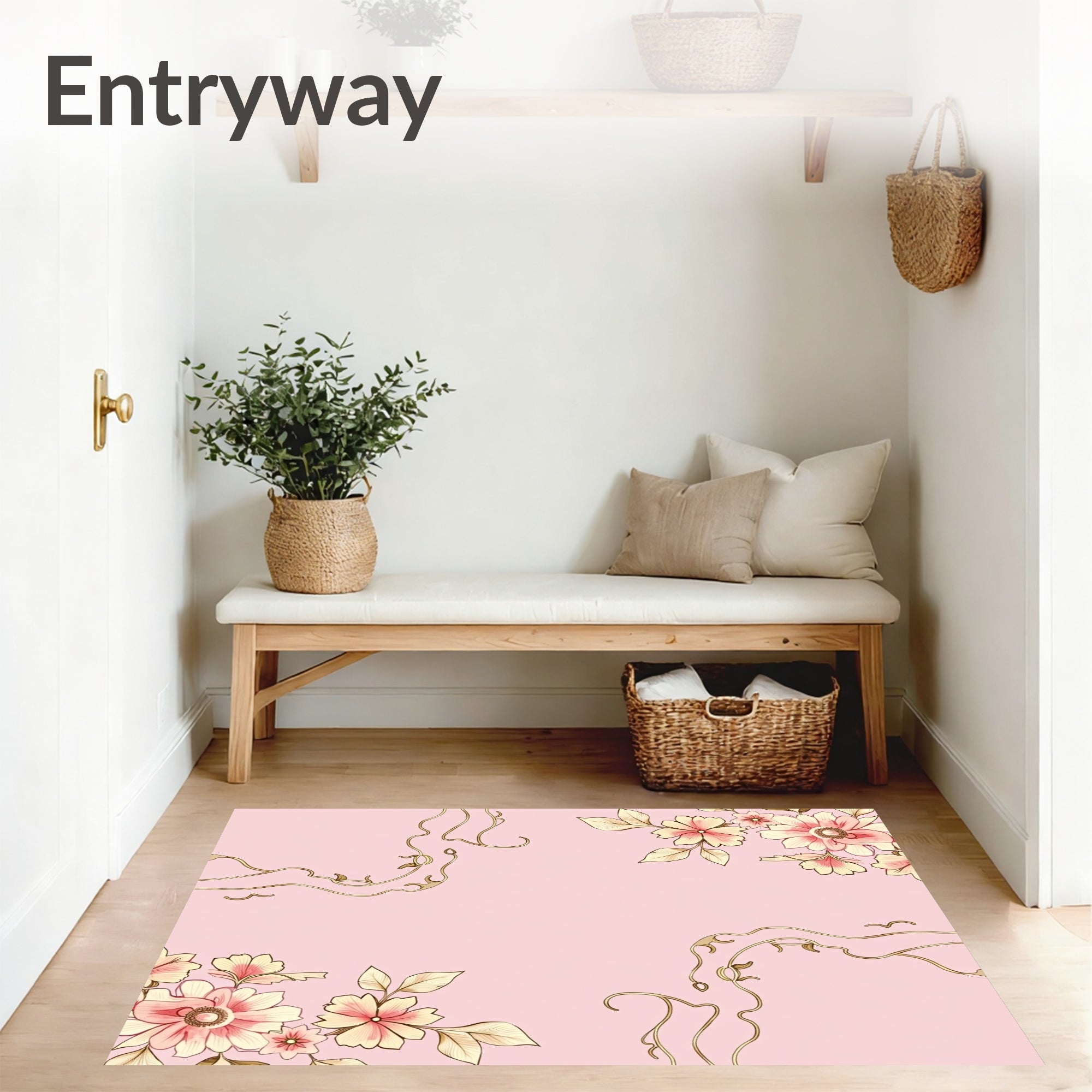 Flatwoven High Traffic Area Rug, Enchanting Blossom Cascade With Symmetrical Vine Tracery, Non Slip, Stain Resistant, Washable Area Rugs for Living Room, Bedroom (Pink) Overview: