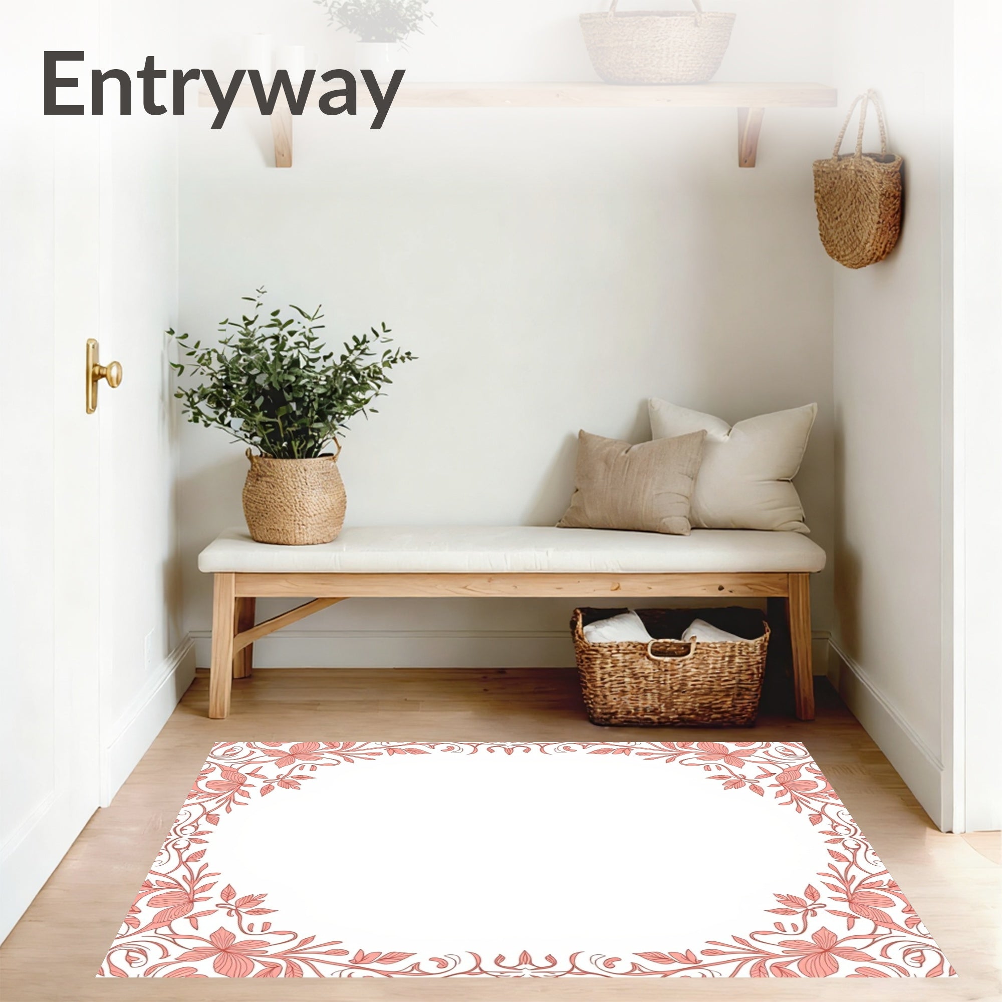 Flatwoven High Traffic Area Rug, Enchanting Botanical Garden Floral Leaf Scroll Vine Arrangement, Non Slip, Stain Resistant, Washable Area Rugs for Living Room, Bedroom (Pink) Overview: