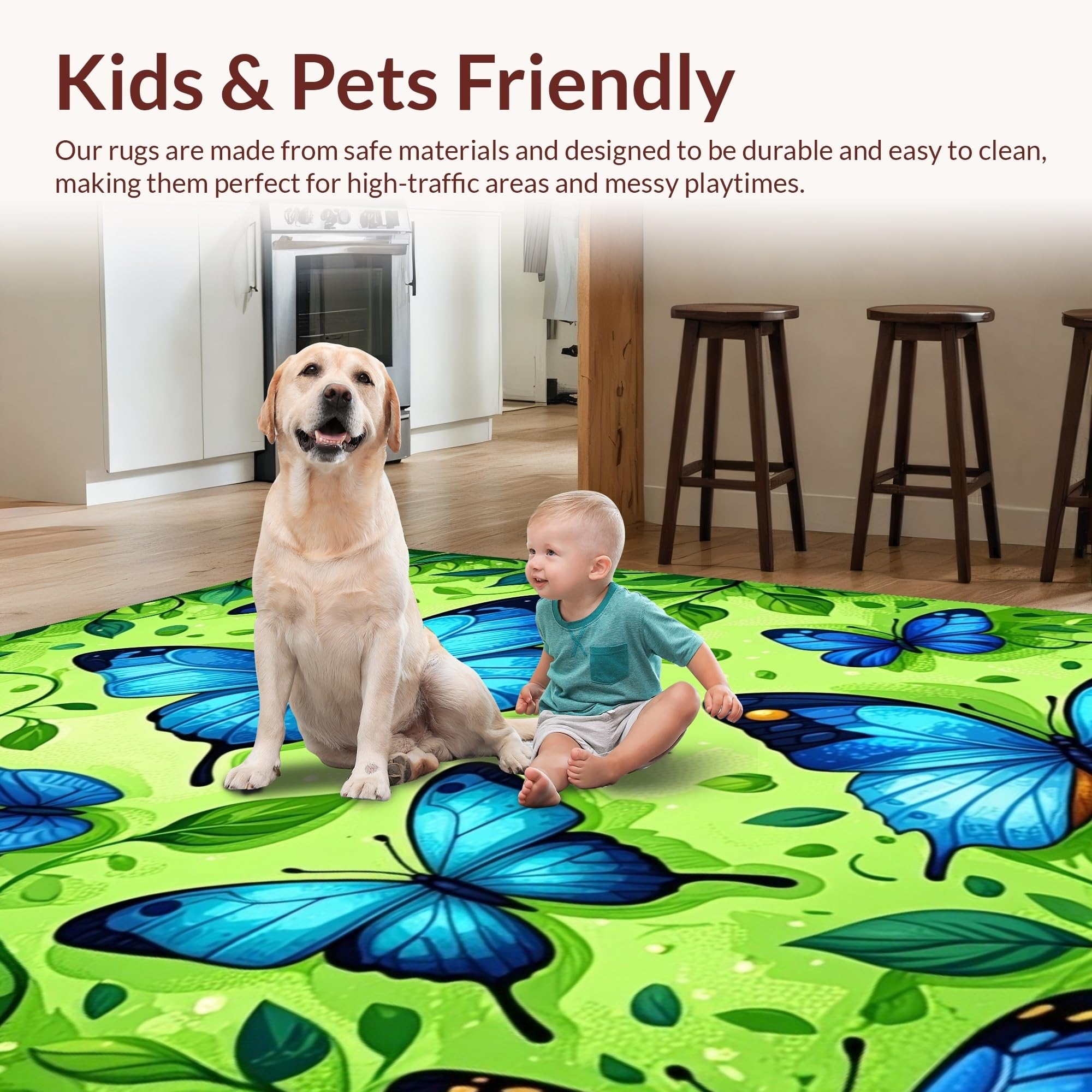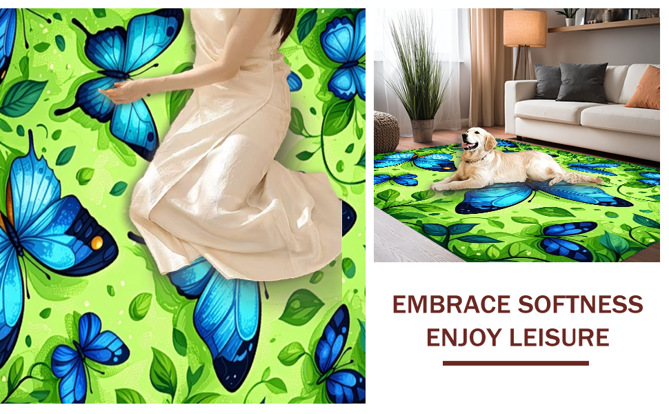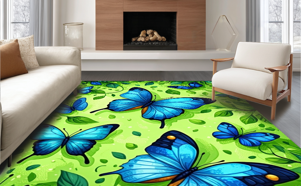 Ultra Soft Area Rug, Non Slip, Stain Resistant, Washable Area Rugs for Living Room, Bedroom, Enchanting Bright Floral Accents Arrangement(Blue) Overview: