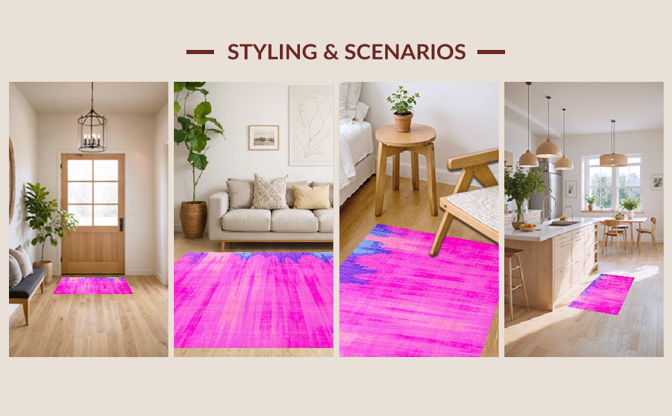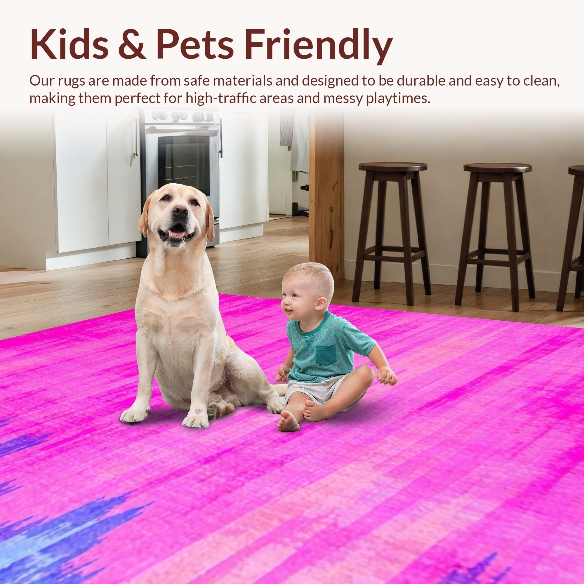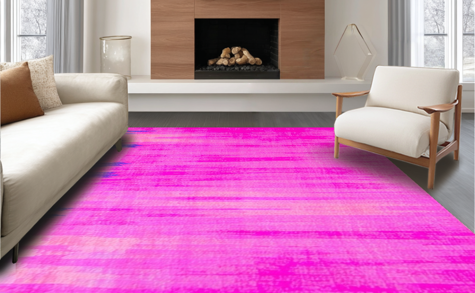 Ultra Soft Area Rug, Non Slip, Stain Resistant, Washable Area Rugs for Living Room, Bedroom, Enchanting Bright Gradient Visuals(Pink) Overview: