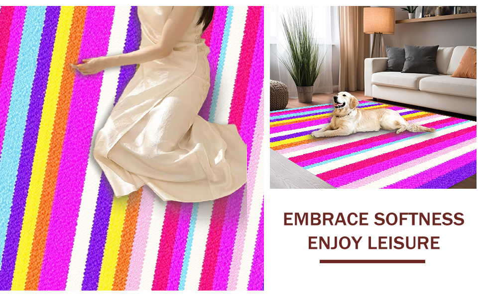 Ultra Soft Area Rug, Non Slip, Stain Resistant, Washable Area Rugs for Living Room, Bedroom, Enchanting Cheerful Geometric Touch(Pink) Overview: