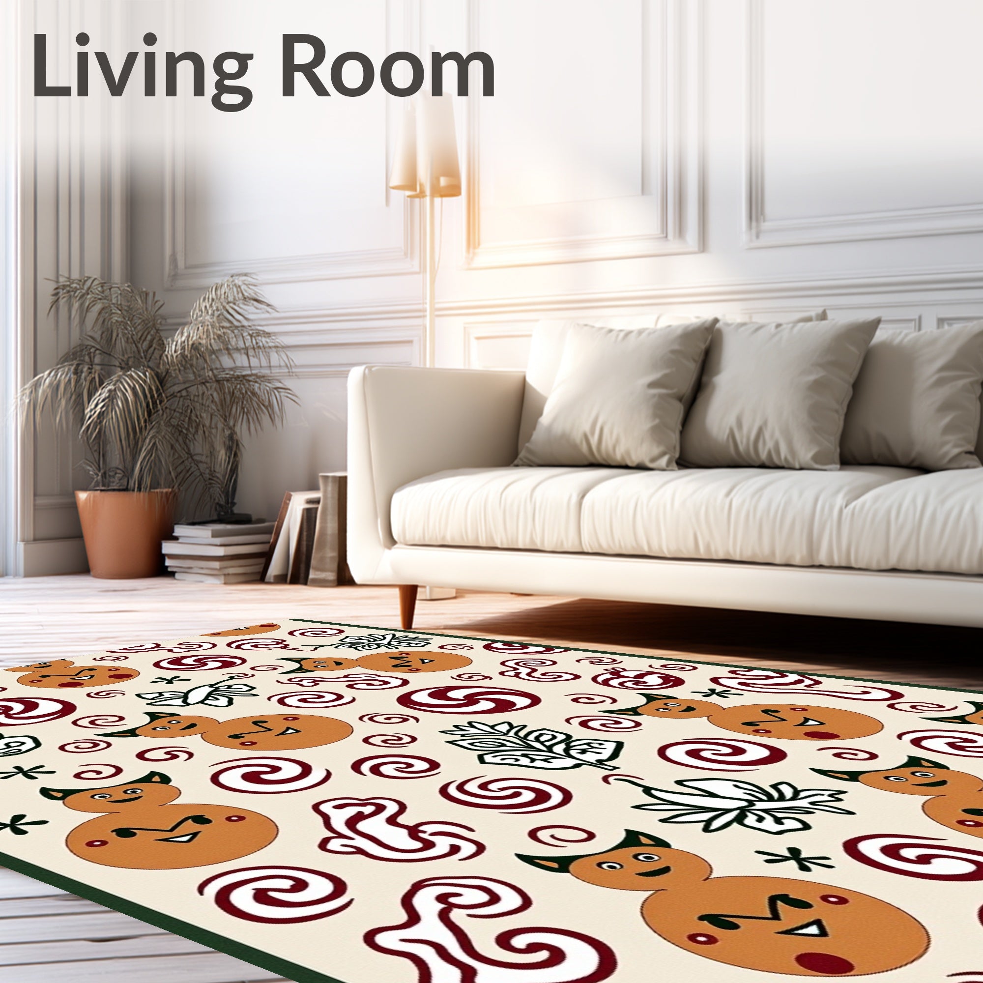 Flatwoven High Traffic Area Rug, Enchanting Cookie Person Household Surface Protectors Peppermint, Non Slip, Stain Resistant, Washable Area Rugs for Living Room, Bedroom (Beige) Overview:
