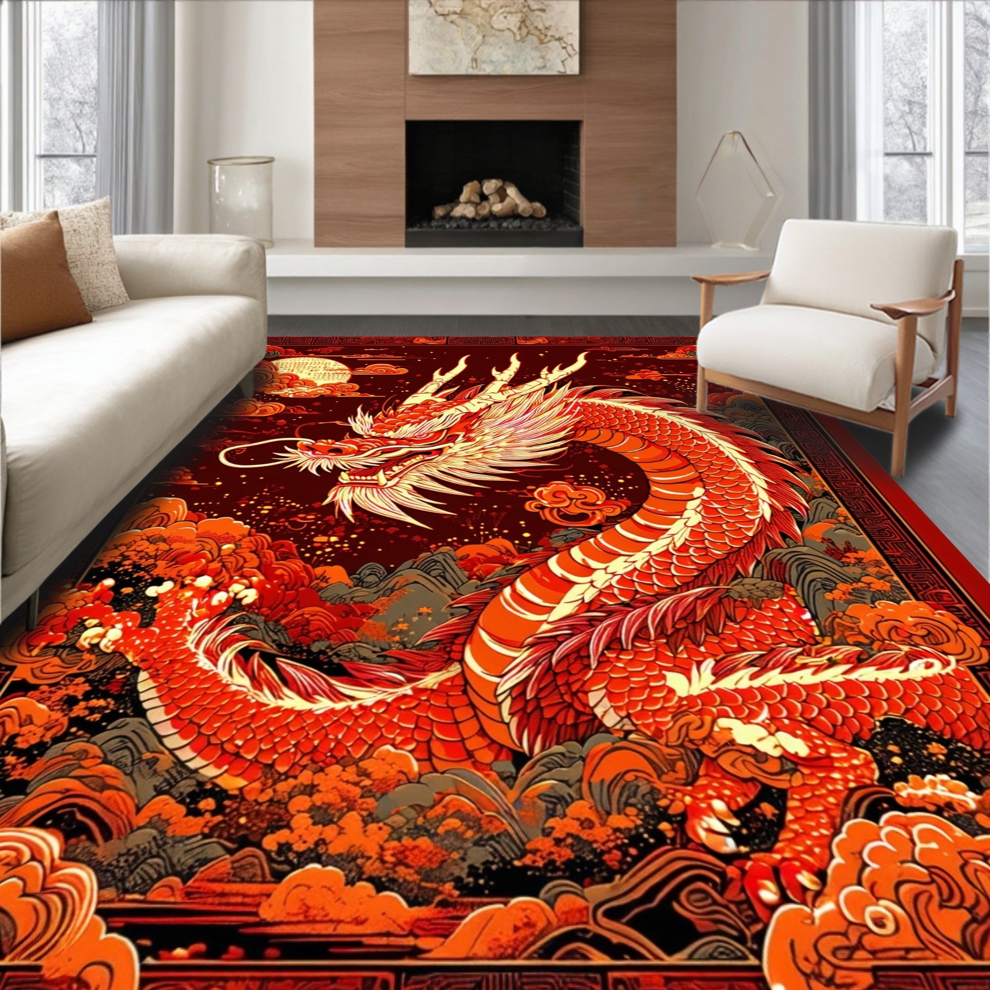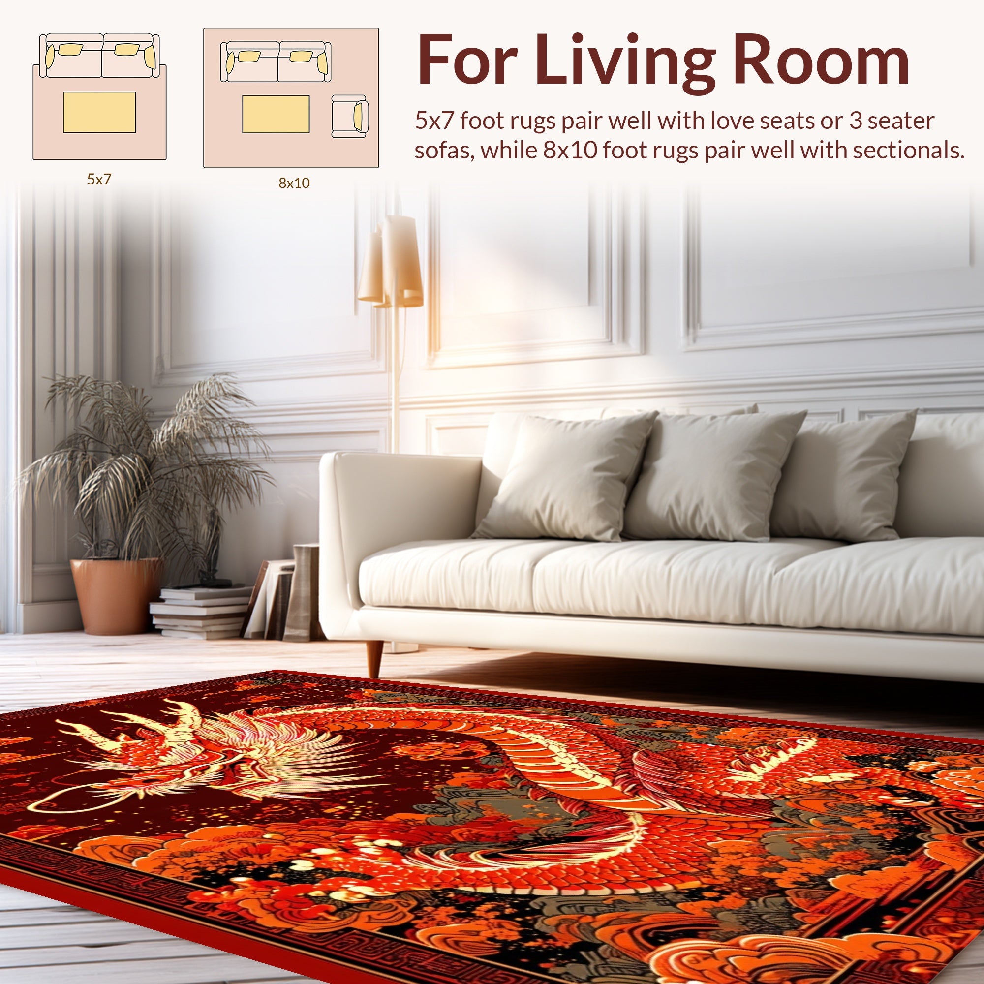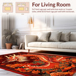Flatwoven High Traffic Area Rug, Enchanting Fantasy Realm Motif, Non Slip, Stain Resistant, Washable Area Rugs for Living Room, Bedroom (Red) Overview:
