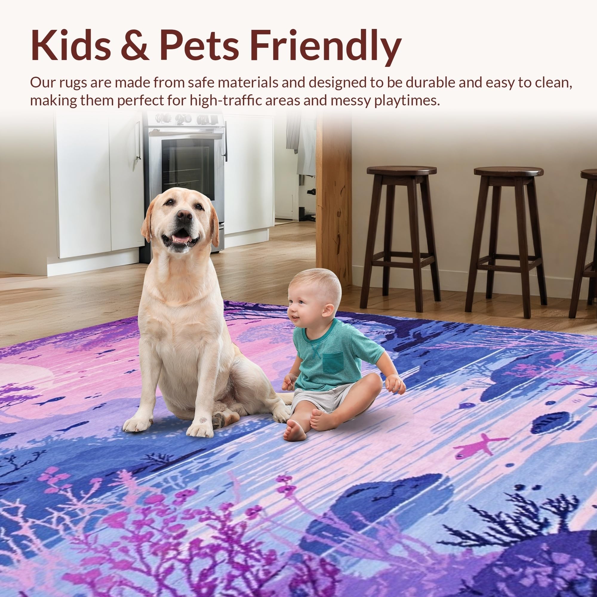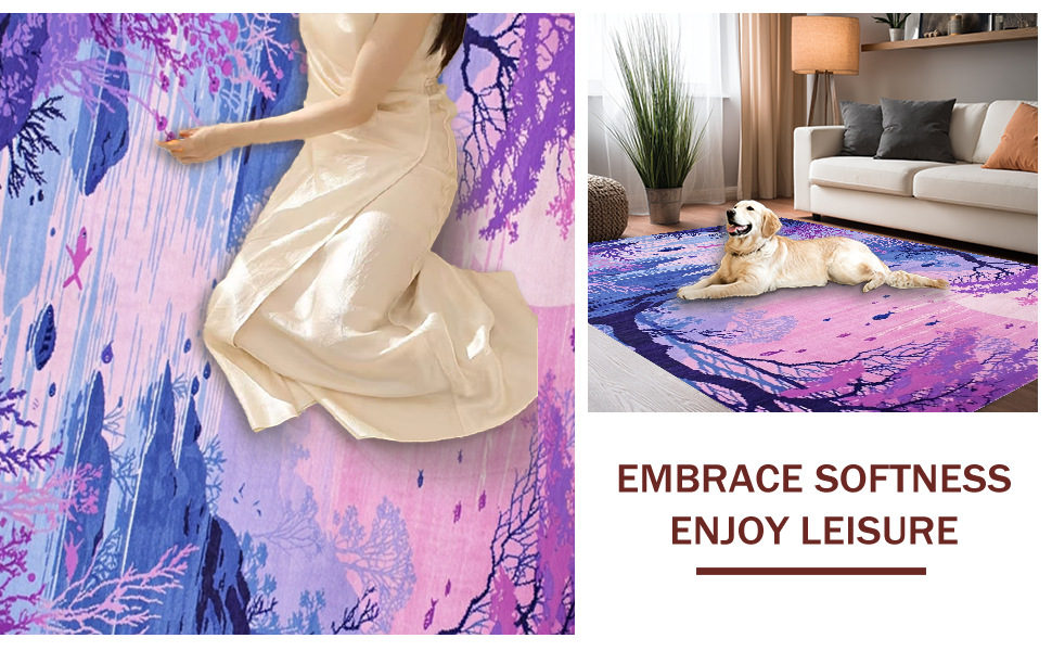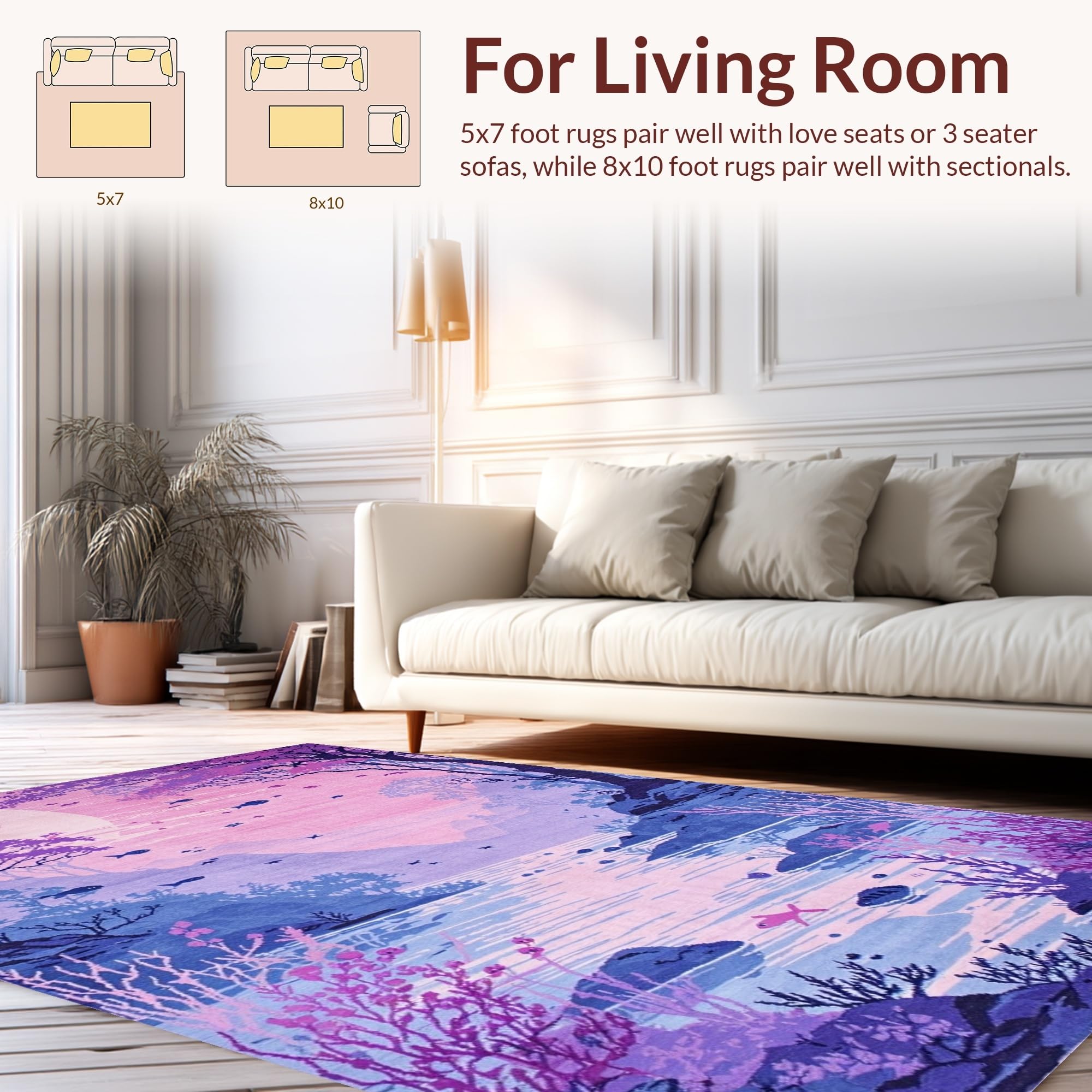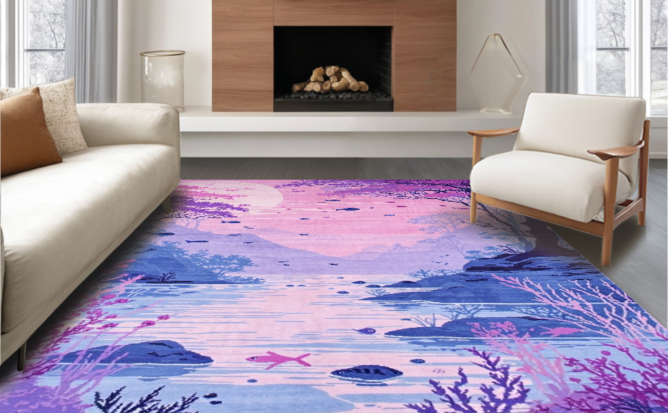 Ultra Soft Area Rug, Non Slip, Stain Resistant, Washable Area Rugs for Living Room, Bedroom, Enchanting Fantasy Underwater Aesthetics(Purple) Overview: