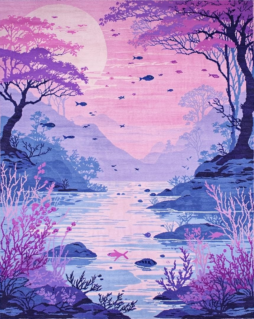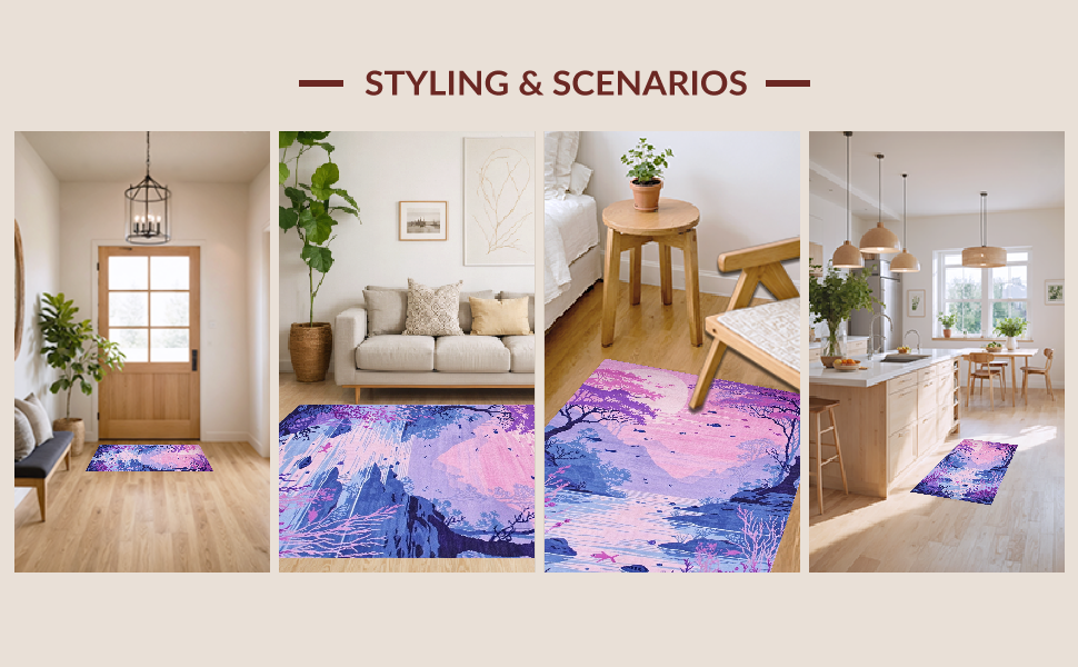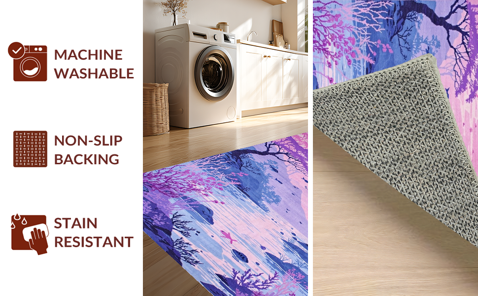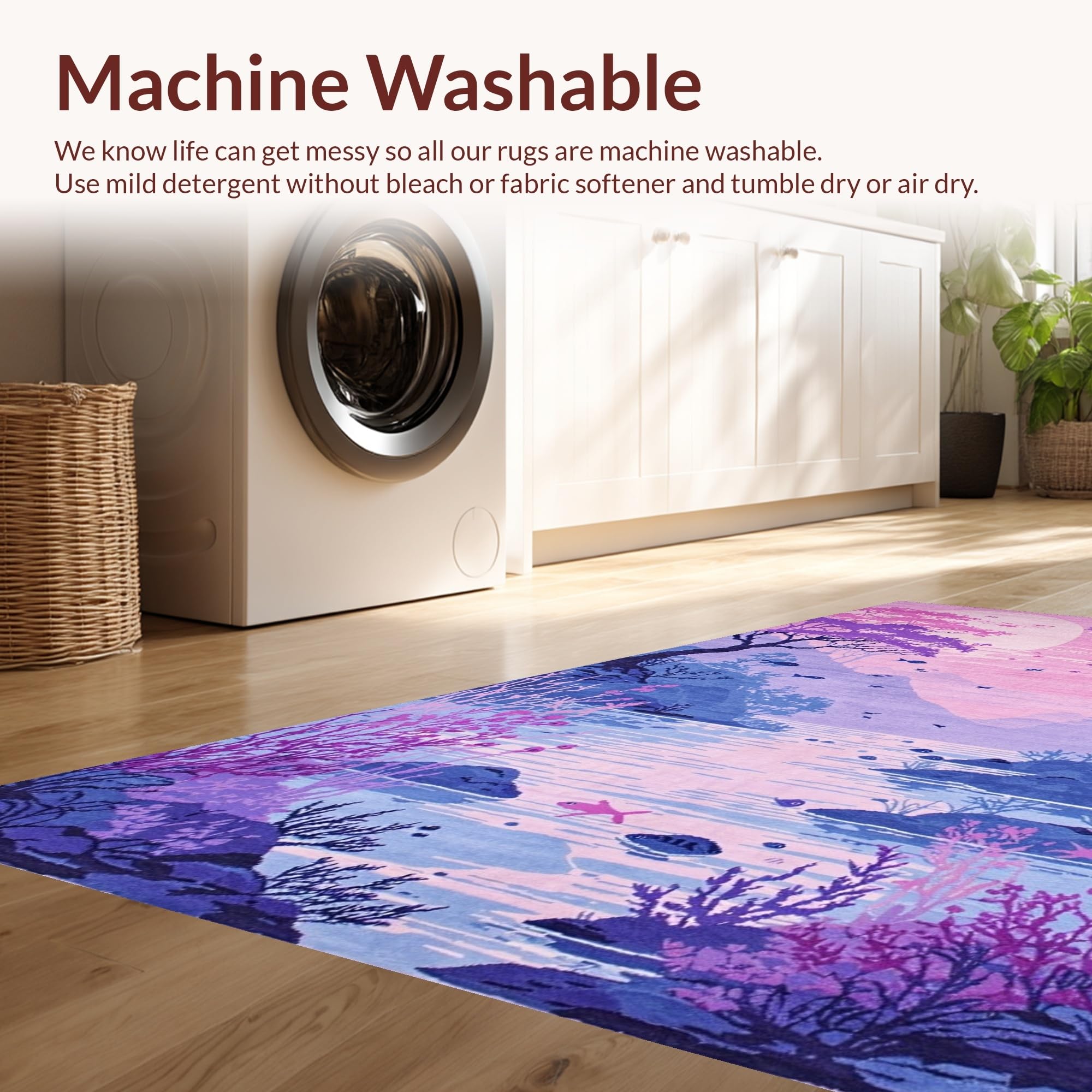 Ultra Soft Area Rug, Non Slip, Stain Resistant, Washable Area Rugs for Living Room, Bedroom, Enchanting Fantasy Underwater Aesthetics(Purple) Overview: