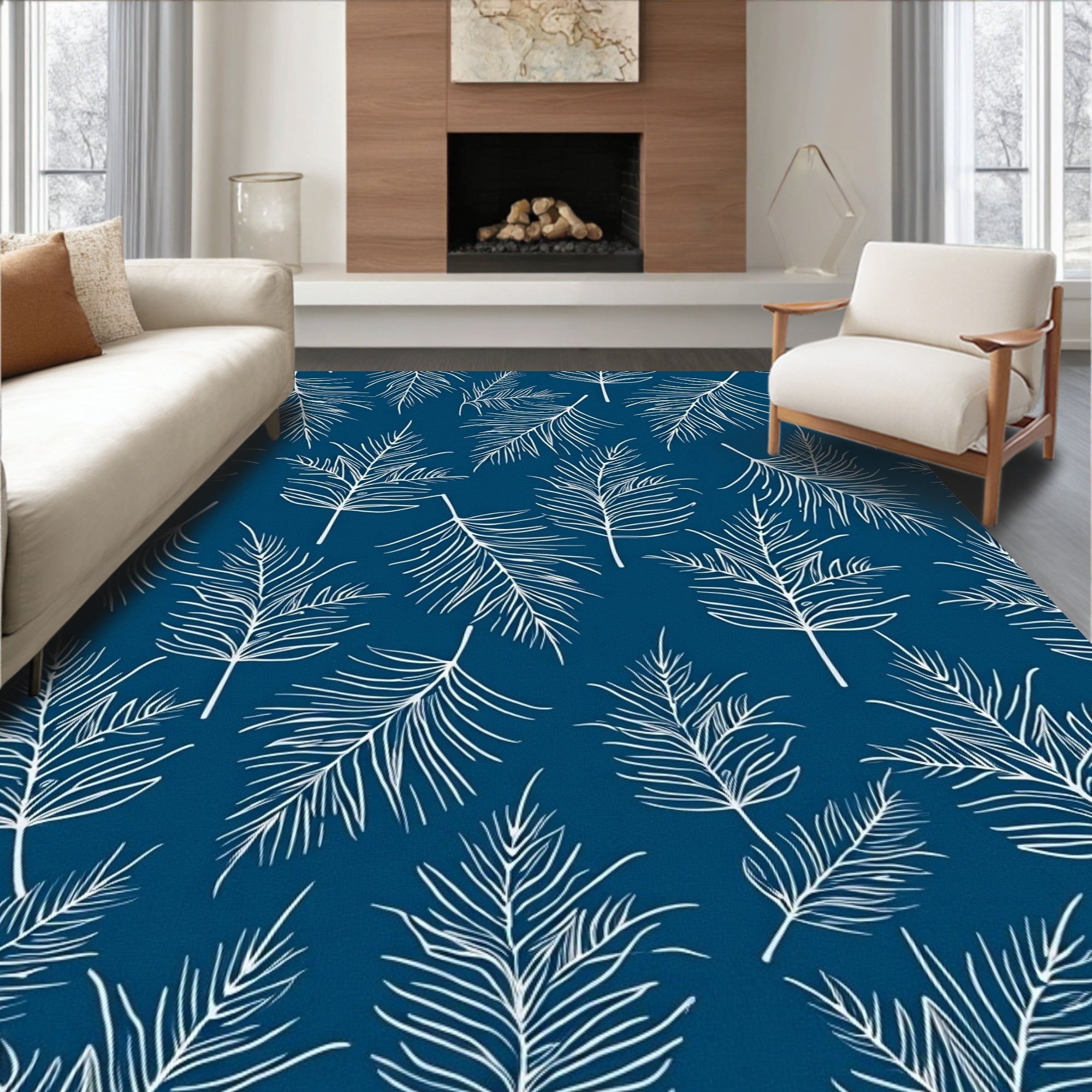 Flatwoven High Traffic Area Rug, Enchanting Frosty Pine Needle Holiday Accent, Non Slip, Stain Resistant, Washable Area Rugs for Living Room, Bedroom (Navy Blue) Overview: