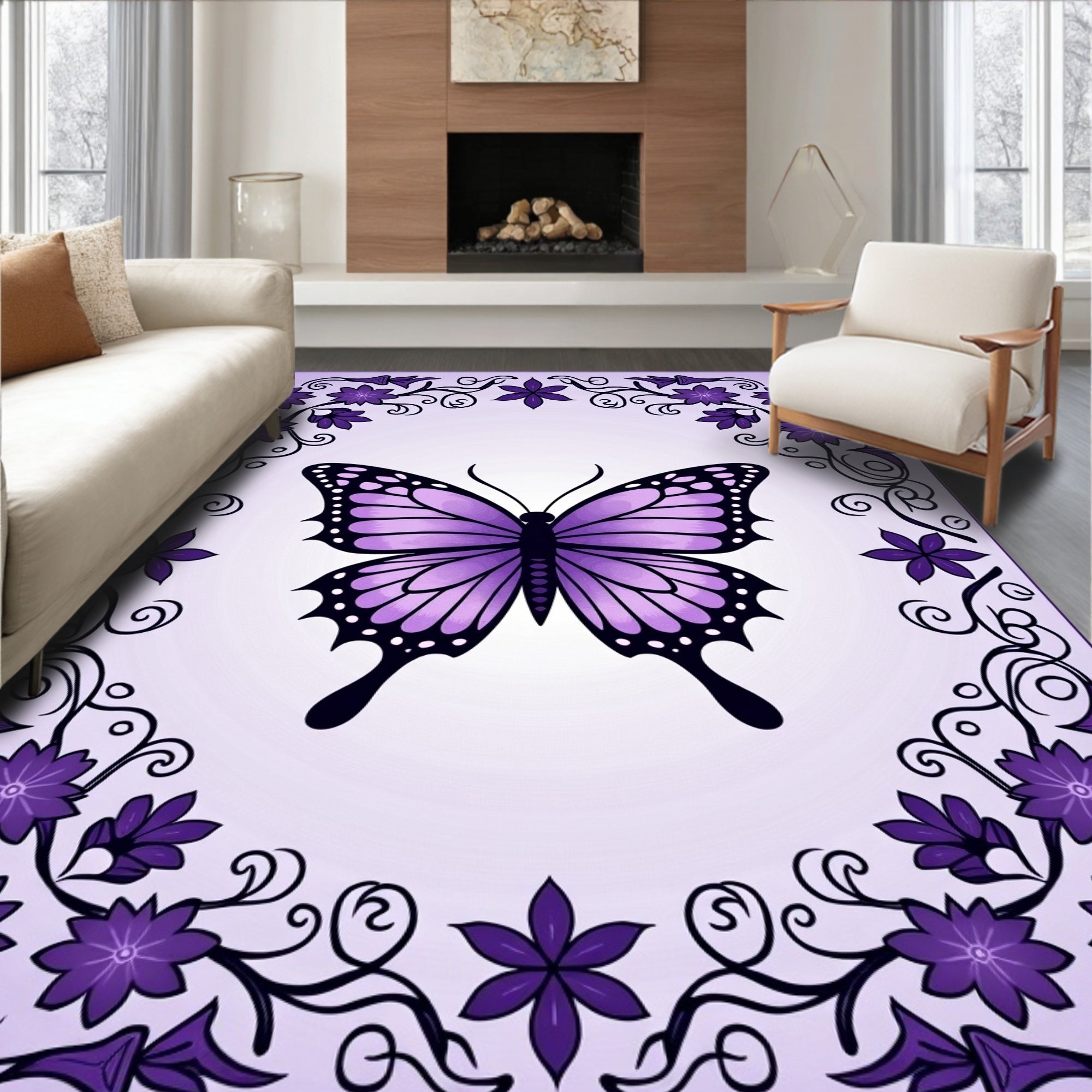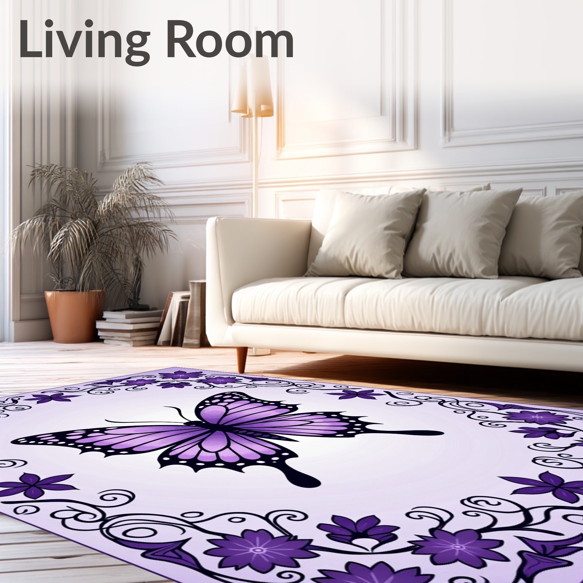 Flatwoven High Traffic Area Rug, Enchanting Garden Fantasy Tapestry, Non Slip, Stain Resistant, Washable Area Rugs for Living Room, Bedroom (Purple) Overview: