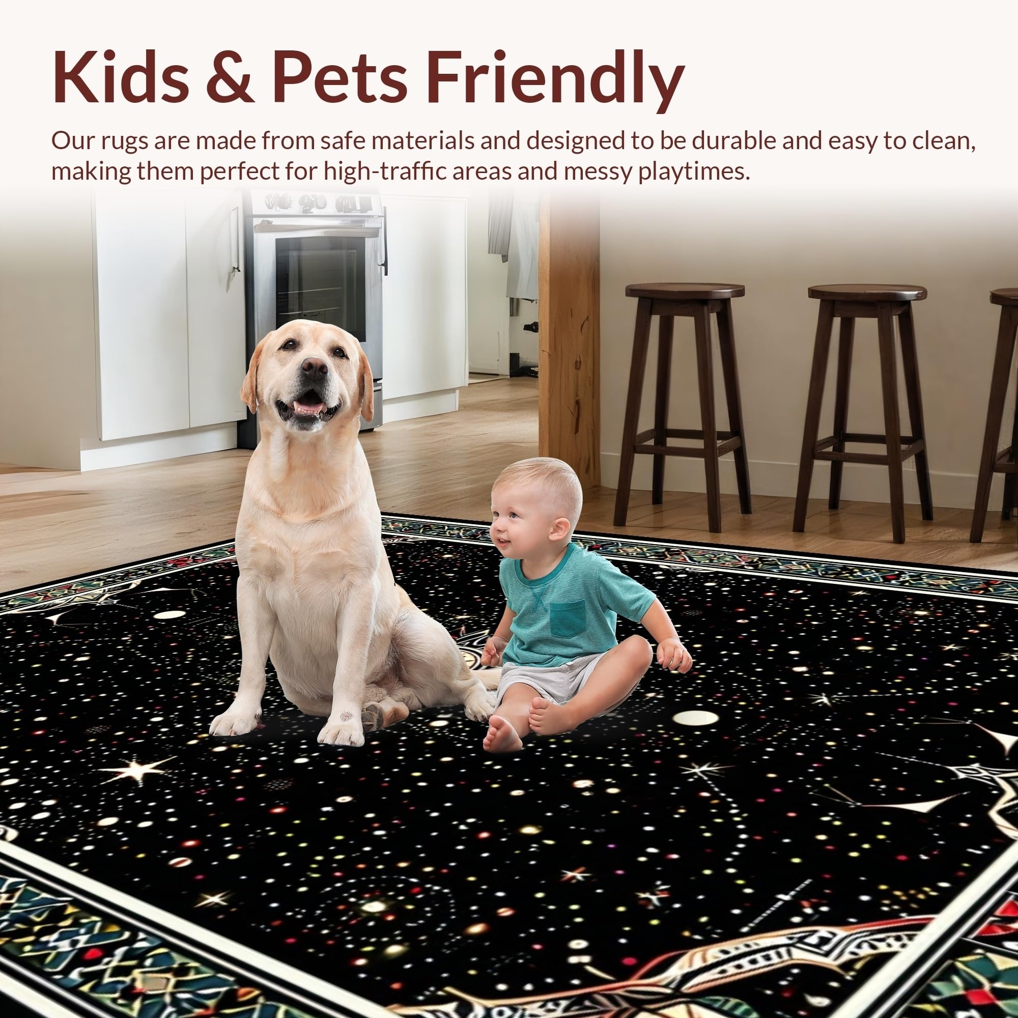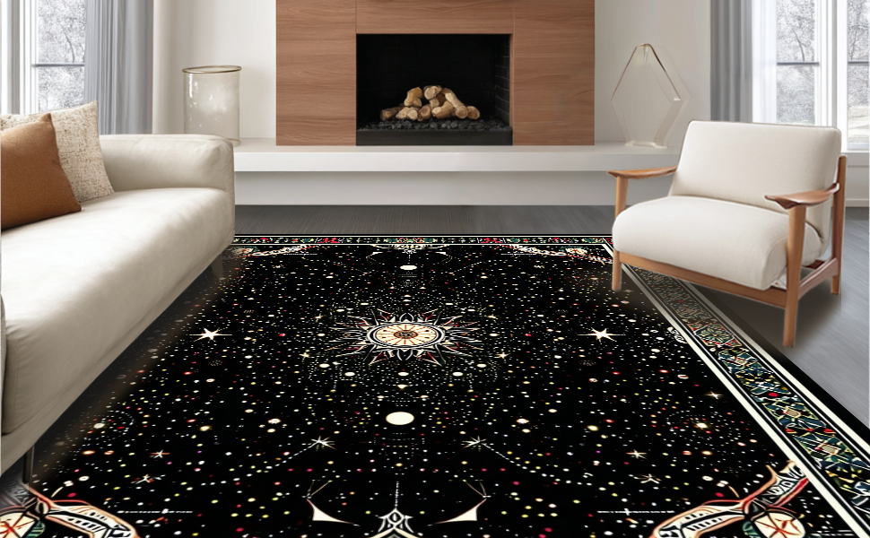 Ultra Soft Area Rug, Non Slip, Stain Resistant, Washable Area Rugs for Living Room, Bedroom, Enchanting Gothic Spiral Visual Appeal(Black) Overview: