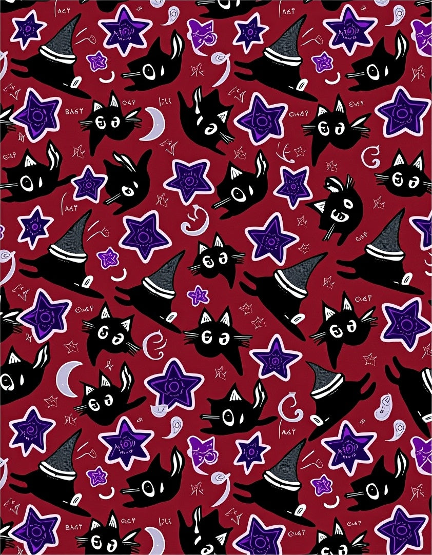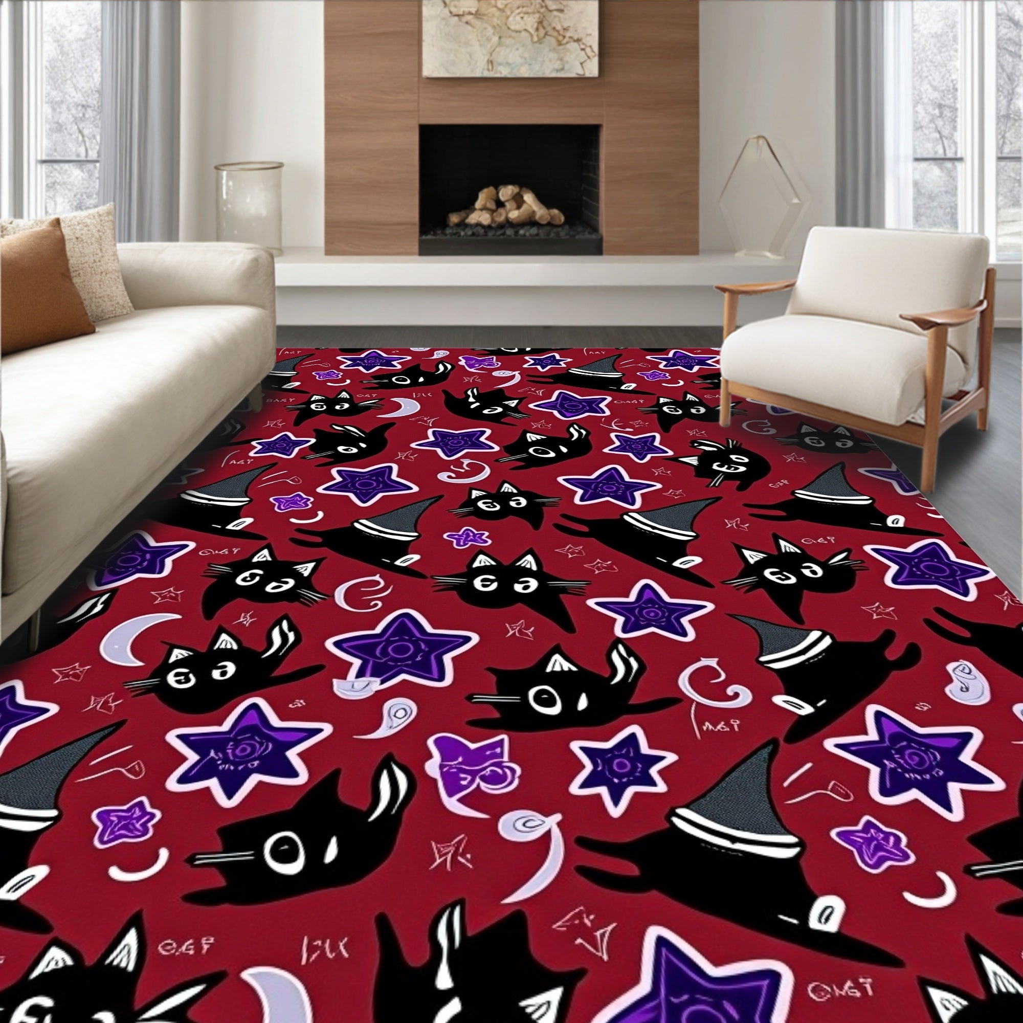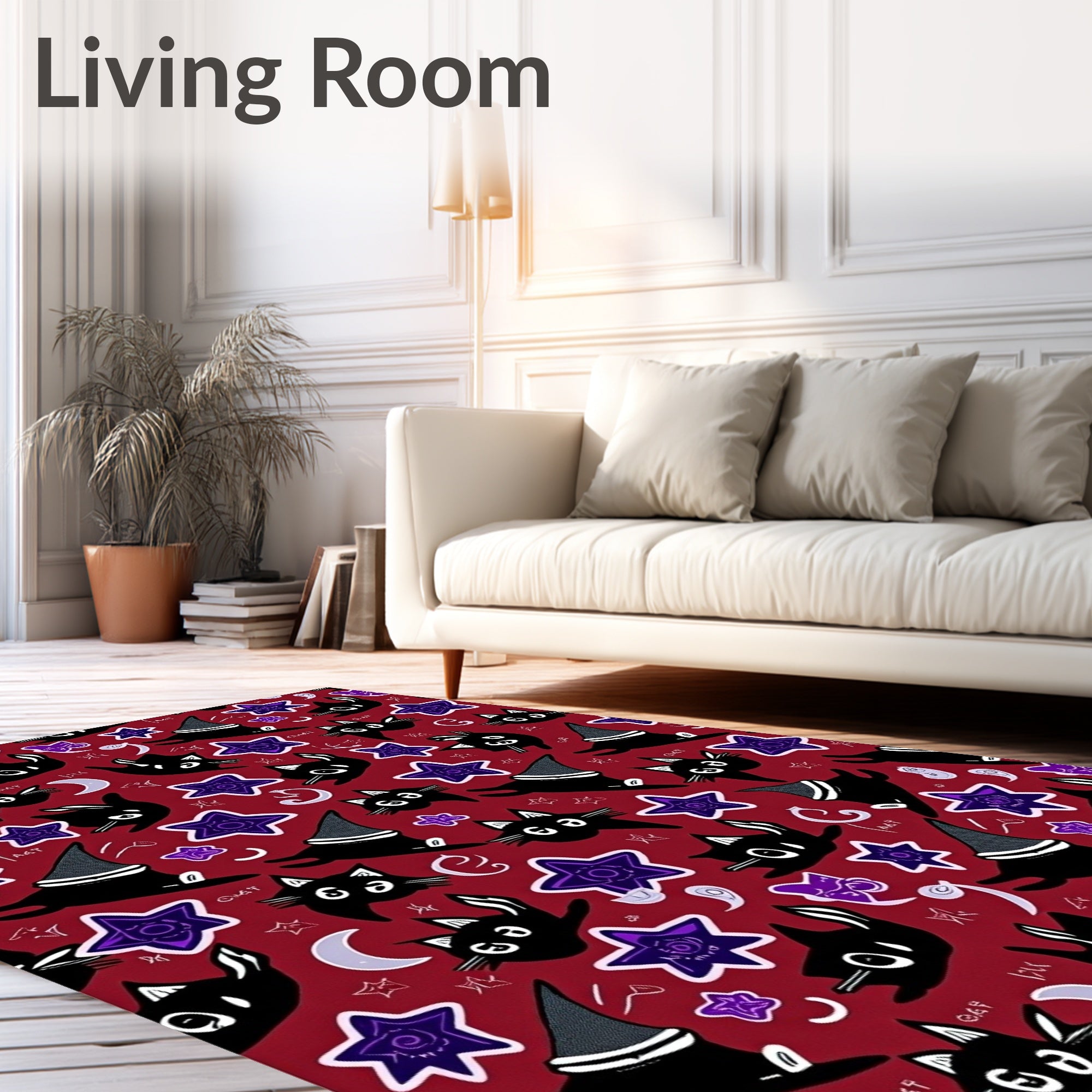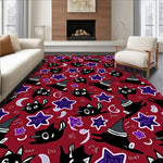 Enchanting Halloween Witch Cat Themed Floor Covering with Mystical(Red)