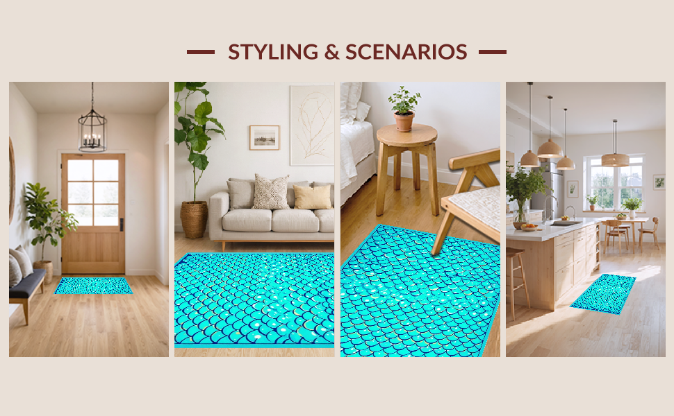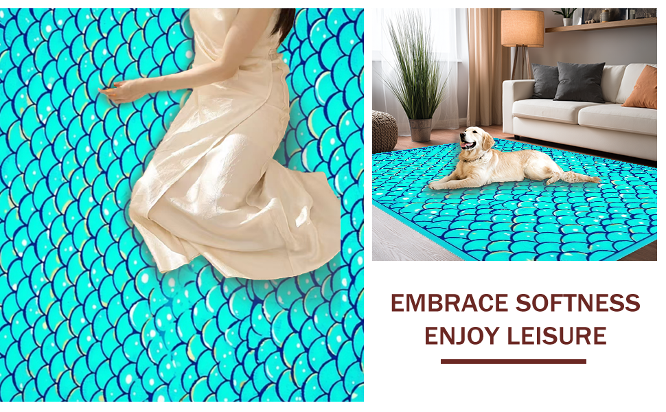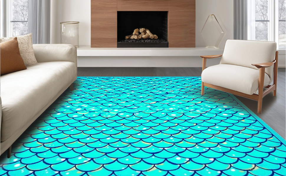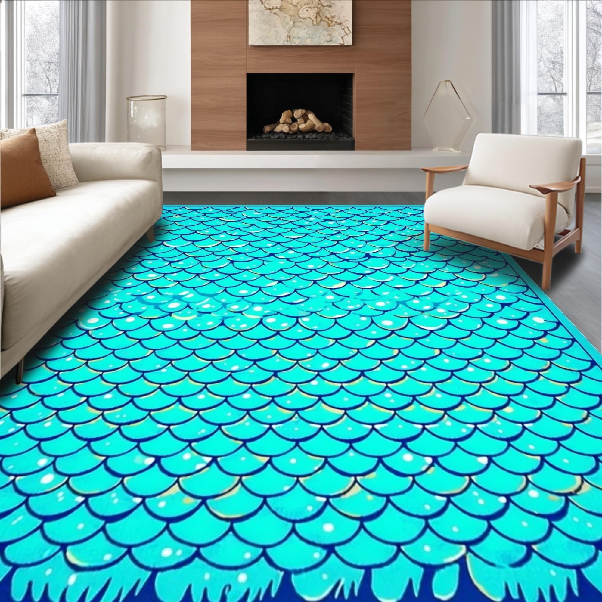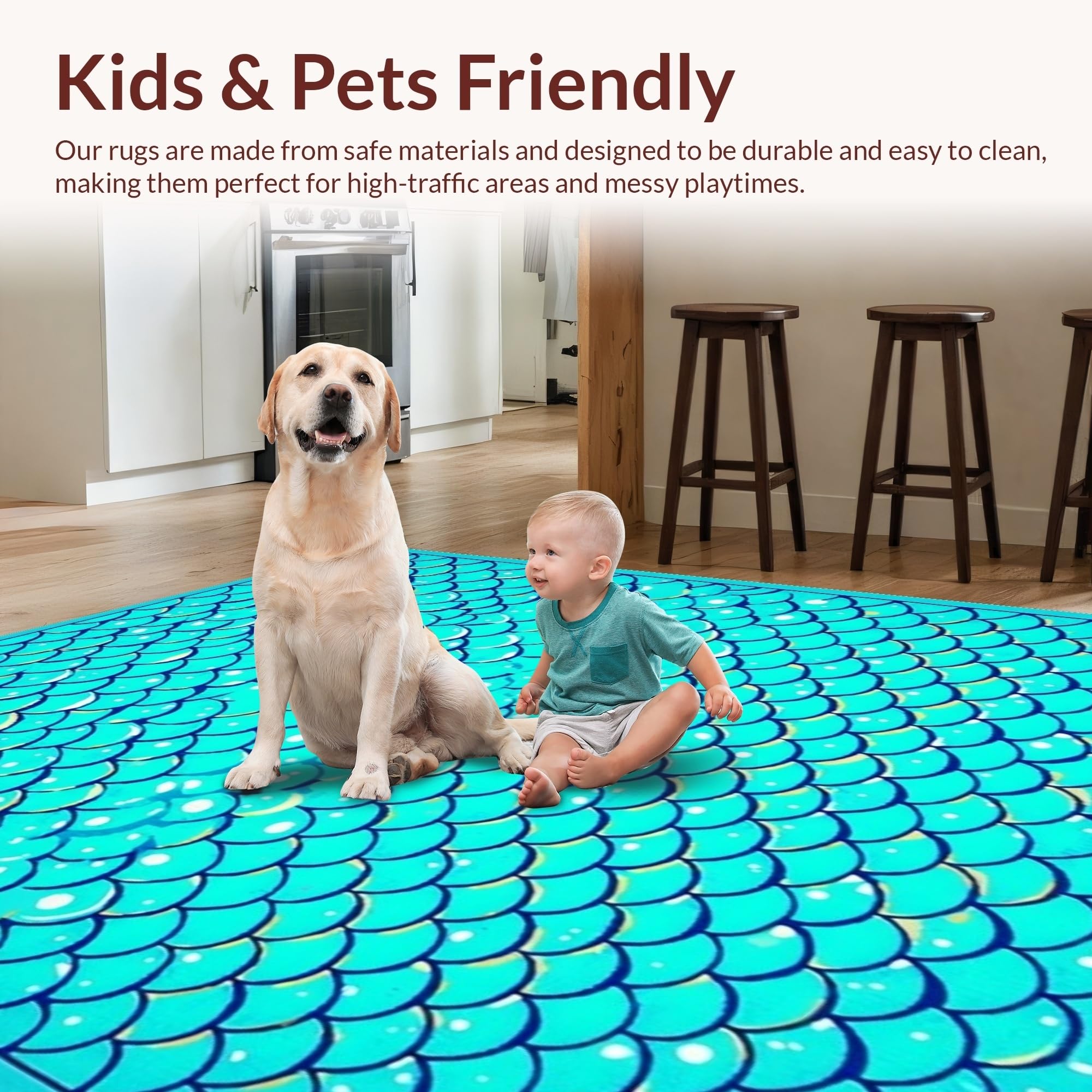Ultra Soft Area Rug, Non Slip, Stain Resistant, Washable Area Rugs for Living Room, Bedroom, Enchanting Marine Creature Imagery(Blue) Overview: