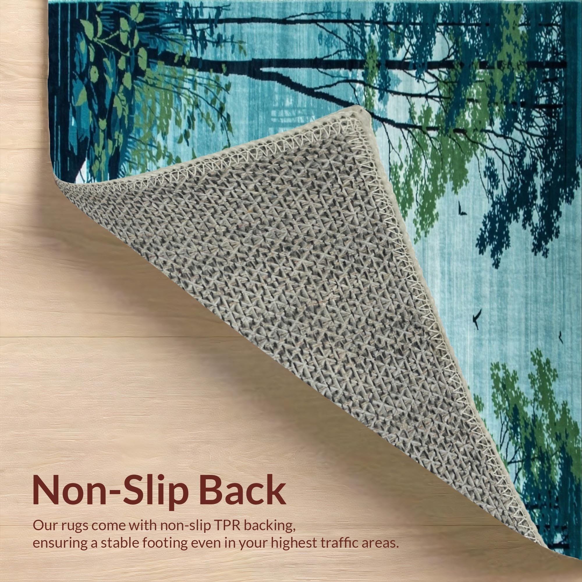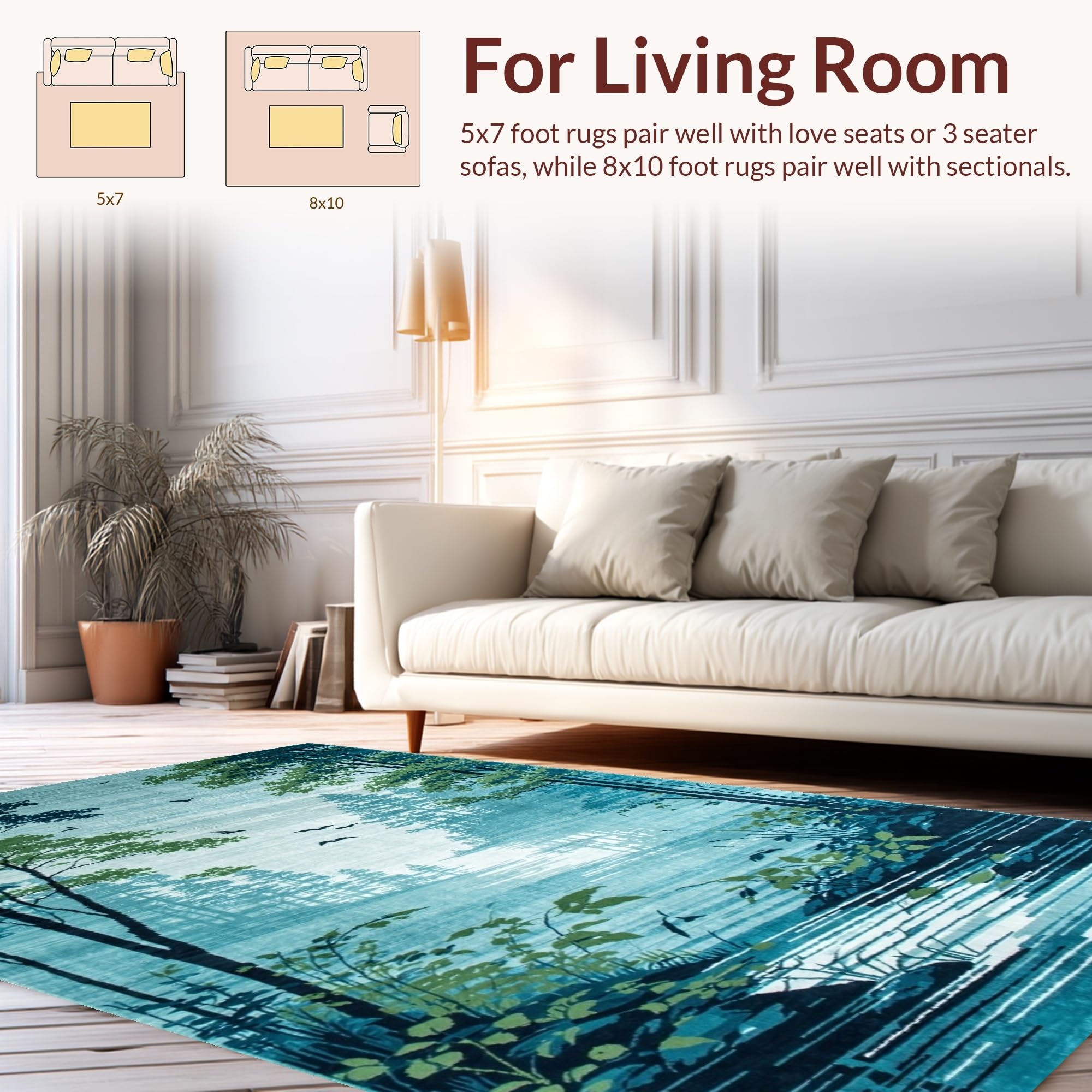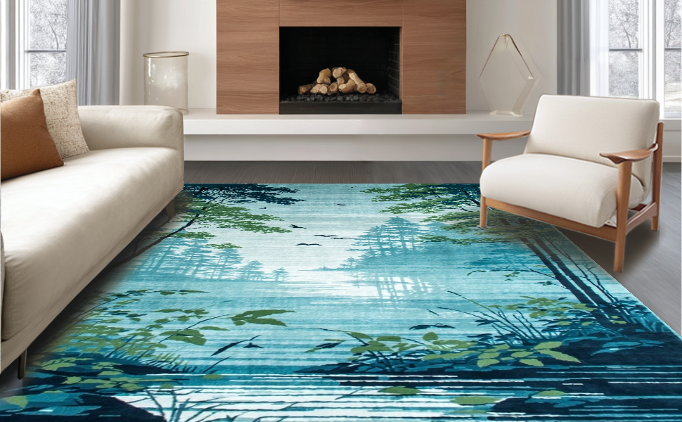 Ultra Soft Area Rug, Non Slip, Stain Resistant, Washable Area Rugs for Living Room, Bedroom, Enchanting Nature Scene in Bright Hues(Blue) Overview: