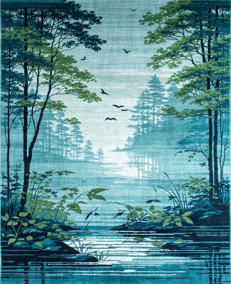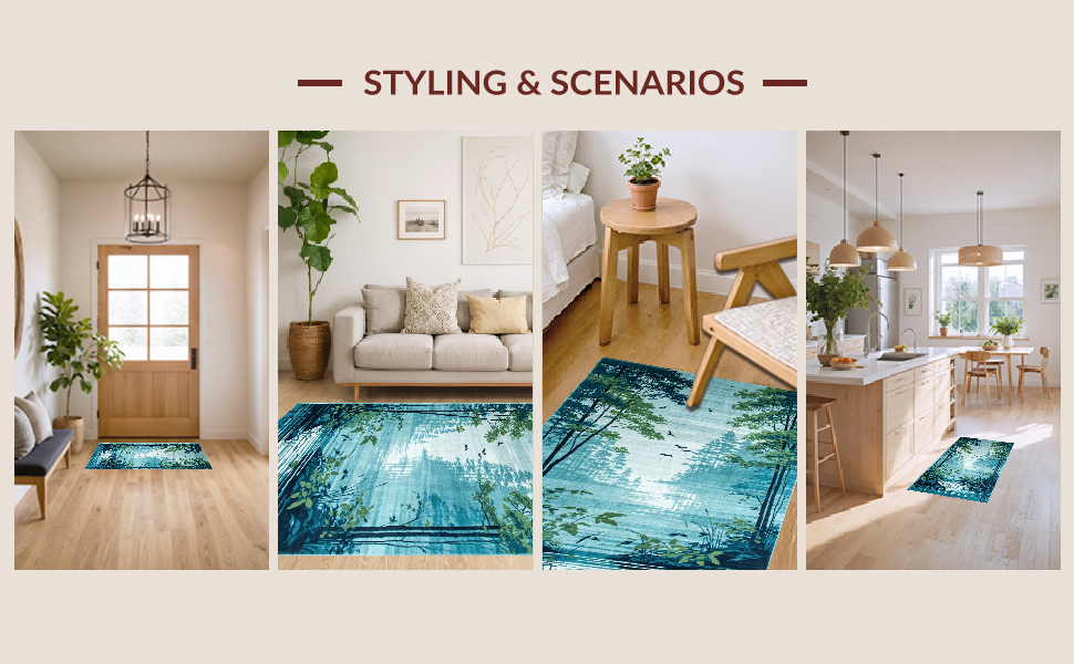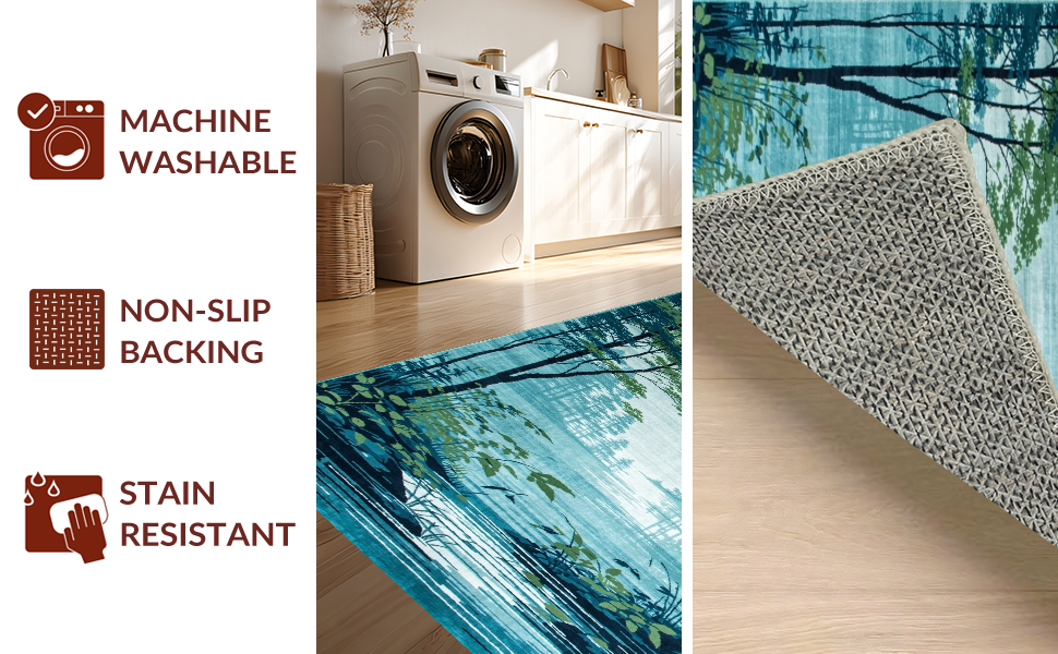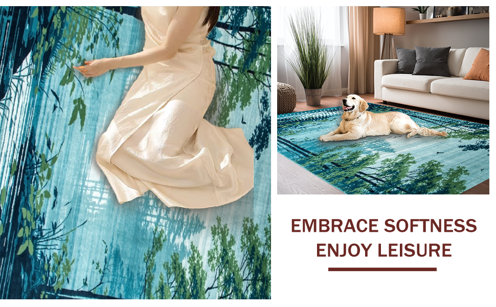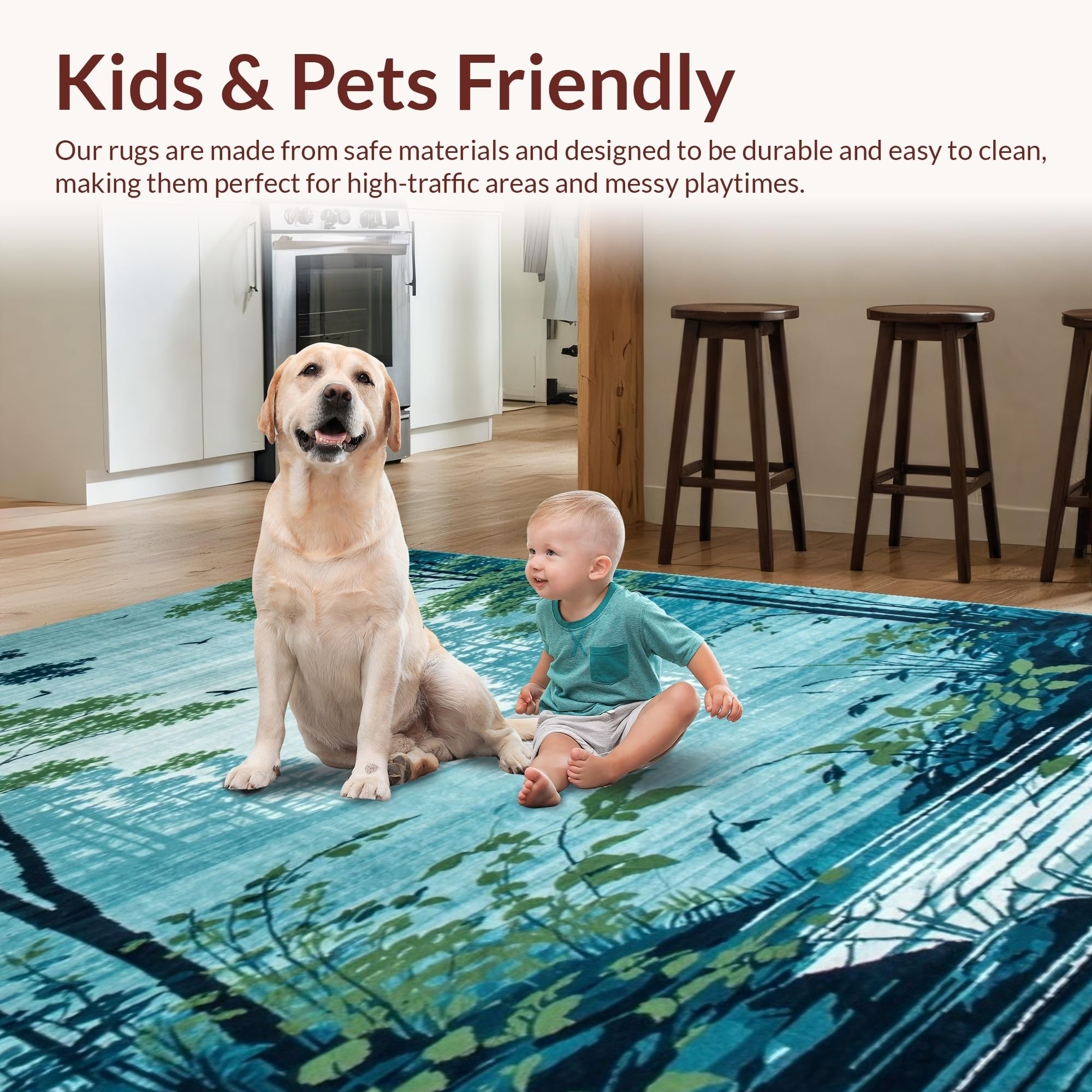 Ultra Soft Area Rug, Non Slip, Stain Resistant, Washable Area Rugs for Living Room, Bedroom, Enchanting Nature Scene in Bright Hues(Blue) Overview: