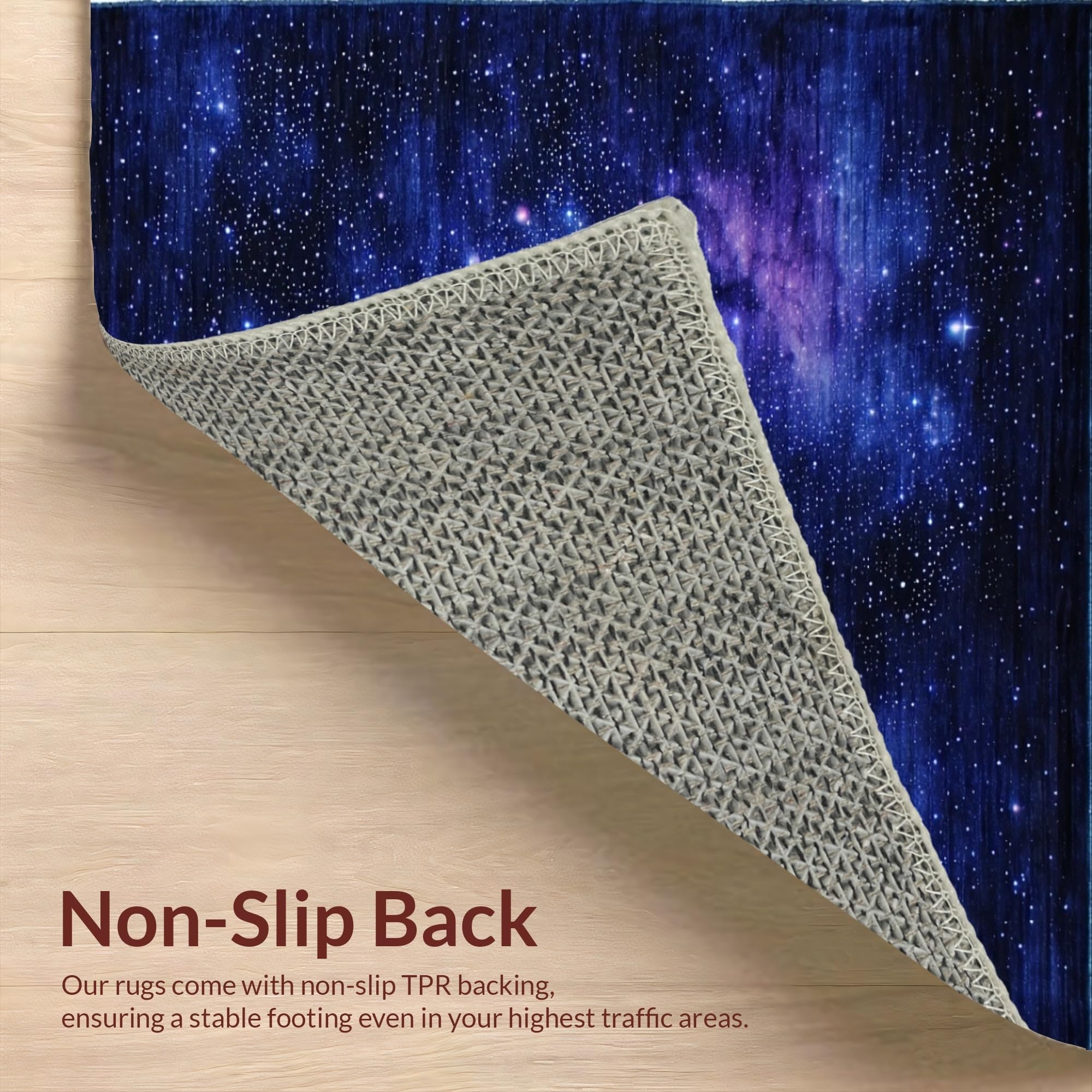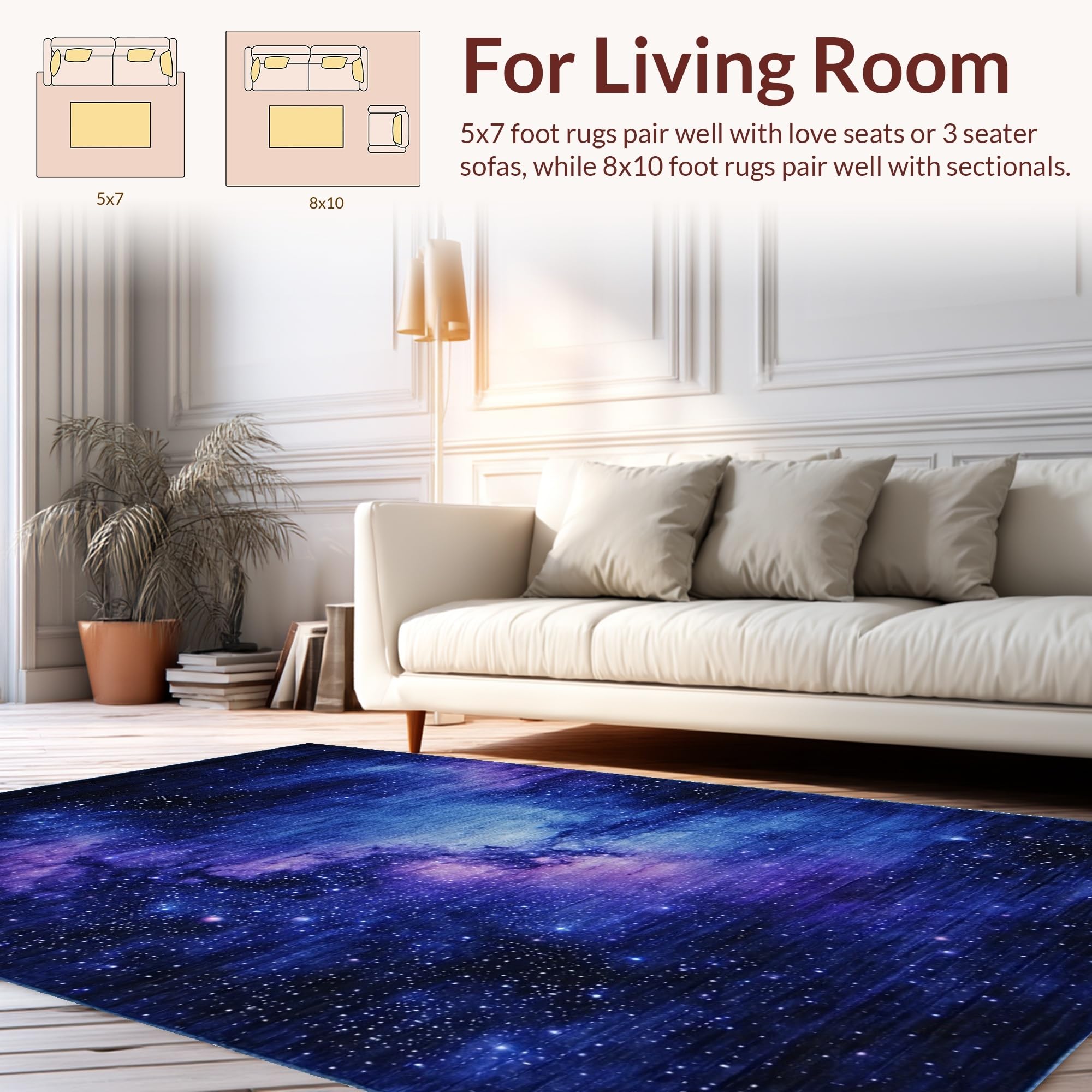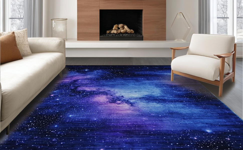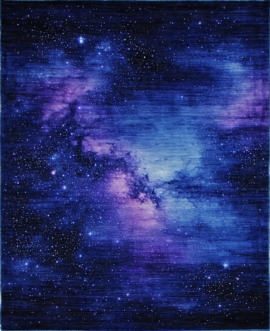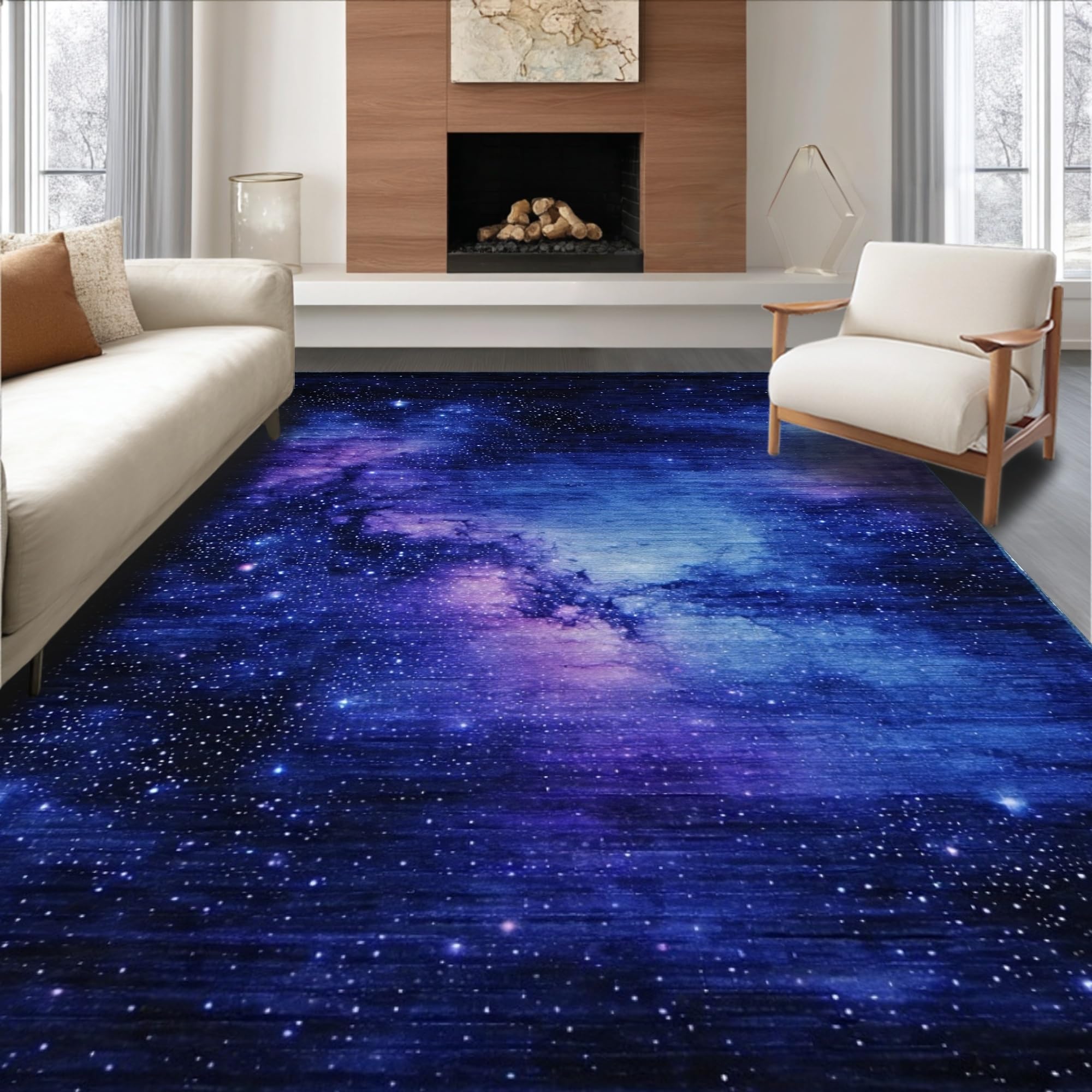 Ultra Soft Area Rug, Non Slip, Stain Resistant, Washable Area Rugs for Living Room, Bedroom, Enchanting Nebula Inspired Aesthetic(Blue) Overview: