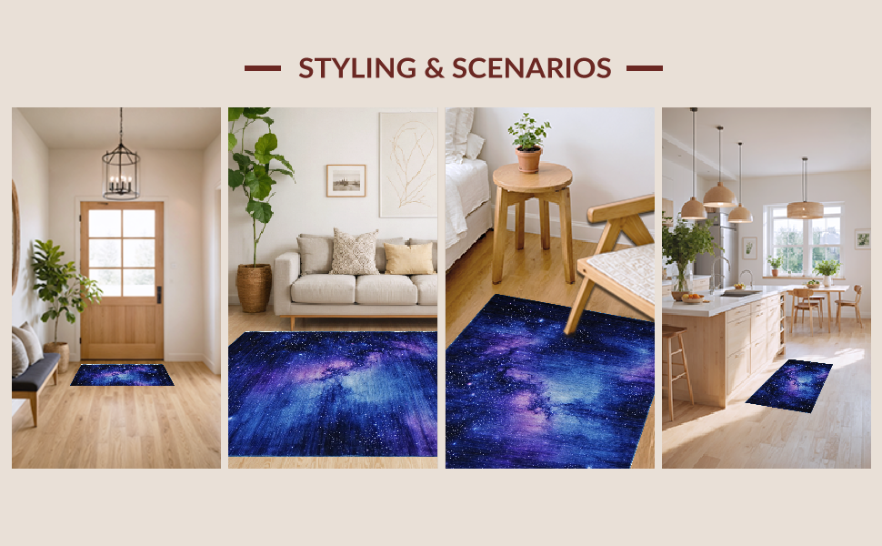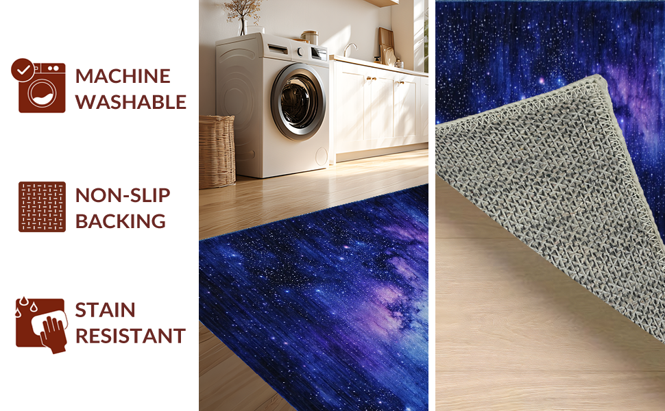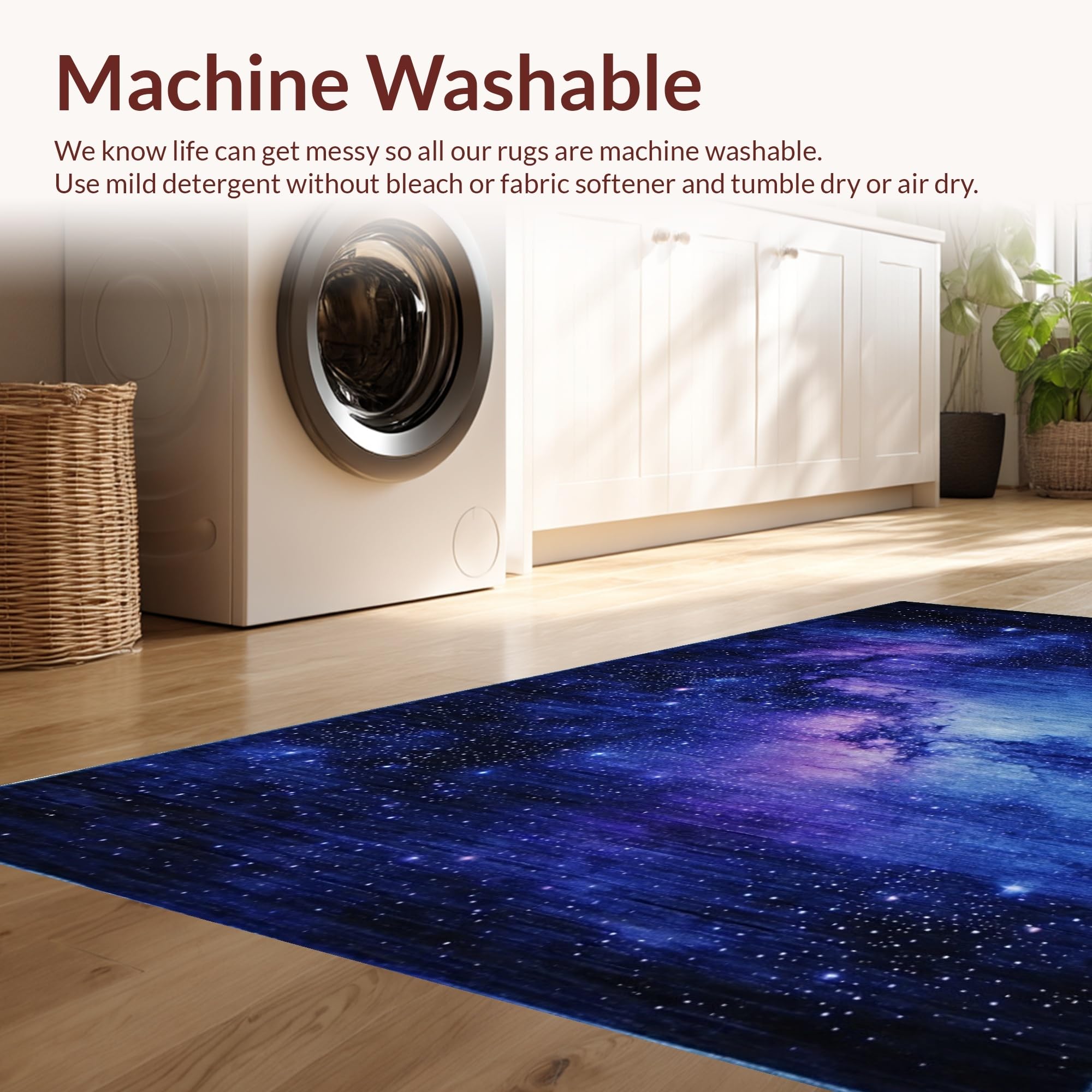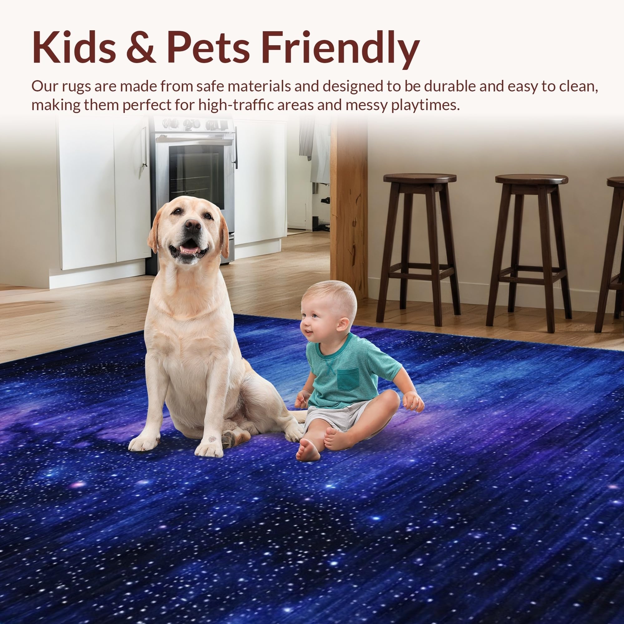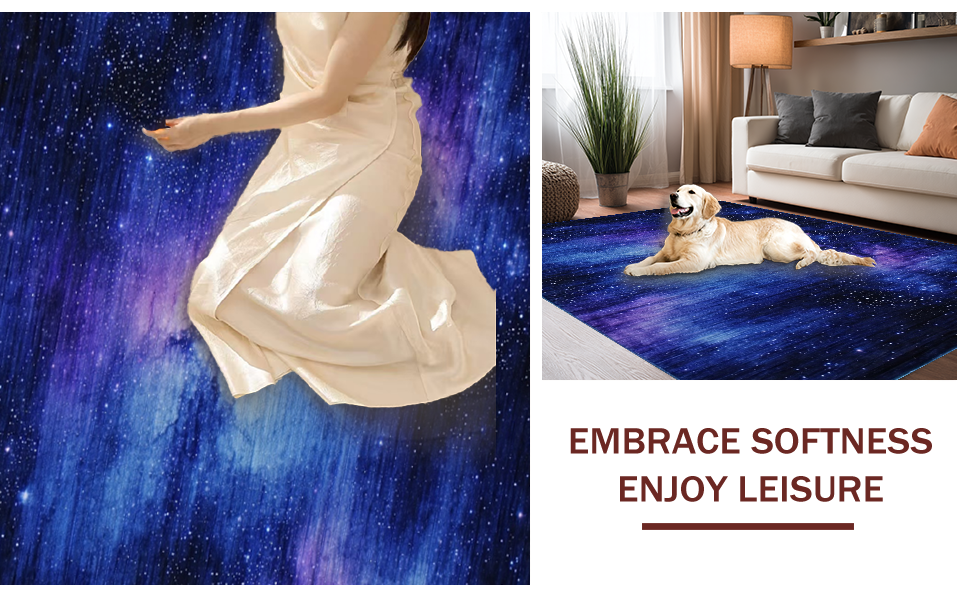 Ultra Soft Area Rug, Non Slip, Stain Resistant, Washable Area Rugs for Living Room, Bedroom, Enchanting Nebula Inspired Aesthetic(Blue) Overview: