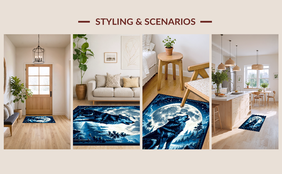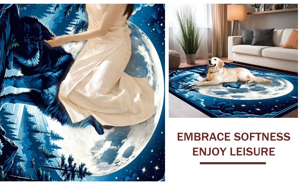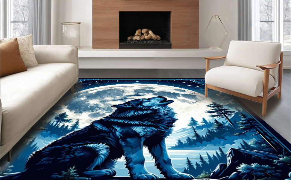 Ultra Soft Area Rug, Non Slip, Stain Resistant, Washable Area Rugs for Living Room, Bedroom, Enchanting Nighttime Wilderness Decor(Blue) Overview: