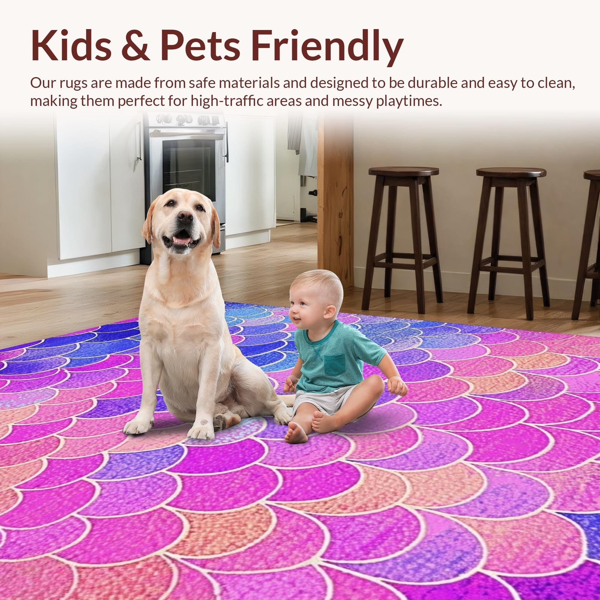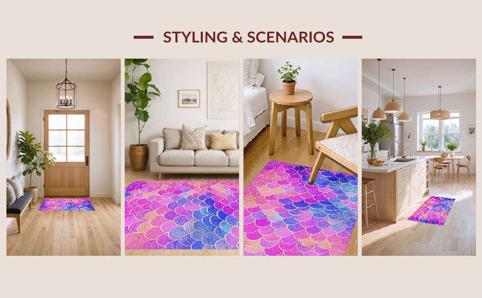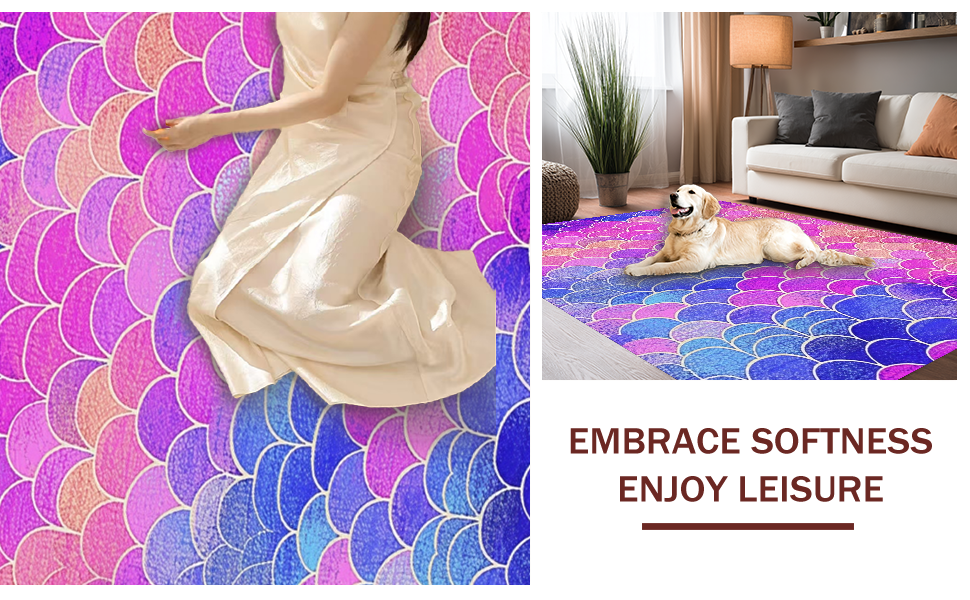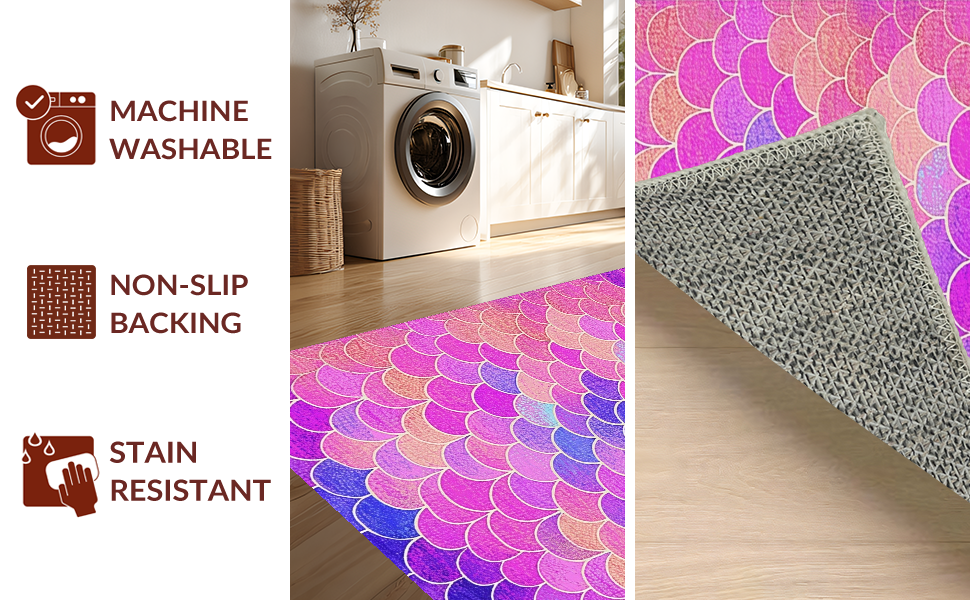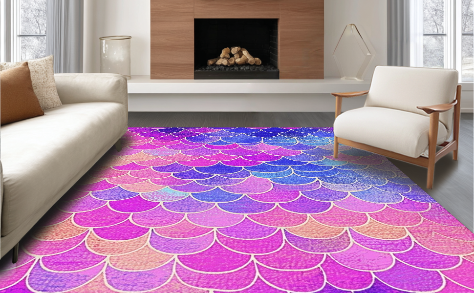 Ultra Soft Area Rug, Non Slip, Stain Resistant, Washable Area Rugs for Living Room, Bedroom, Enchanting Oceanic Scale Motif(Pink) Overview: