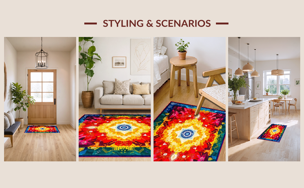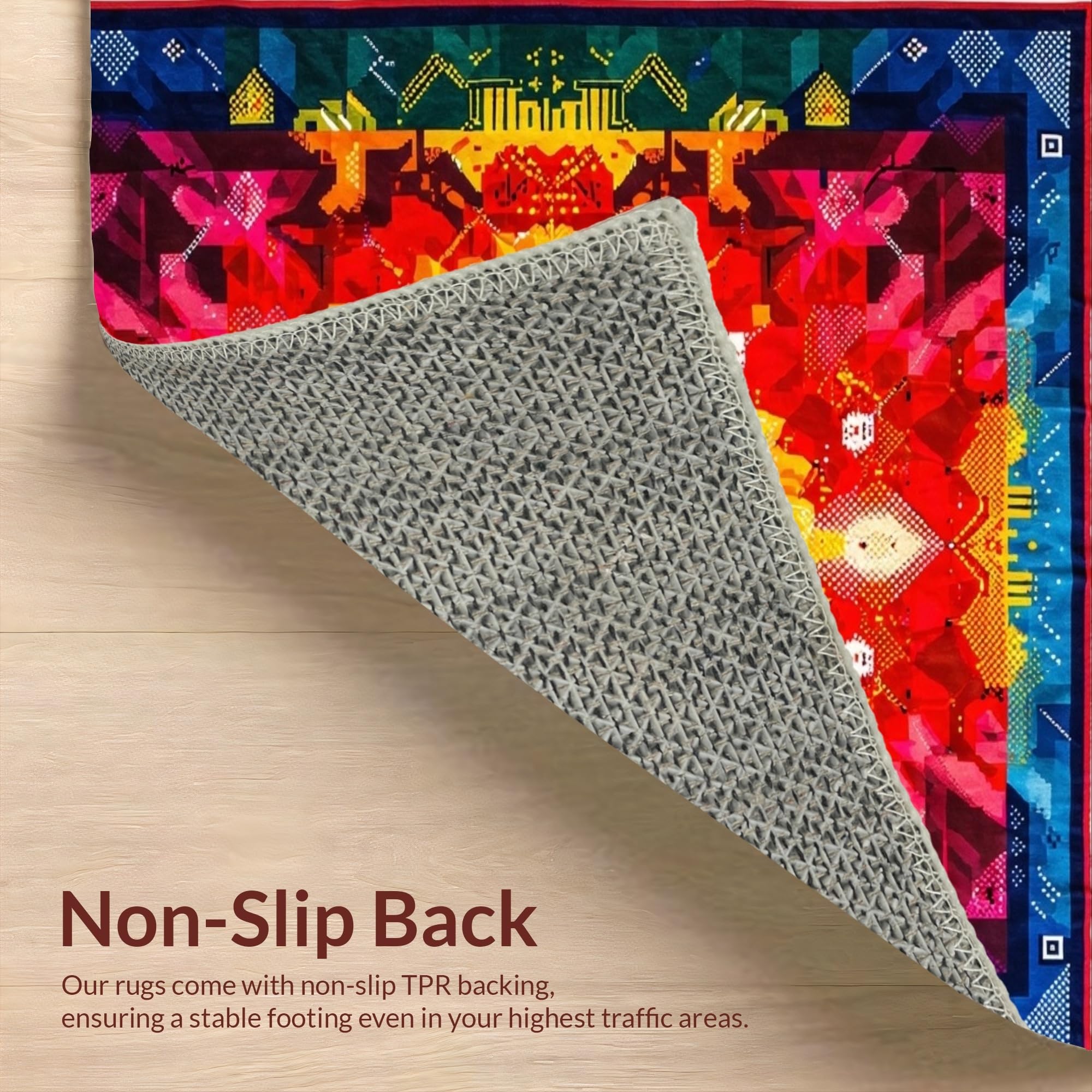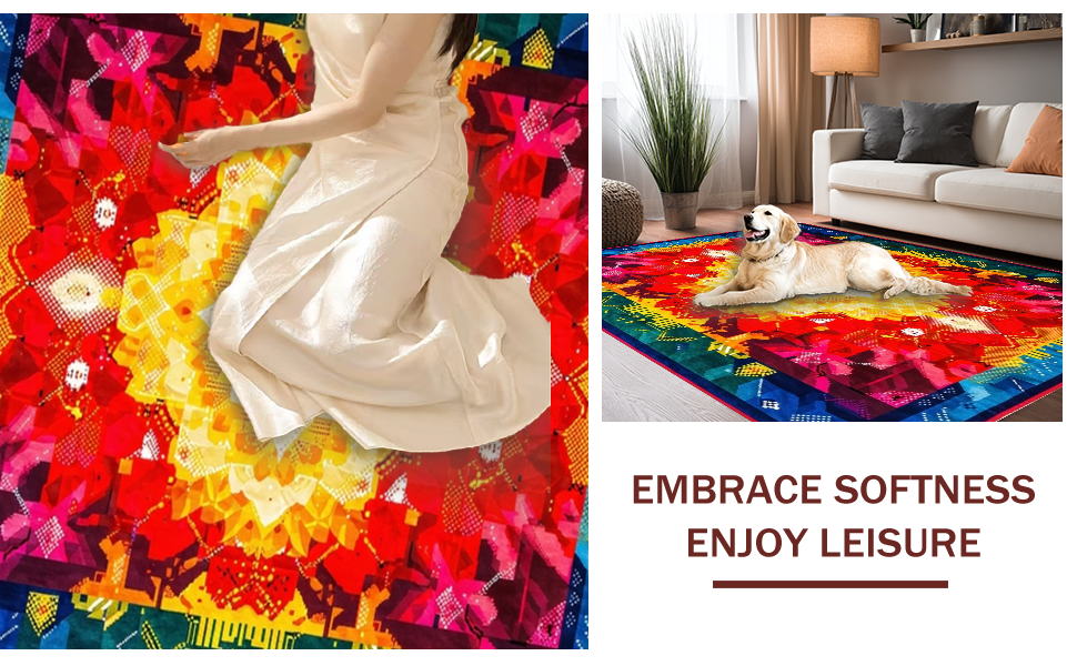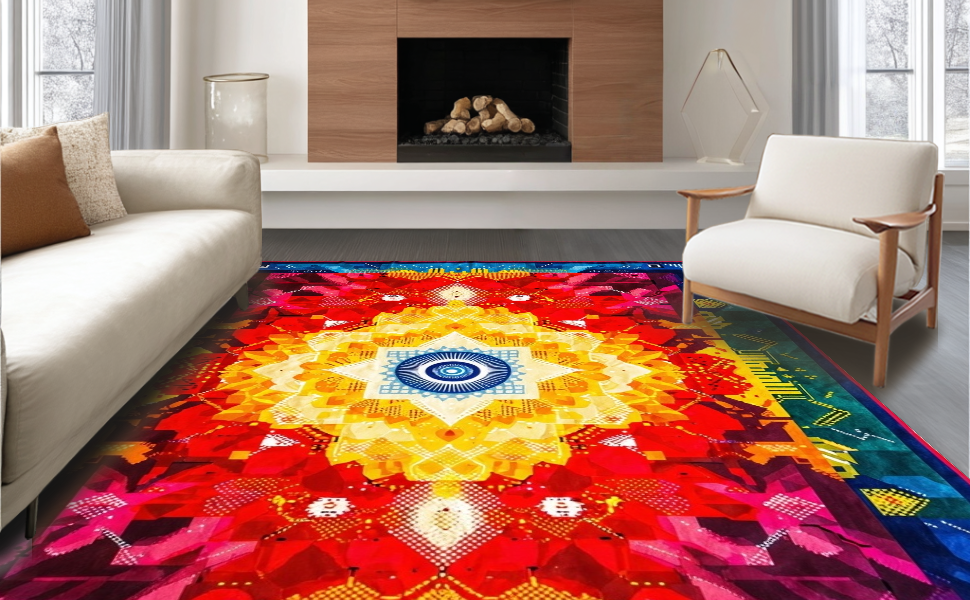 Ultra Soft Area Rug, Non Slip, Stain Resistant, Washable Area Rugs for Living Room, Bedroom, Enchanting Rainbow Energy Flow Design(Red) Overview: