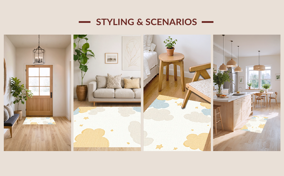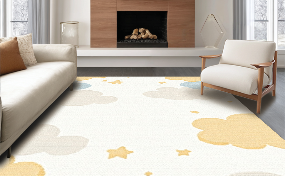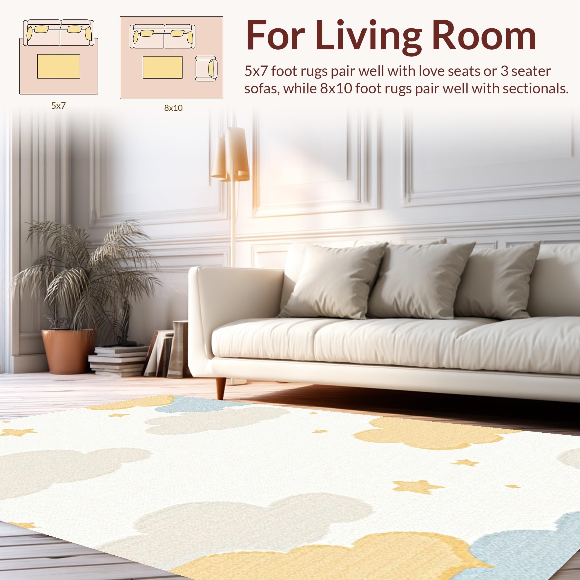 Ultra Soft Area Rug, Non Slip, Stain Resistant, Washable Area Rugs for Living Room, Bedroom, Enchanting Soft Shapes for Kids(Beige) Overview: