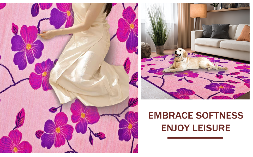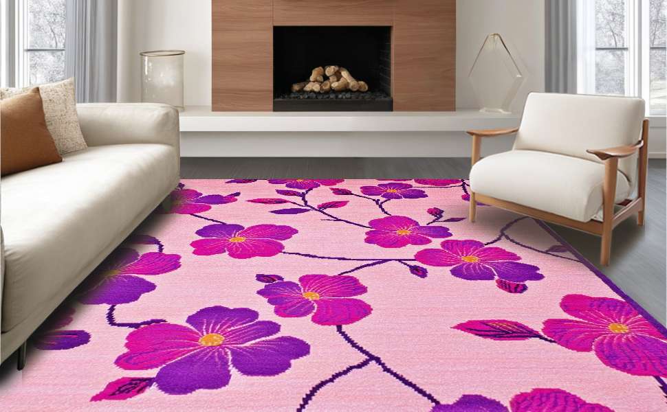 Ultra Soft Area Rug, Non Slip, Stain Resistant, Washable Area Rugs for Living Room, Bedroom, Enchanting Whimsical Bloom Style(Pink) Overview: