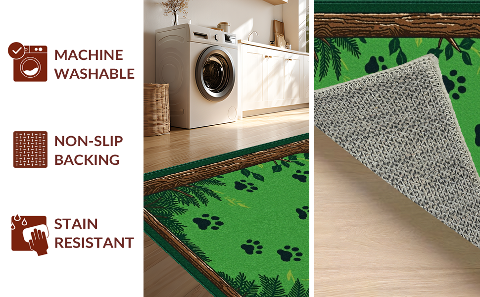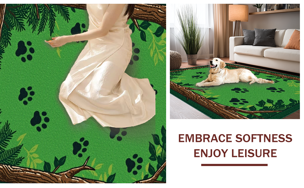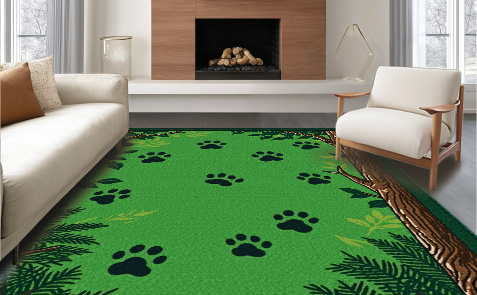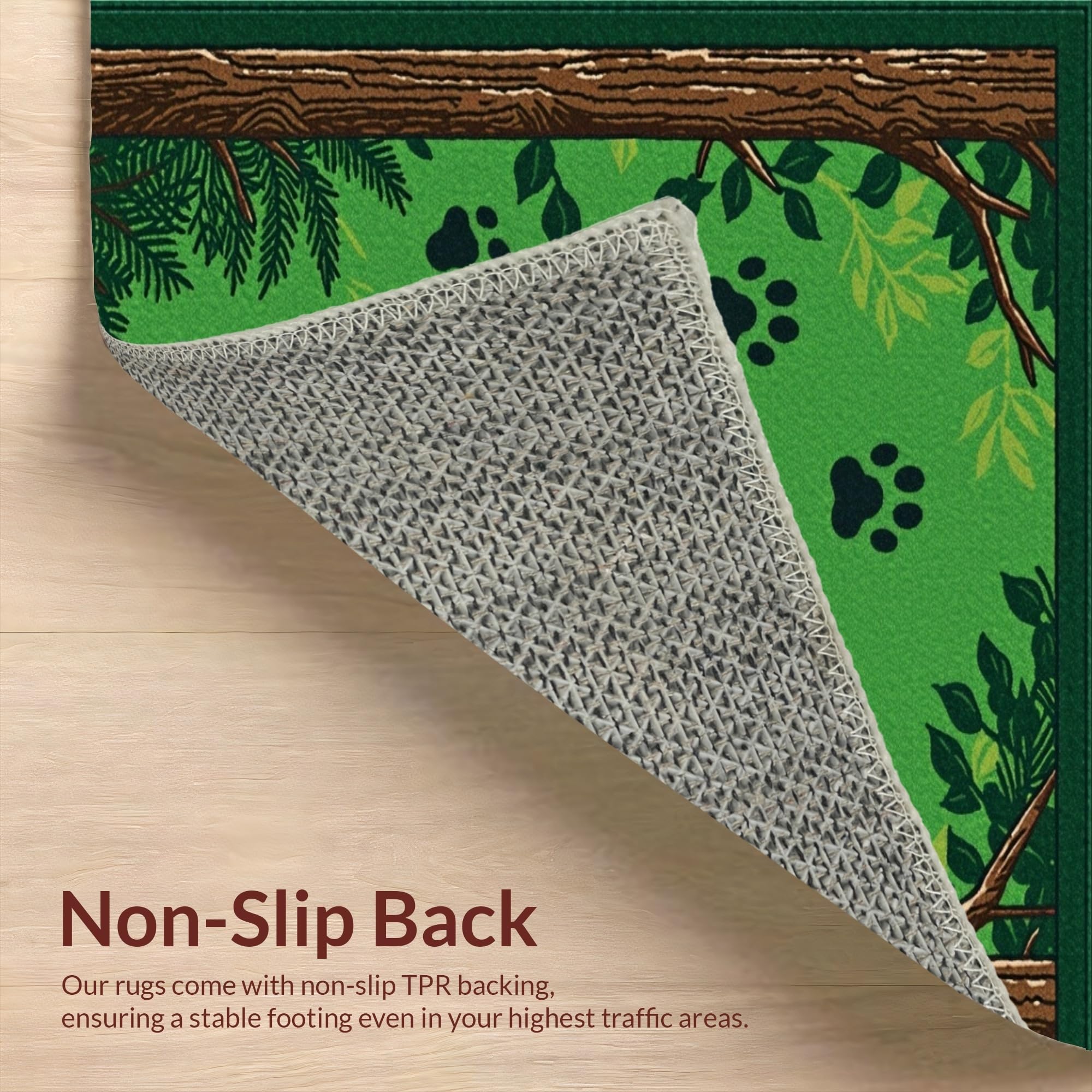 Ultra Soft Area Rug, Non Slip, Stain Resistant, Washable Area Rugs for Living Room, Bedroom, Enchanting Wildlife Silhouette Theme(Green) Overview: