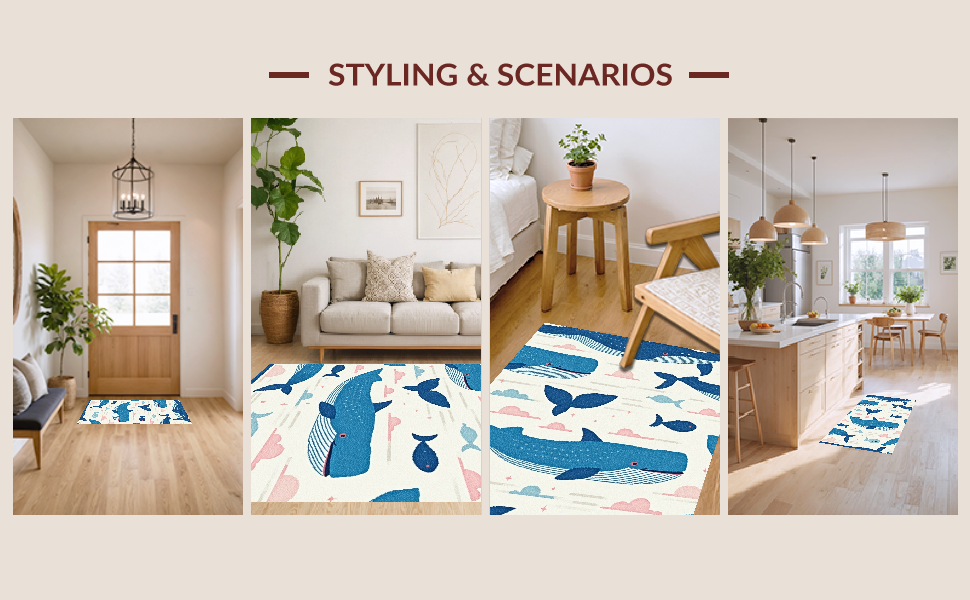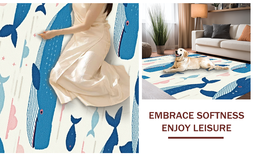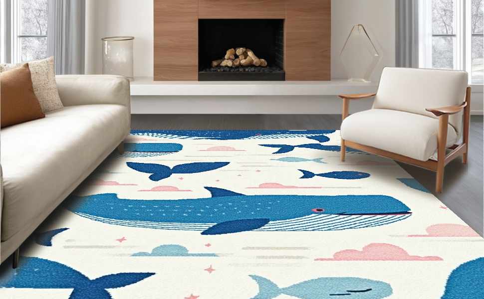 Ultra Soft Area Rug, Non Slip, Stain Resistant, Washable Area Rugs for Living Room, Bedroom, Enchanting Youthful Oceanic Design(Blue) Overview: